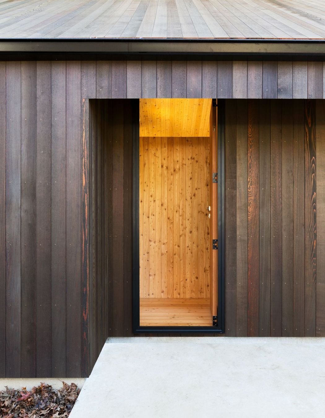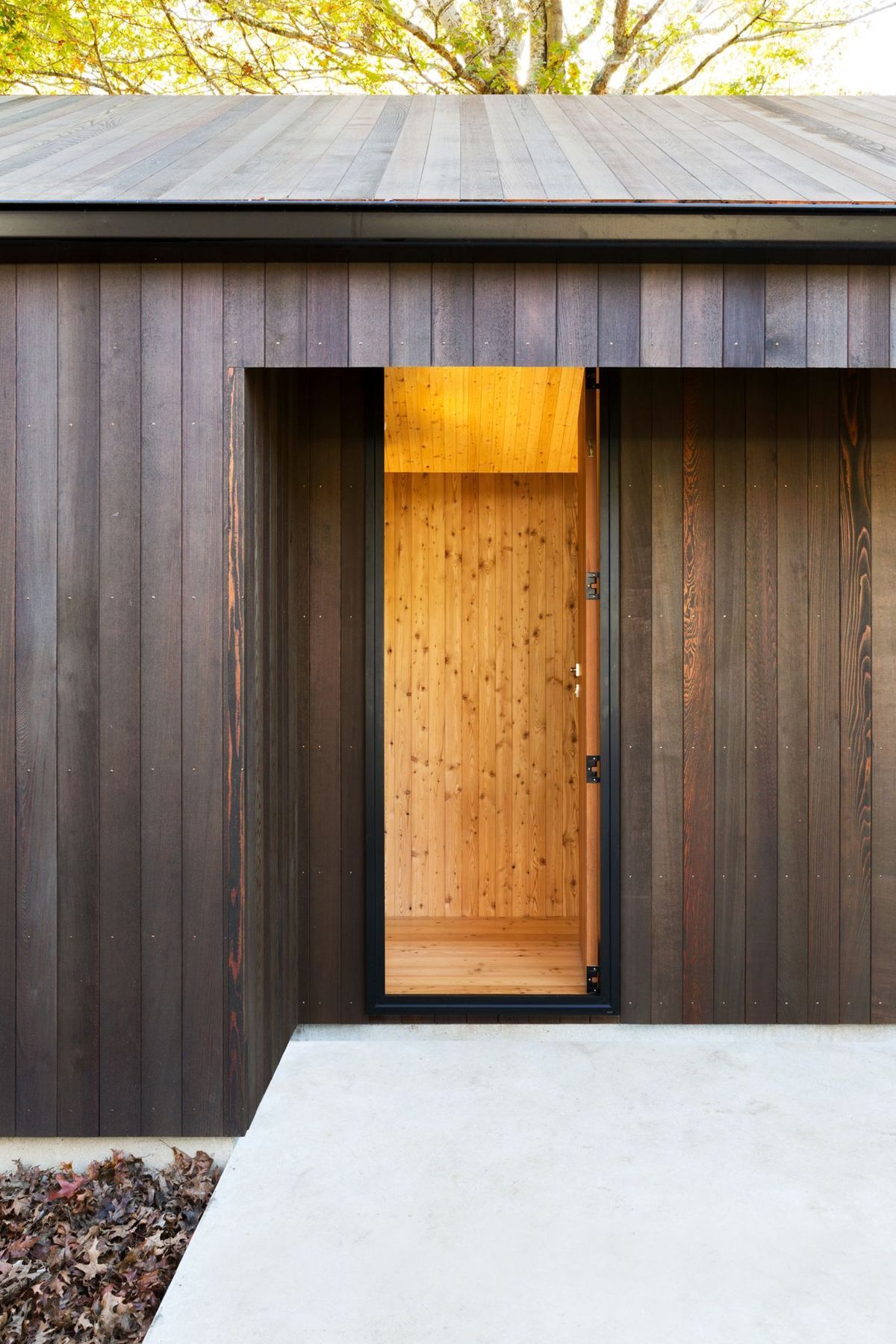 ArchiPro Project Summary - A harmonious dwelling that celebrates its natural surroundings with cedar timber siding, warm Siberian larch interiors, and strategically placed windows that frame the beauty of the adjacent tree-scape.