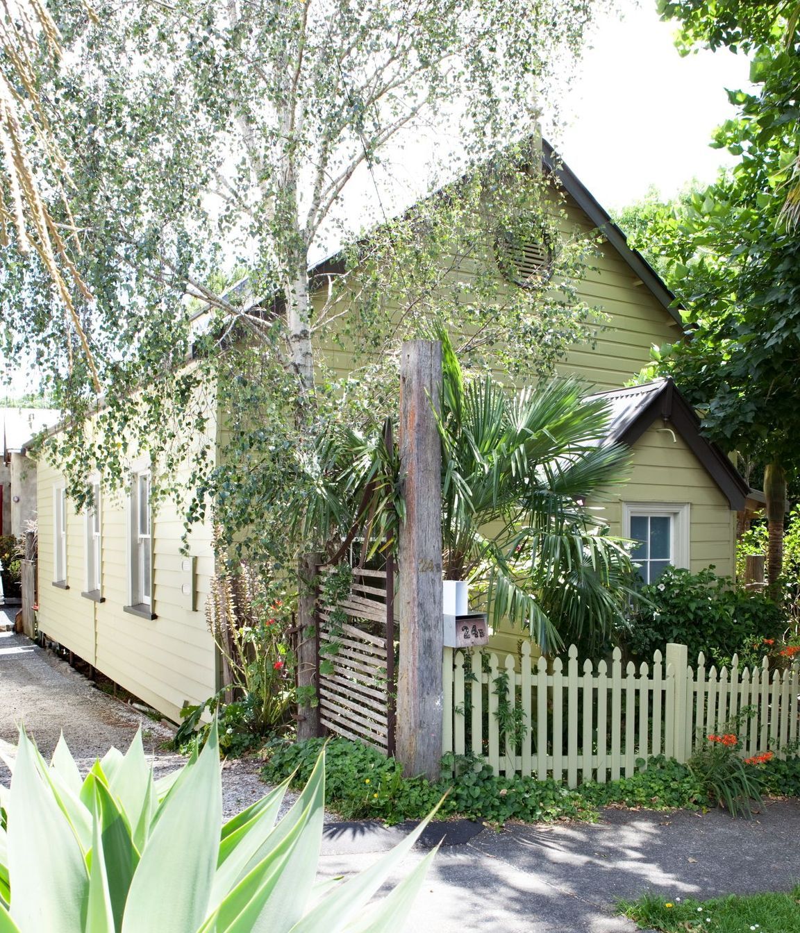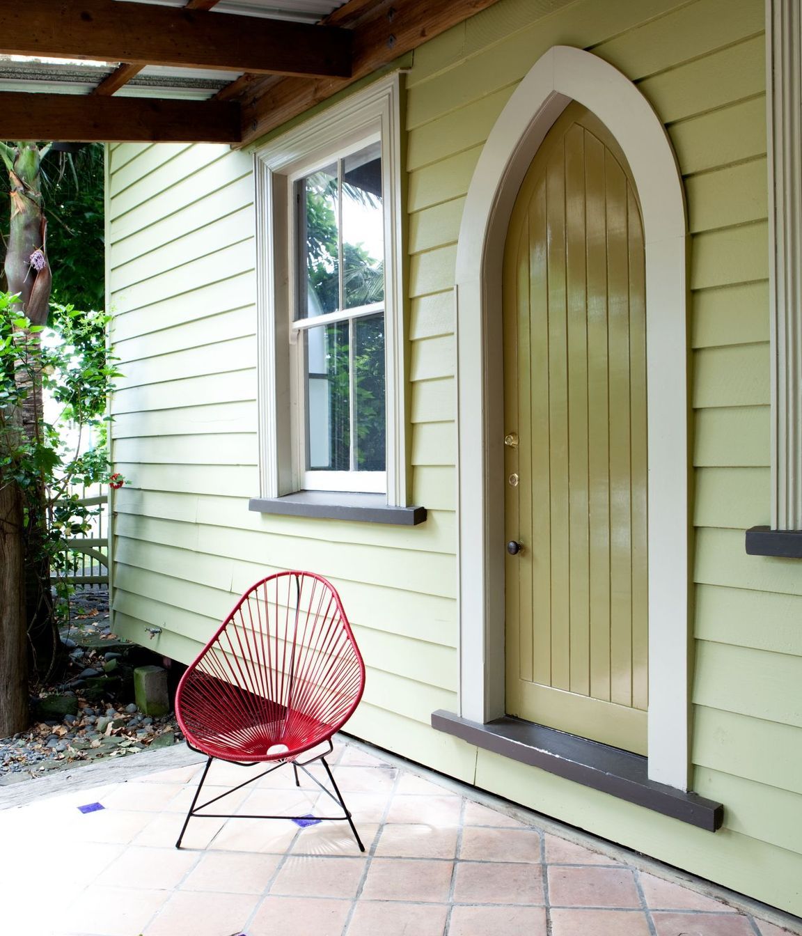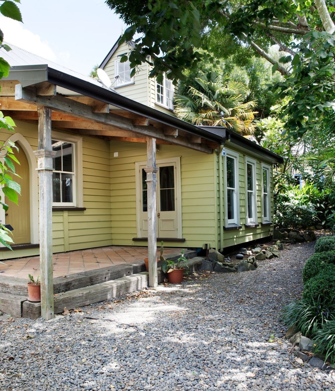 ArchiPro Project Summary - A beautifully restored Kauri Church, originally built between 1860-1880, transformed with a contemporary colour scheme inspired by its garden surroundings, featuring eight new paint colours and a custom 'Church Green' door, while maintaining its warm, inviting interior.