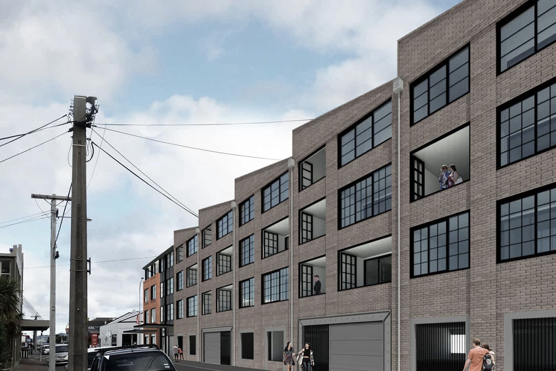 ArchiPro Project Summary - A mixed-use development featuring 44 apartments and a ground floor commercial space, strategically located on Jackson Street in Petone, Lower Hutt, blending modern living with heritage sensitivity and innovative parking solutions.