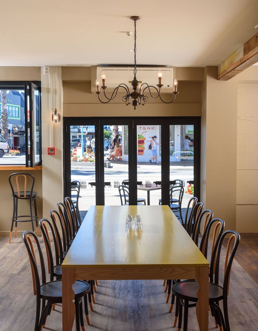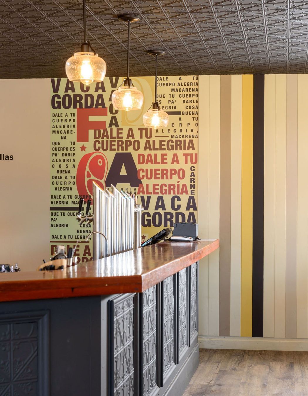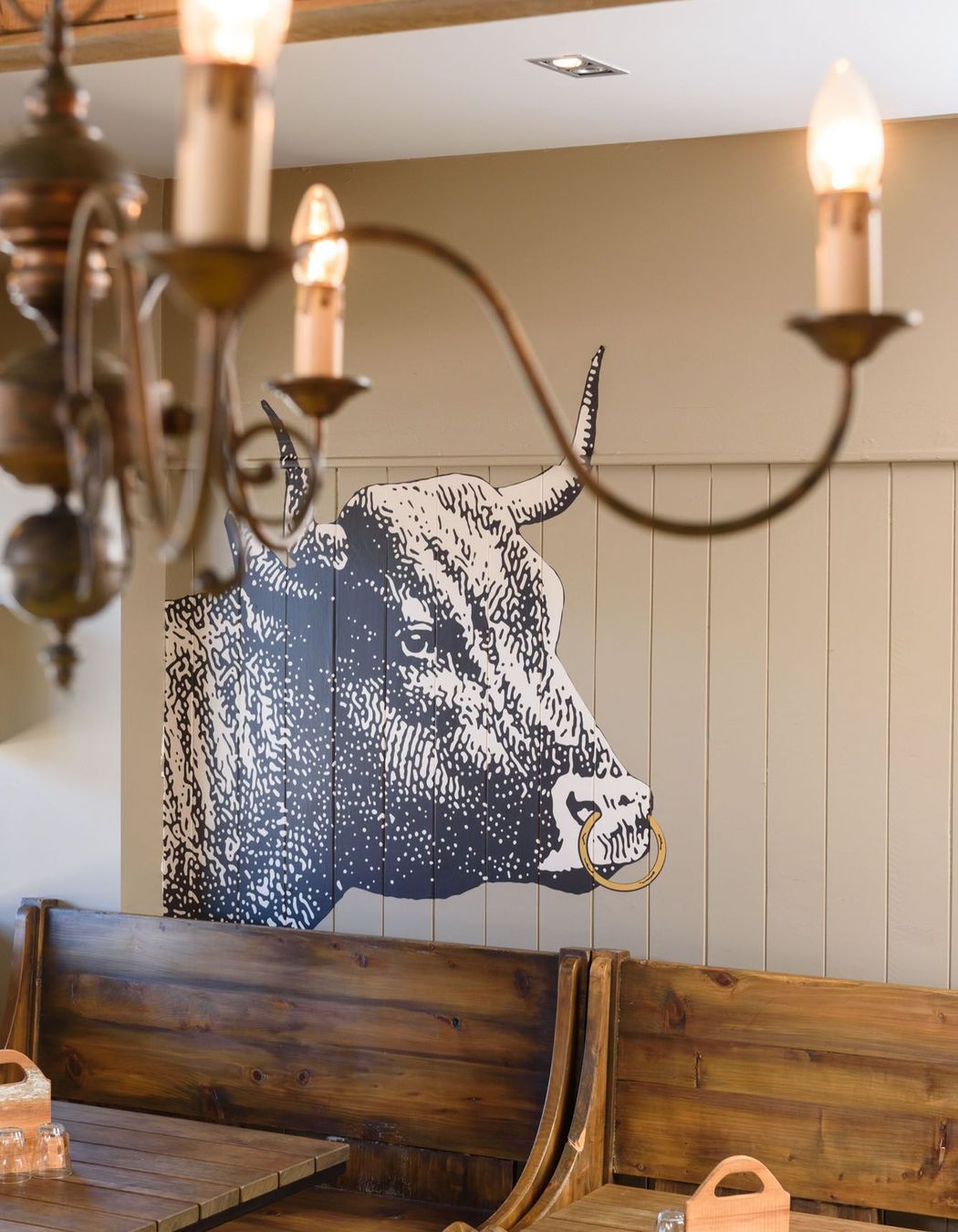 ArchiPro Project Summary - The Fat Cow Restaurant is a mixed-use establishment with a modern design, featuring an inviting awning and vibrant landscaping.