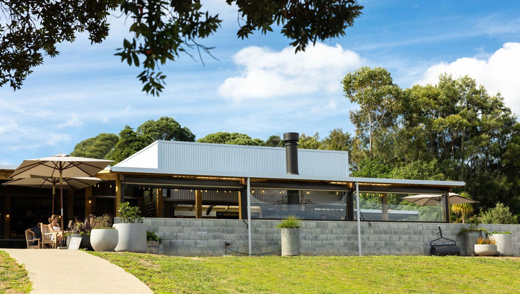 ArchiPro Project Summary - The Heke: A must-visit destination in Onetangi featuring award-winning Waiheke Whisky and Waiheke Brewing Co., complemented by an open wood-fired kitchen and expansive gardens for a relaxing local experience.