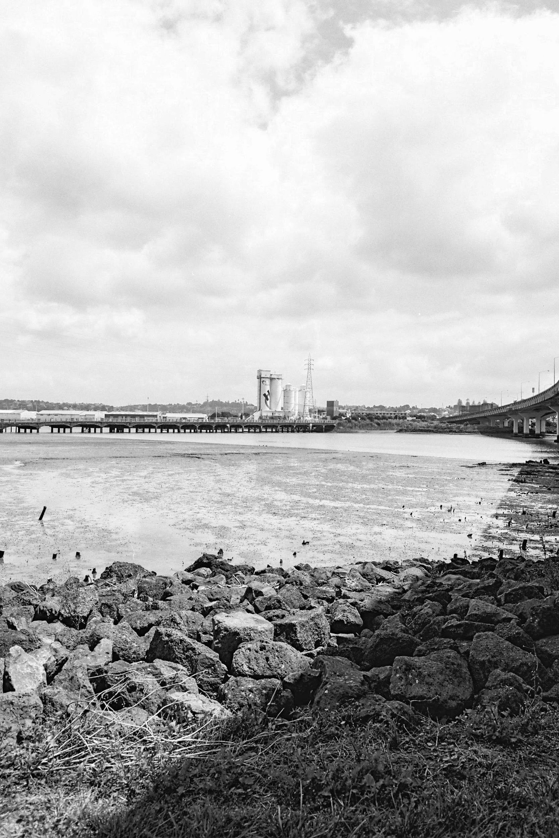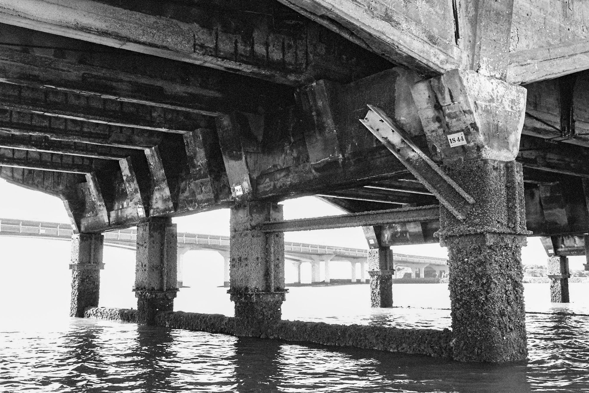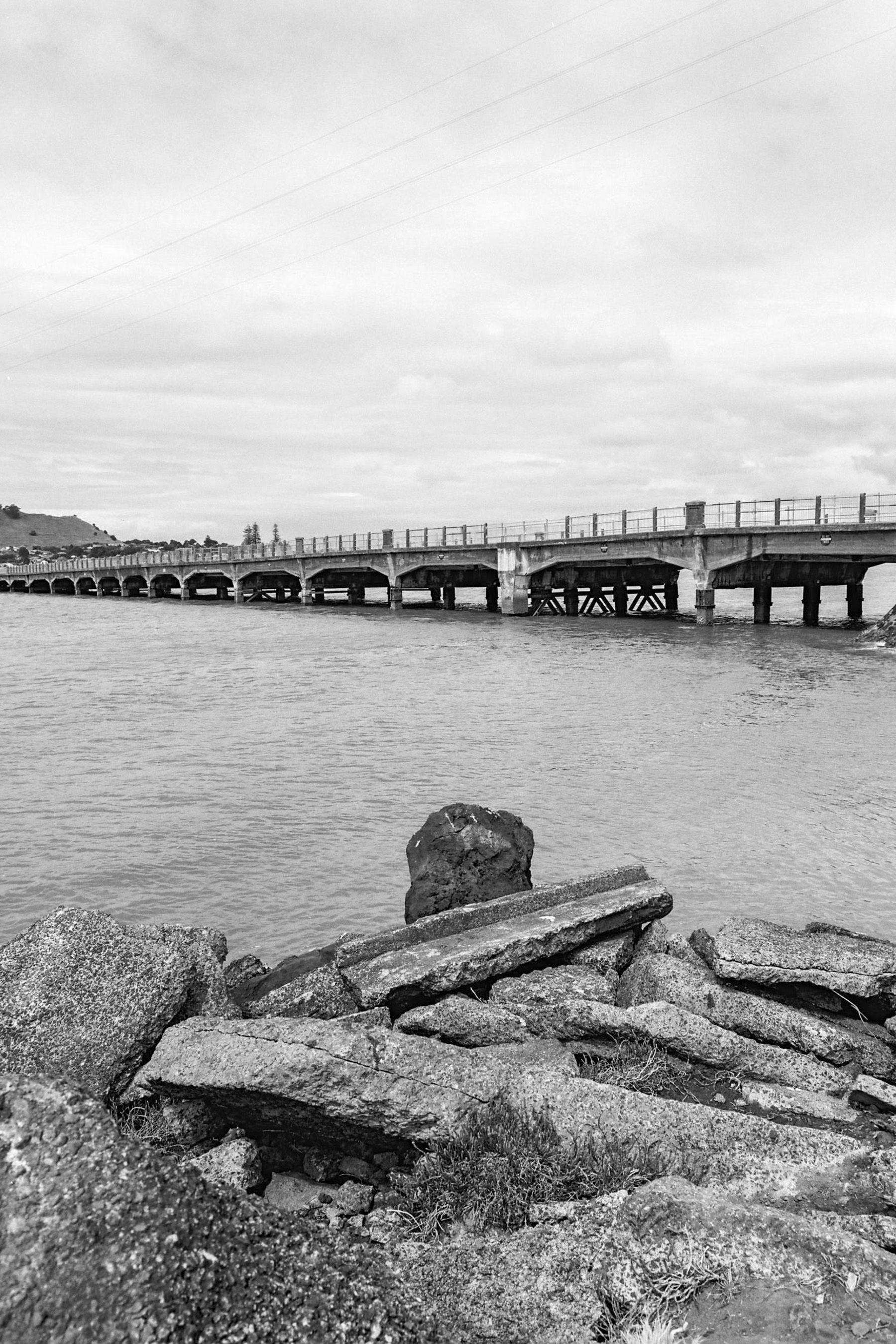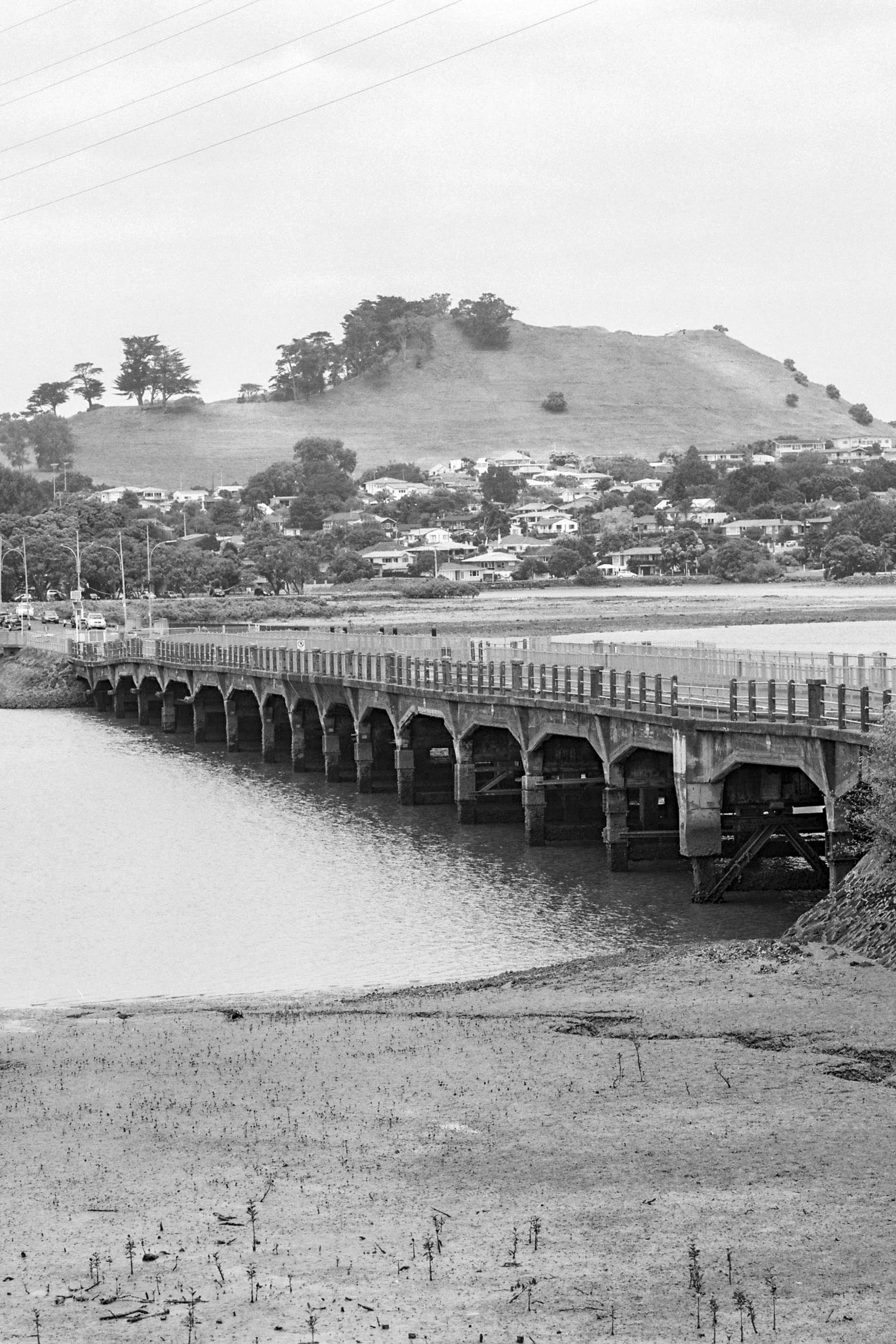 ArchiPro Project Summary - The Old Mangere Bridge, captured on medium format black and white film for archival purposes, showcasing the architectural significance of this landmark in collaboration with Matthews & Matthews Architects.