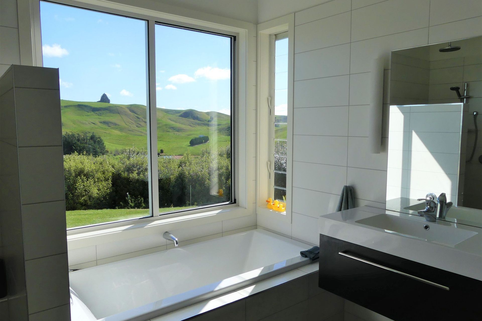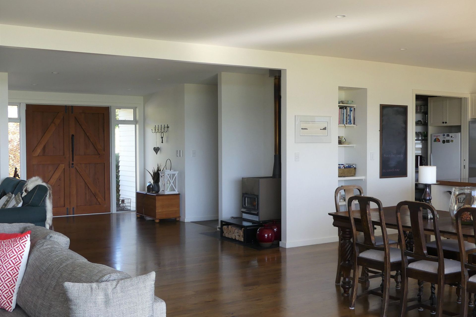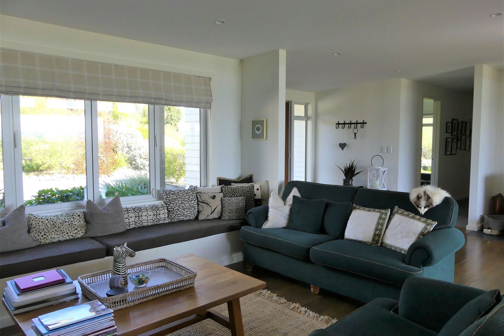 ArchiPro Project Summary - A stunning residence perched on a ridge, offering breathtaking views of the Tuki Tuki River, designed to maximize sunlight with solid timber flooring for warmth, featuring a shadow-clad exterior and Linea weatherboard.