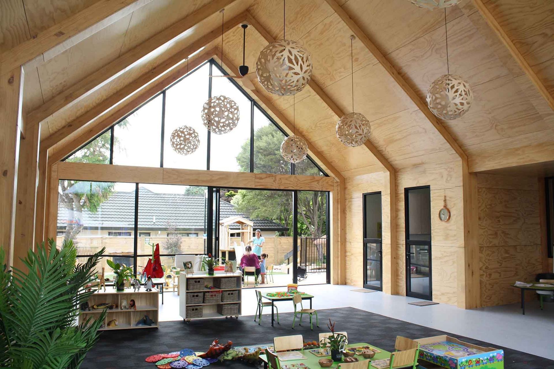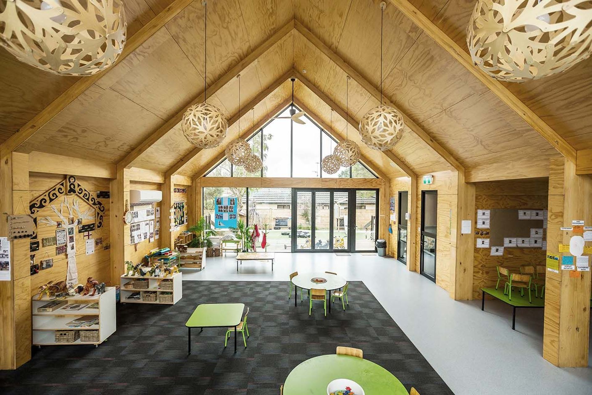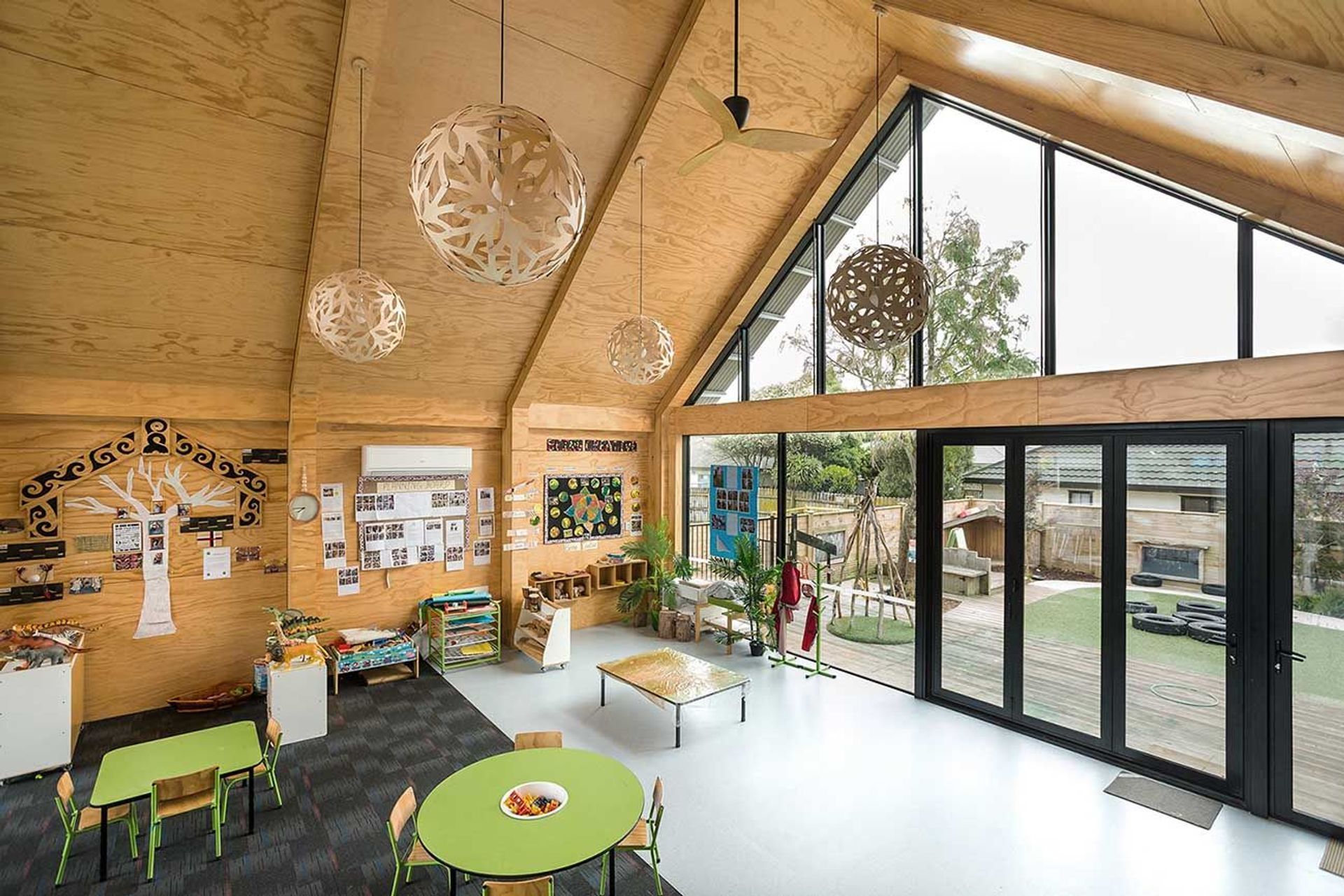 ArchiPro Project Summary - The Rainbow Corner Early Learning Centre in Takanini features a design inspired by New Zealand vernacular architecture, utilizing sustainable materials and practices to create a nurturing environment for children, with a focus on natural light and warmth.