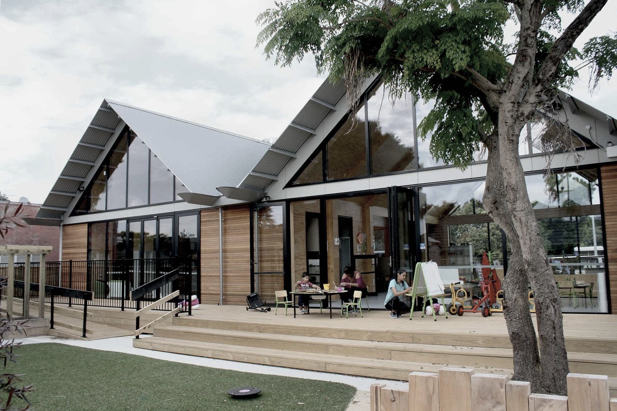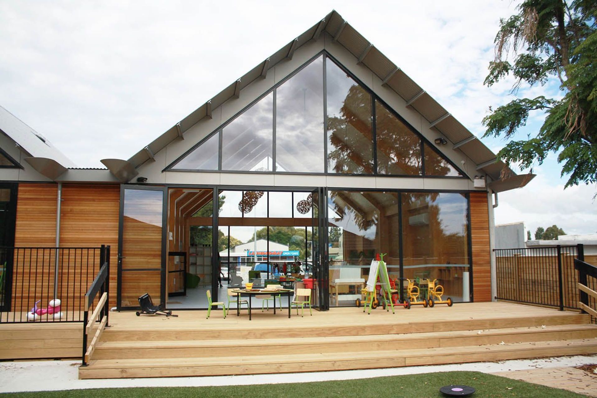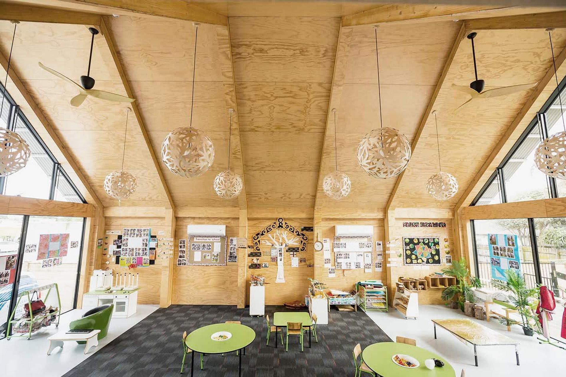 ArchiPro Project Summary - The Rainbow Corner Early Learning Centre in Takanini features a design inspired by New Zealand vernacular architecture, utilizing sustainable materials and practices to create a nurturing environment for children, with a focus on natural light and warmth.