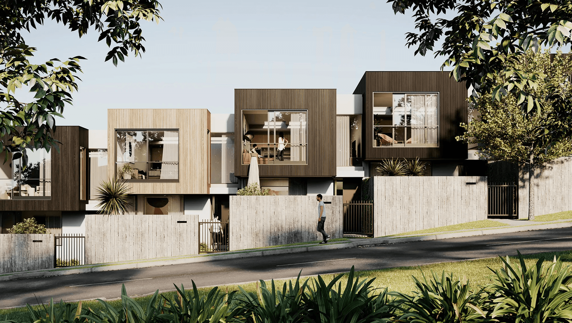 ArchiPro Project Summary - Efficient 2-storey townhouse development in Tauranga, designed to navigate challenging topography while offering versatile living options and robust materials that reflect the area's evolving landscape.