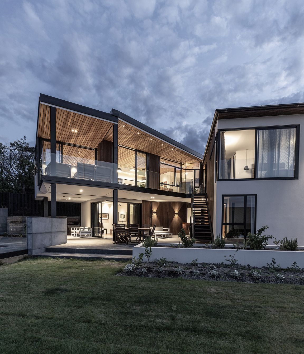 ArchiPro Project Summary - The Wall House: A harmonious blend of solid street presence and fragmented design, maximizing sun exposure and energy efficiency while offering stunning views of Christchurch's natural landscape.