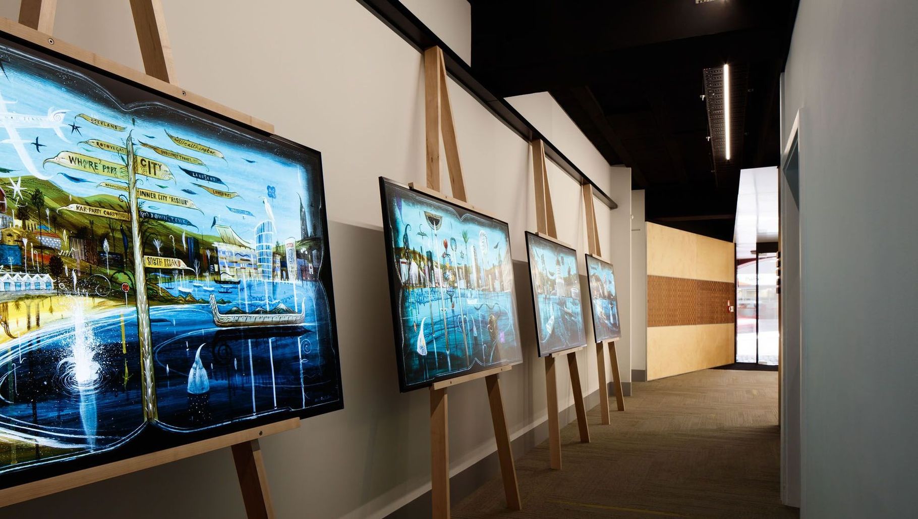 ArchiPro Project Summary - A revitalized entrance for the Woolstore Professional Centre featuring innovative lighting and artistic elements, designed in collaboration with Inside Design to reflect Wellington's culture.