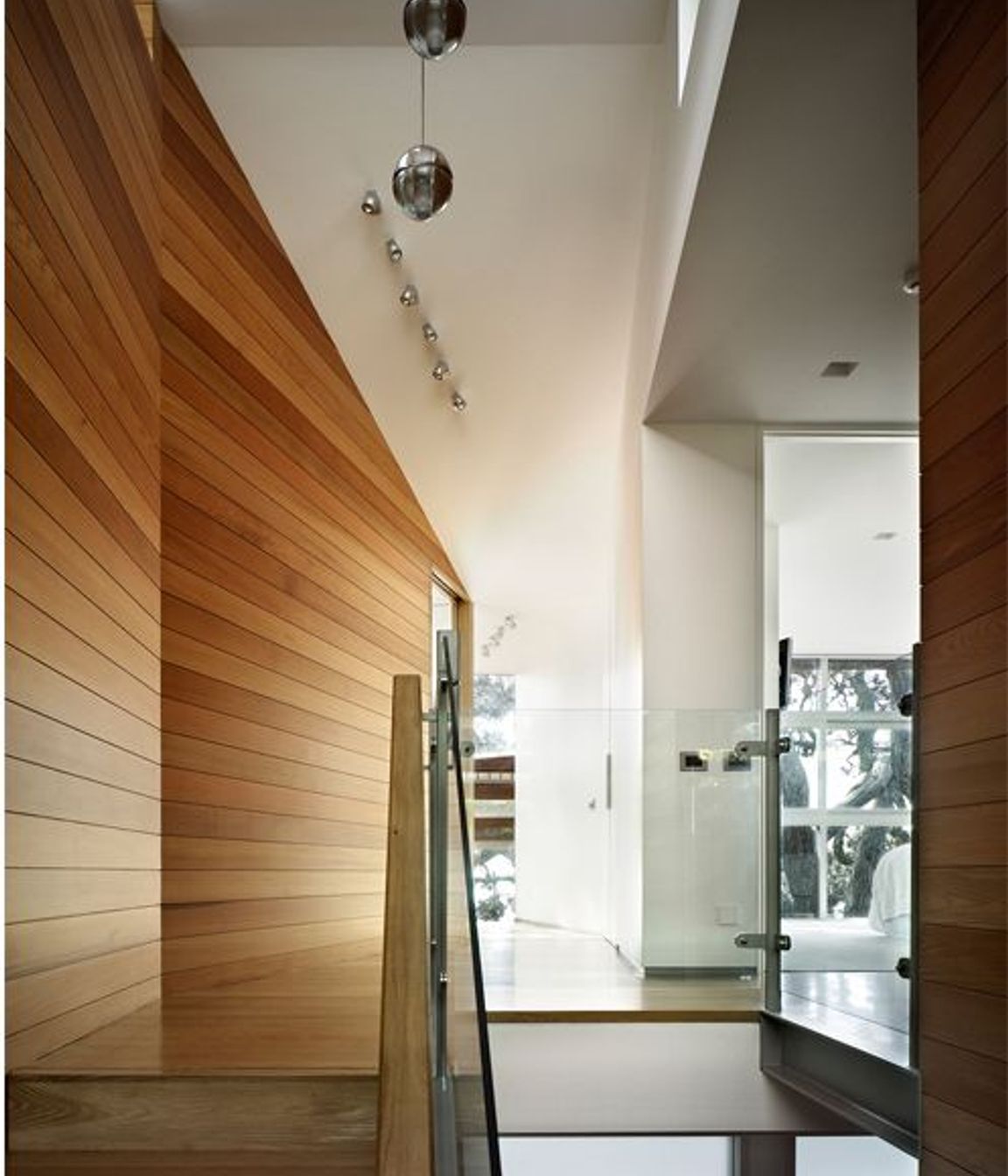 ArchiPro Project Summary - Innovative compact house seamlessly integrated into a challenging site, preserving five pohutukawa trees while maximizing views and sunlight, featuring a unique design that adapts to the landscape and includes a rooftop terrace among the branches.