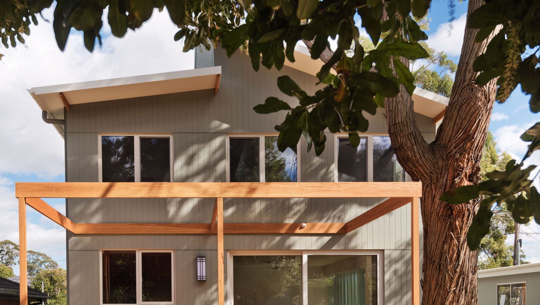 ArchiPro Project Summary - Sydney's first certified Passive House, featuring a compact design that maximizes solar gain, preserves a magnificent tallowwood tree, and achieves superior indoor air quality through innovative construction and energy-efficient systems.