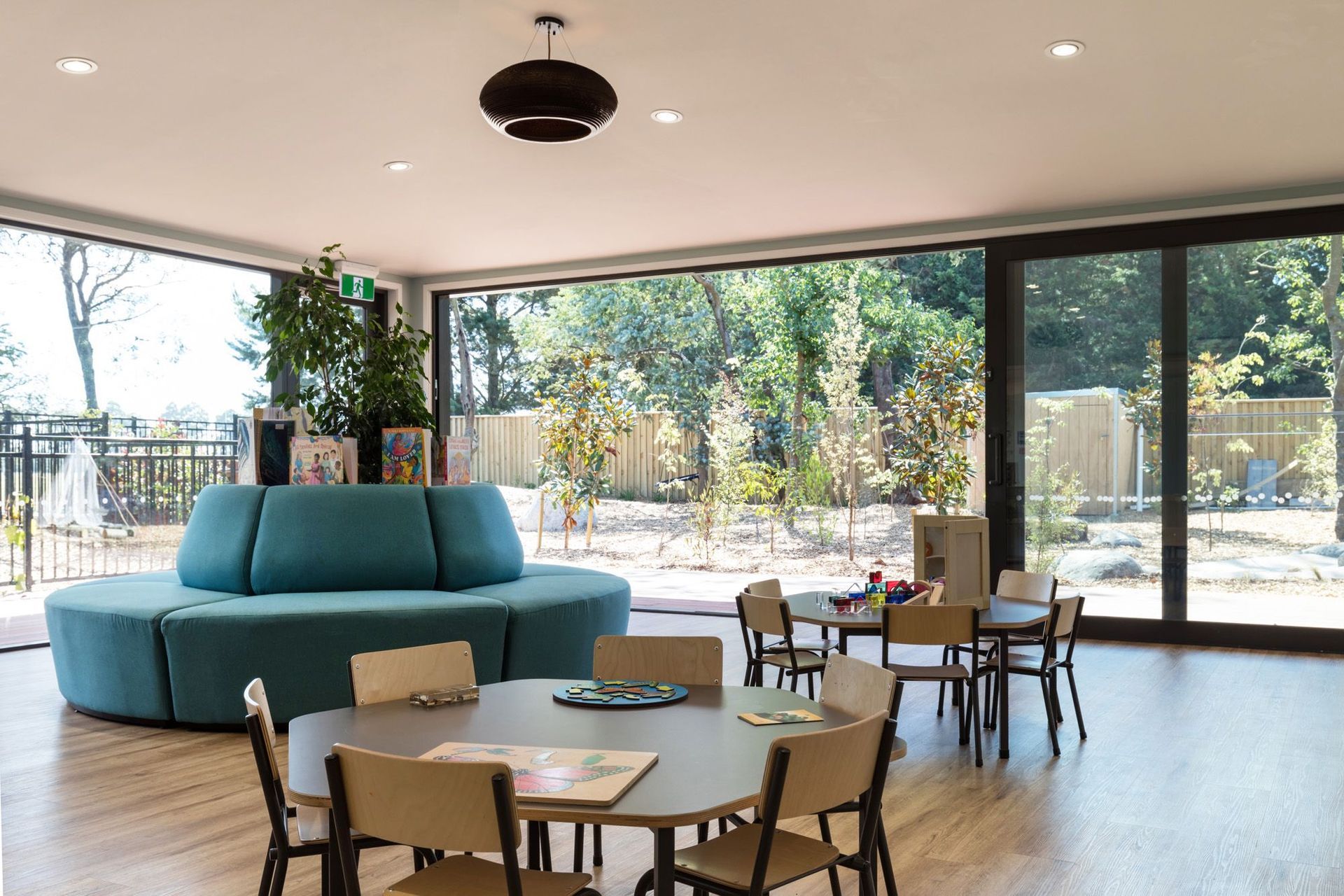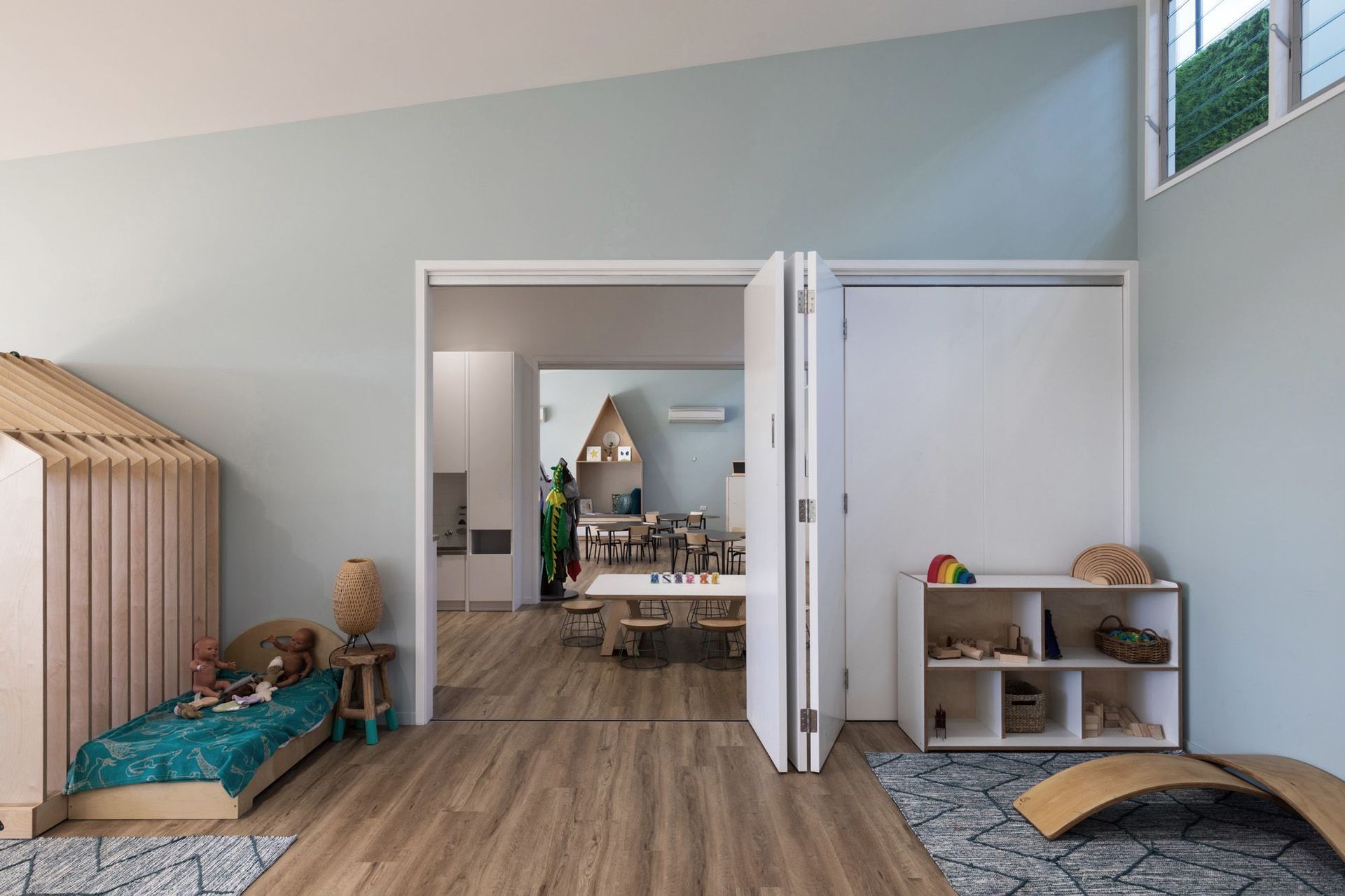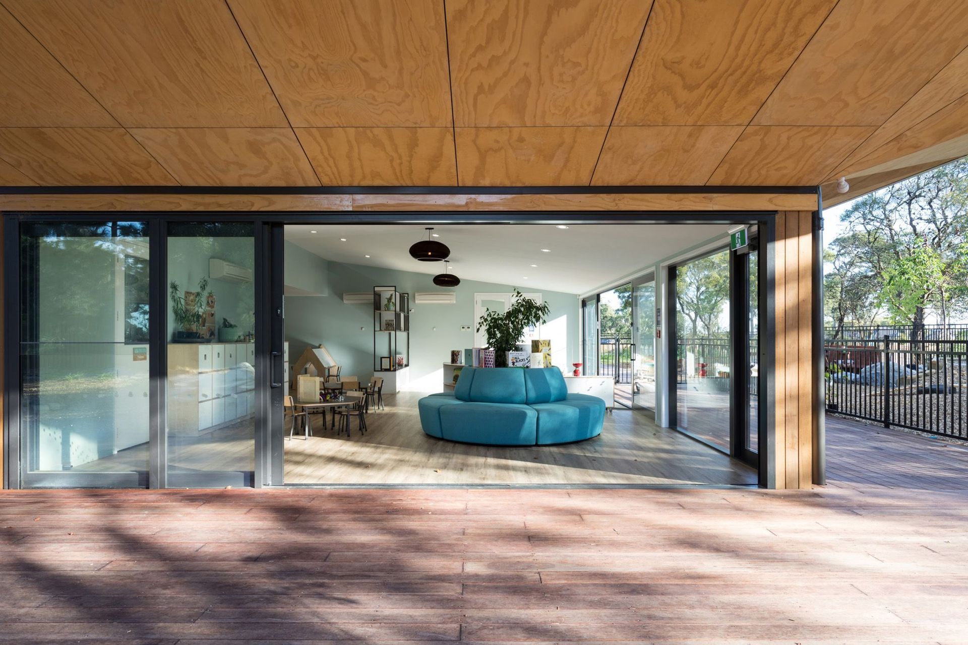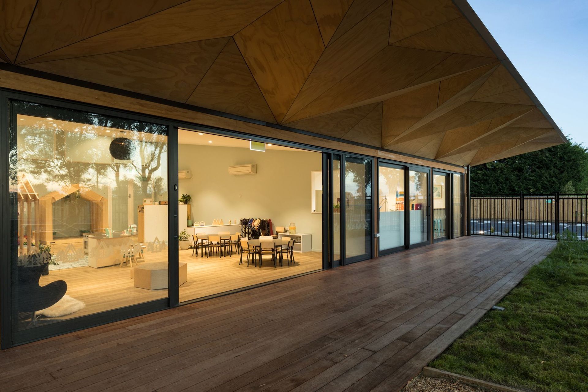 ArchiPro Project Summary - Three Trees Learning Centre in Rolleston, Christchurch, features a sculptural timber roof and a nature-focused design, promoting child-centered learning through play in a harmonious environment, completed in 2019 for CPMC Ltd and Three Trees Learning Centre.