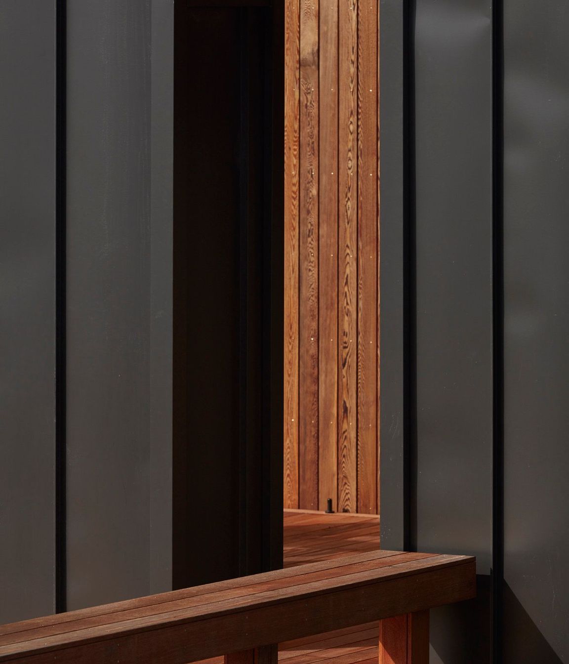ArchiPro Project Summary - Unique hillside residence featuring a T-shaped design, stunning views, private courtyards, and a blend of natural materials, including Flaxpod Colorsteel and cedar, complemented by minimalistic interiors and bespoke landscaping.