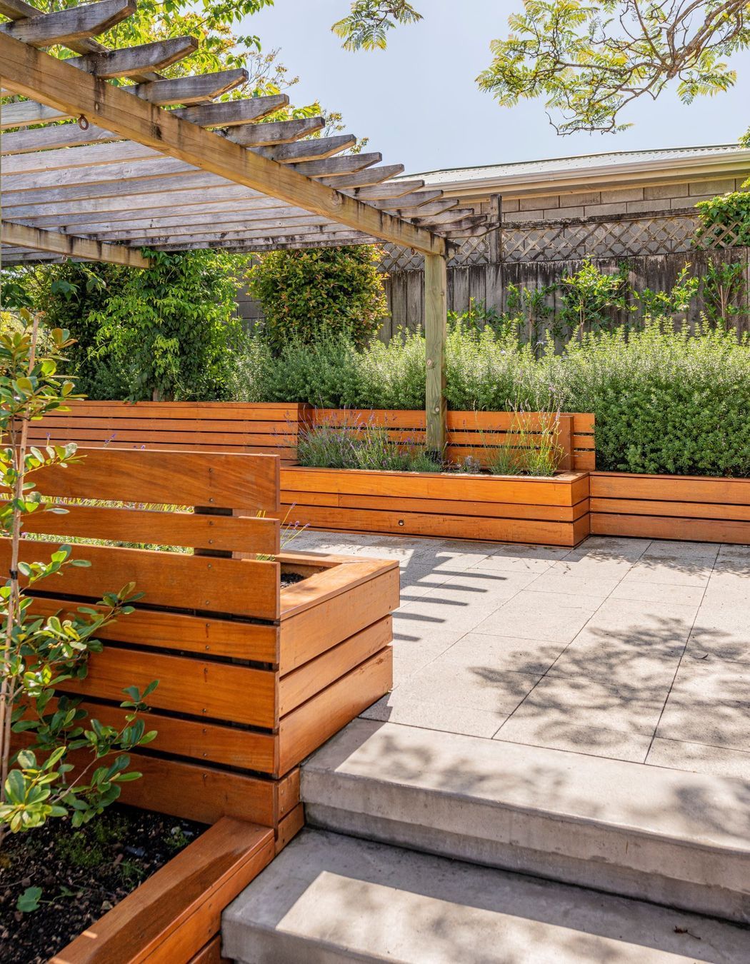 ArchiPro Project Summary - A complete renovation of outdoor recreational spaces featuring a contemporary design, including a raised deck around a Jacaranda tree, a new lower deck and pergola, and seamless integration with an upgraded terrace and levelled lawn.