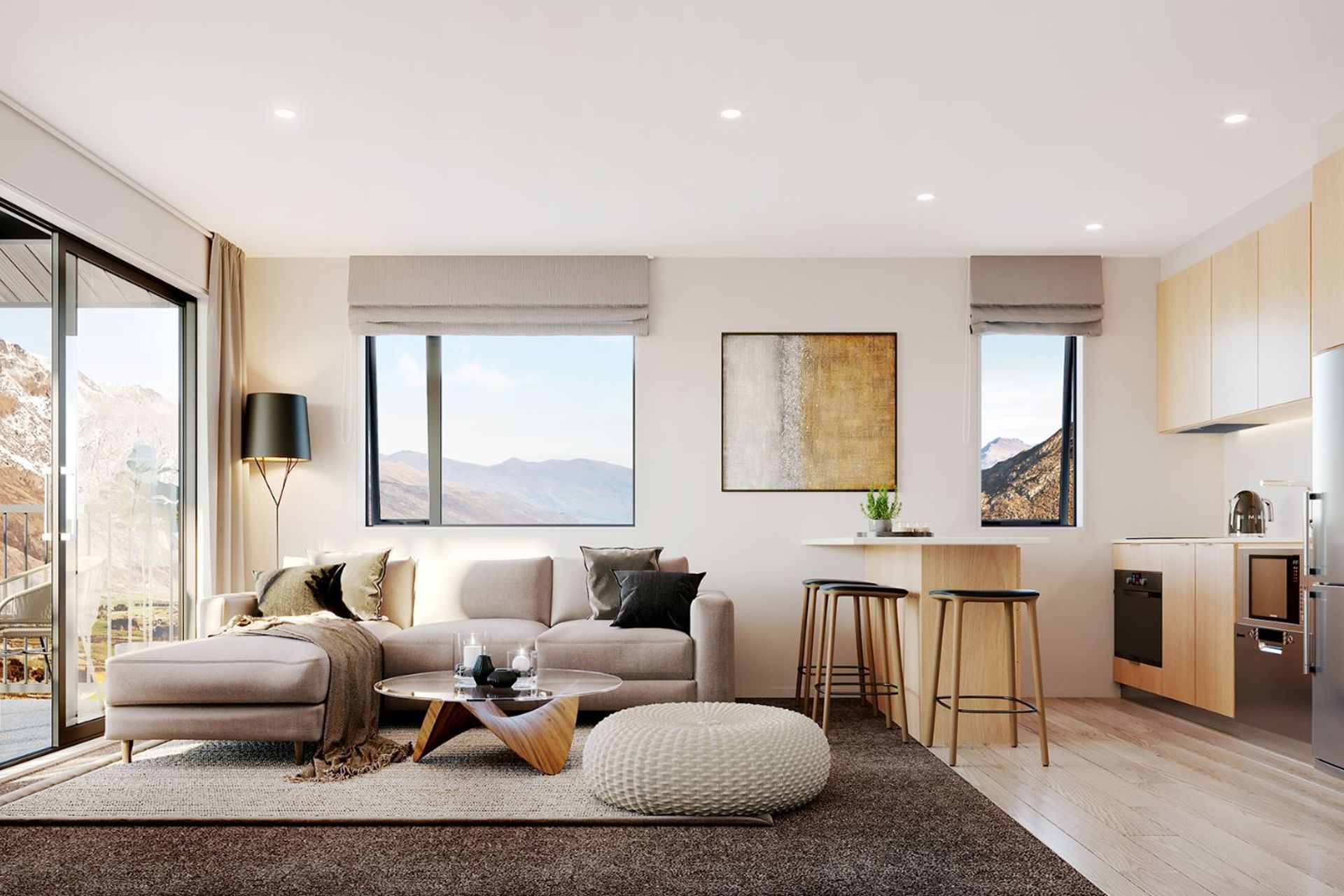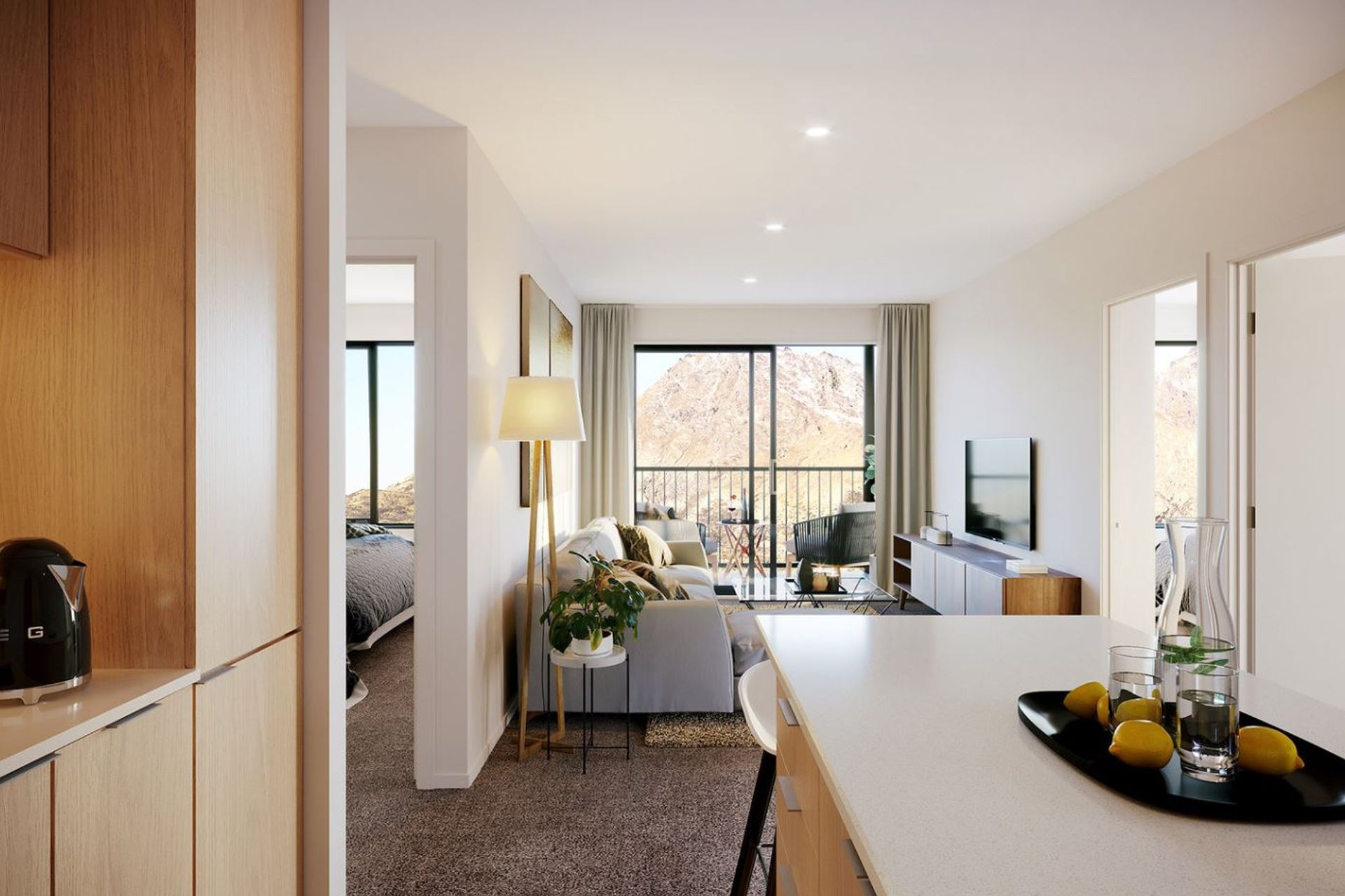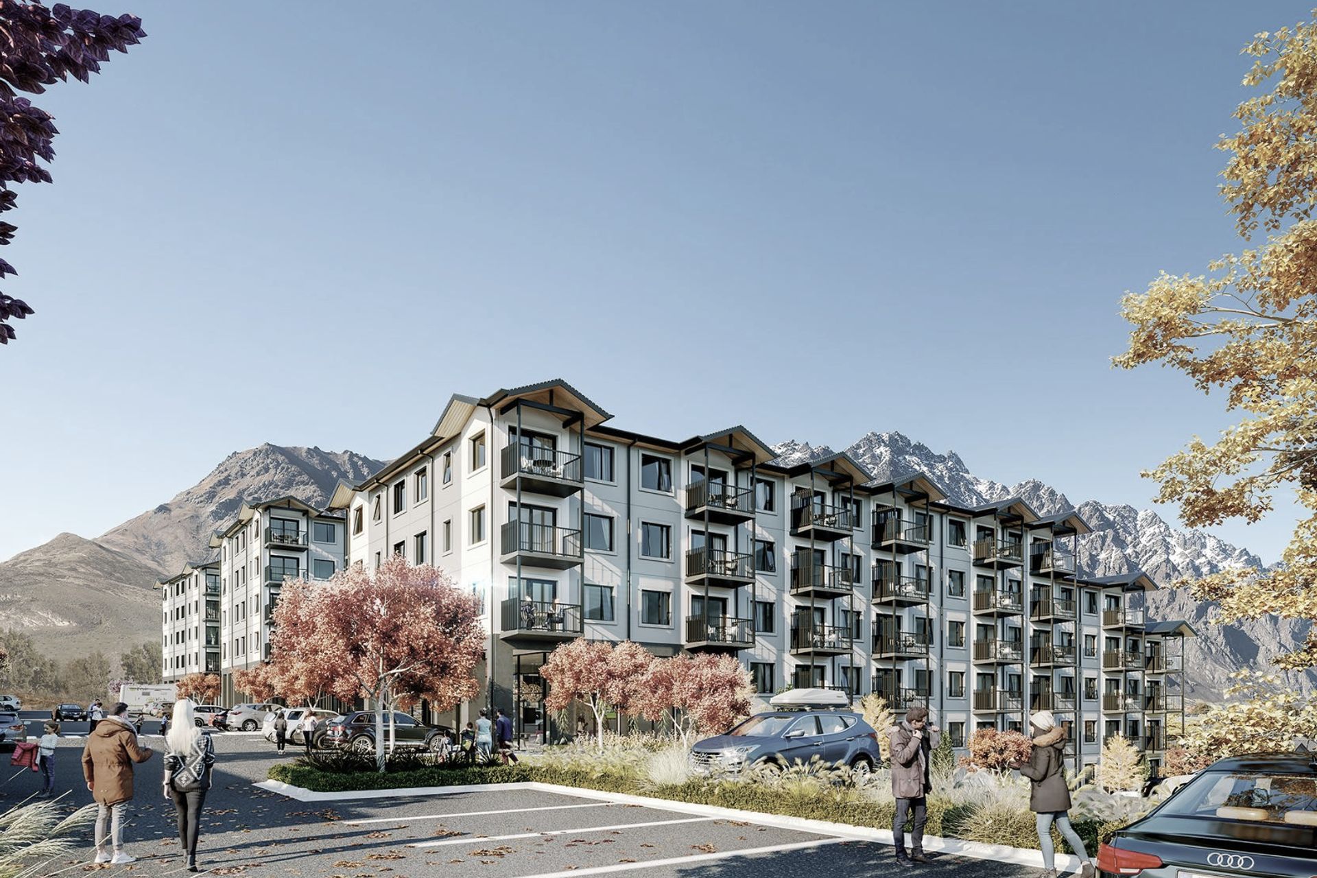 ArchiPro Project Summary - A contemporary development featuring 230 apartments in the scenic location of Queenstown, currently in the developed design phase.