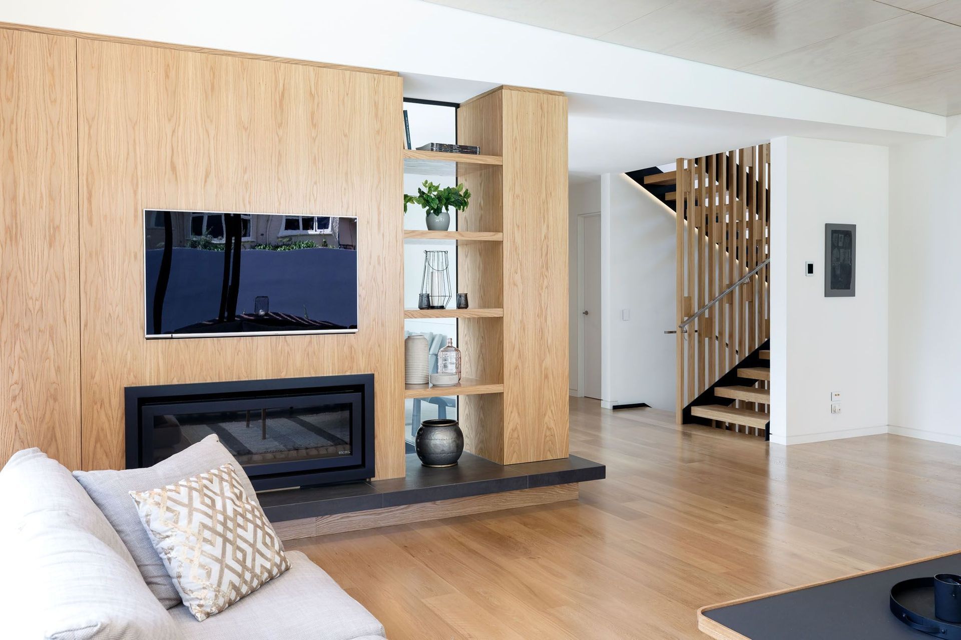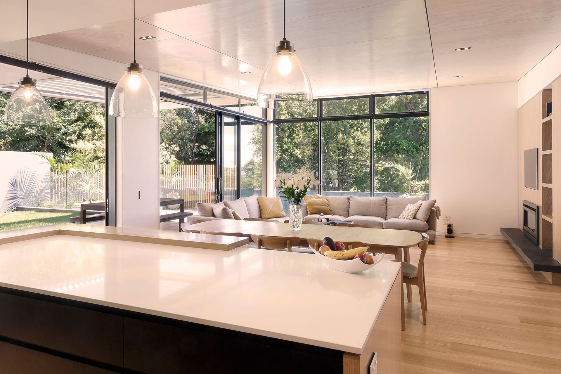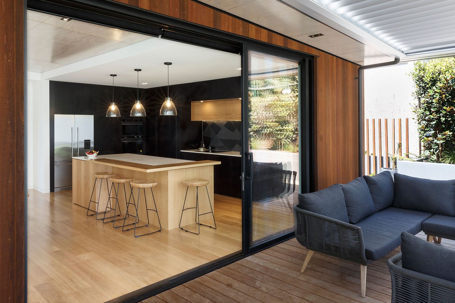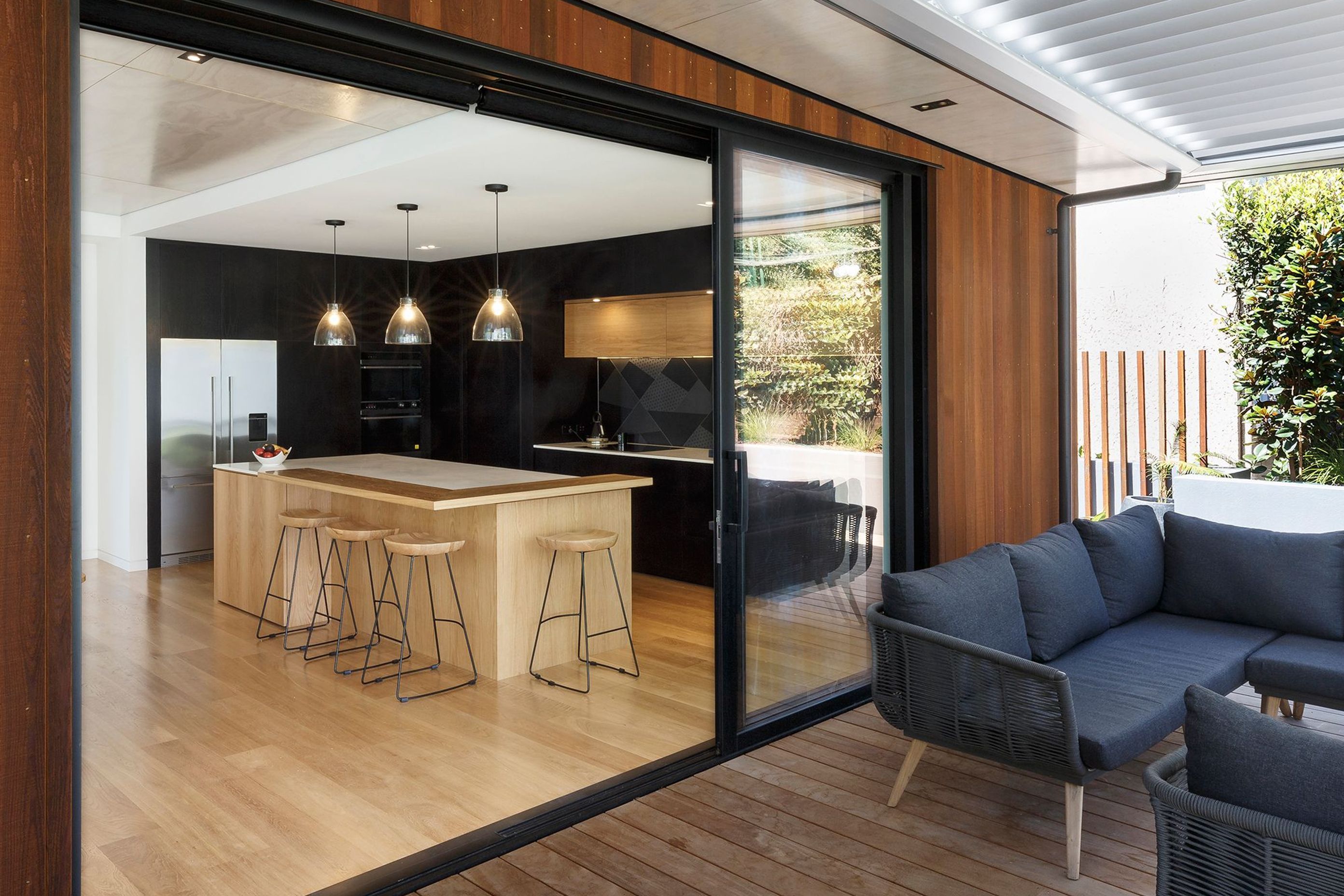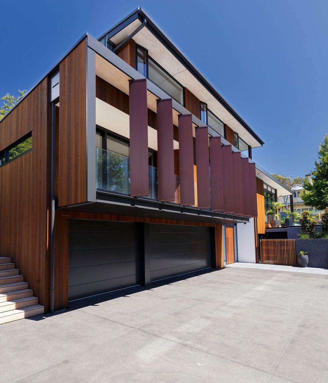 The architects had previously worked on a low-density apartment scheme to be built on the site that didn’t come to fruition, so they were able to use some of their research and learnings from the precious scheme and apply it to this home to suit the needs of the new homeowners. The client, who owns Scott Construction, which built the home, were wanting a family home with a large garage, storage for a boat, and extra accommodation for grandparents and other guests to stay.