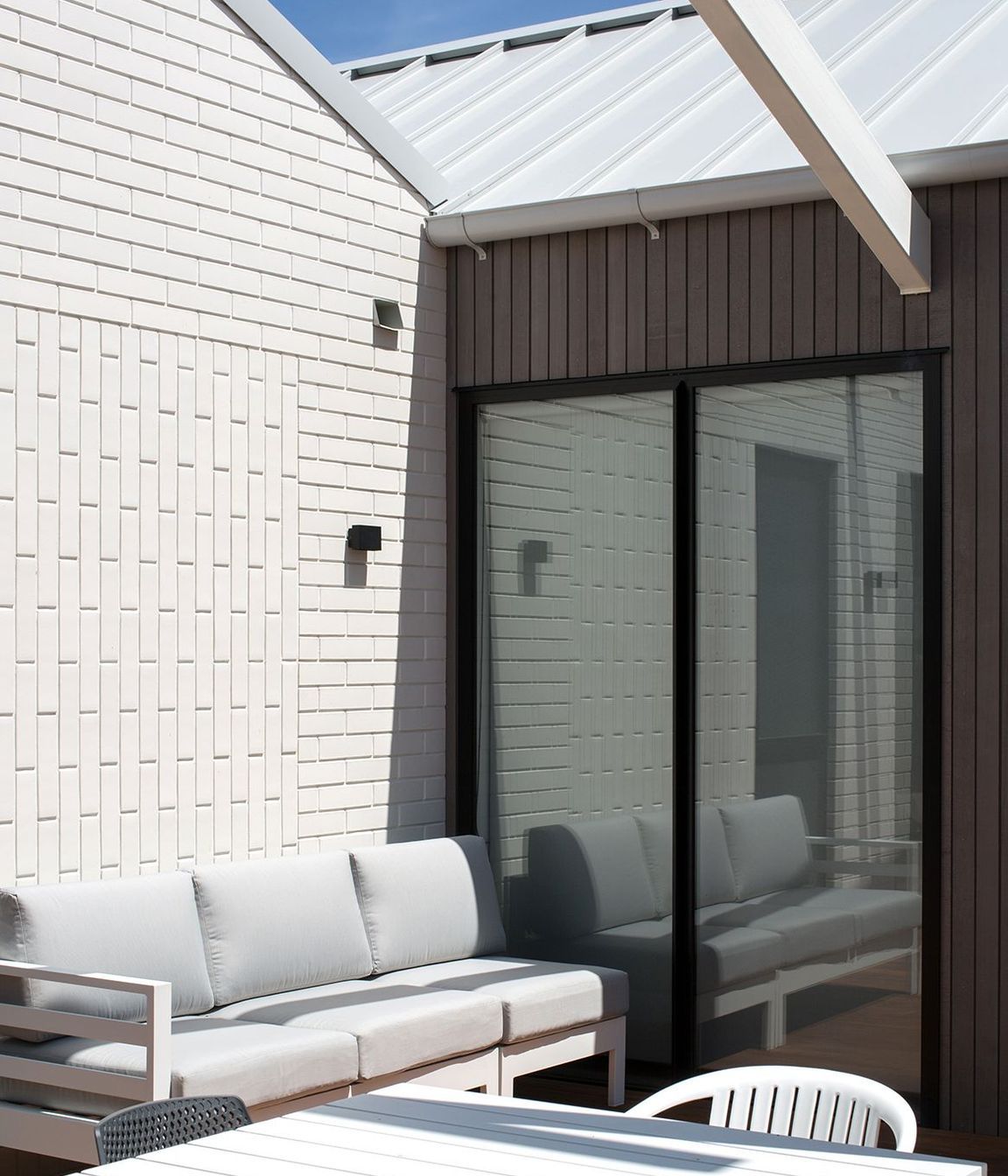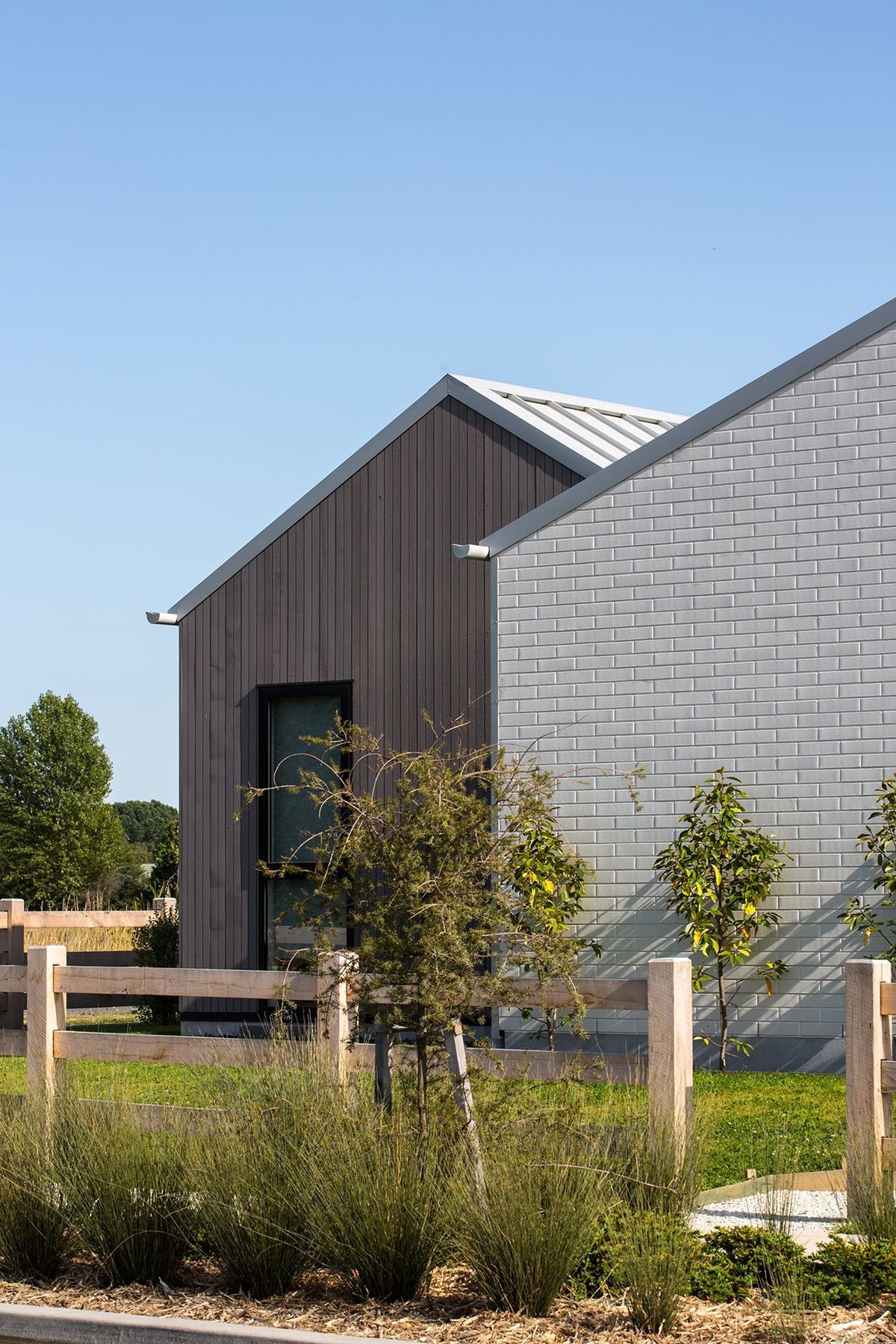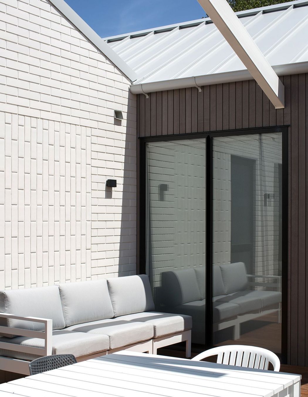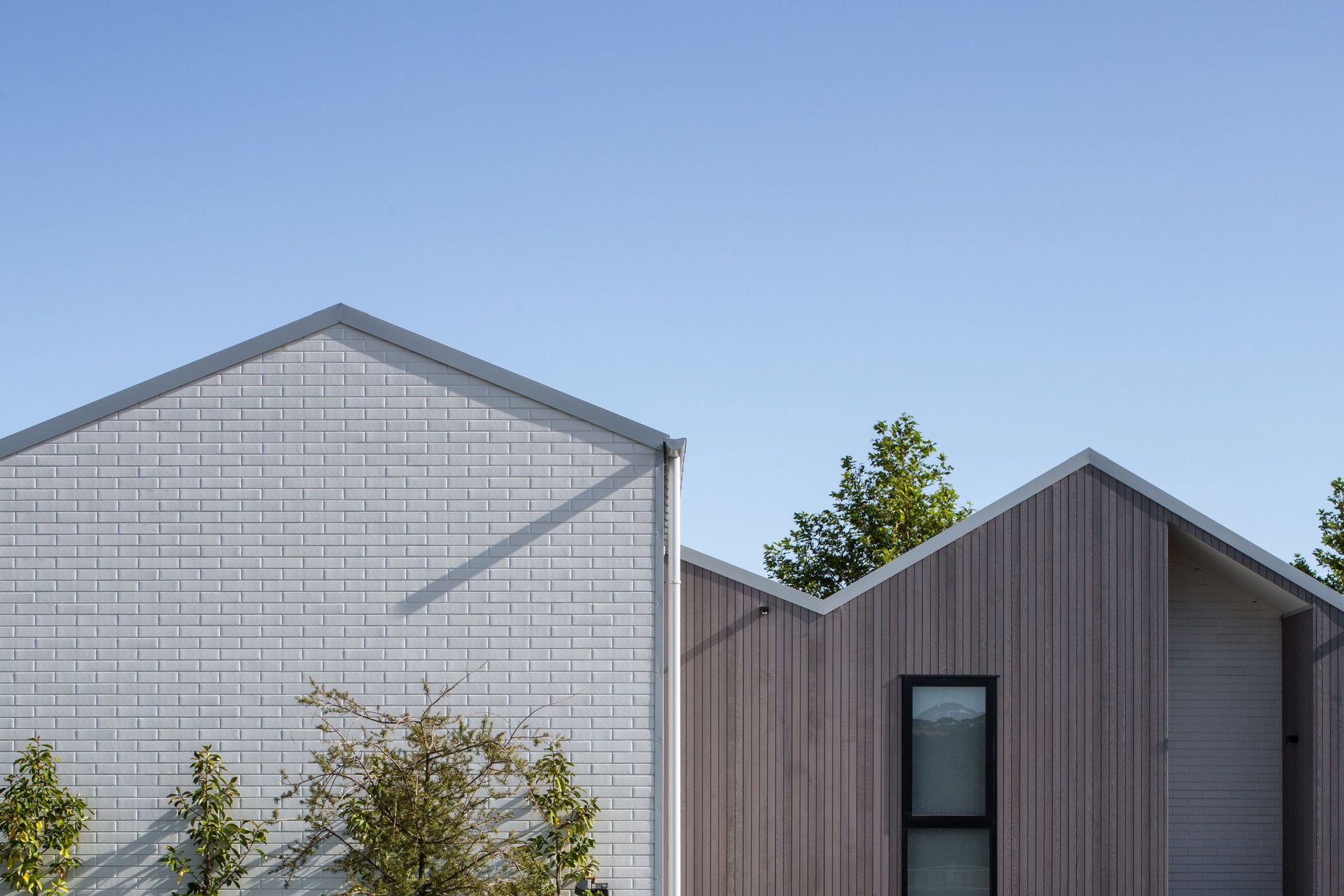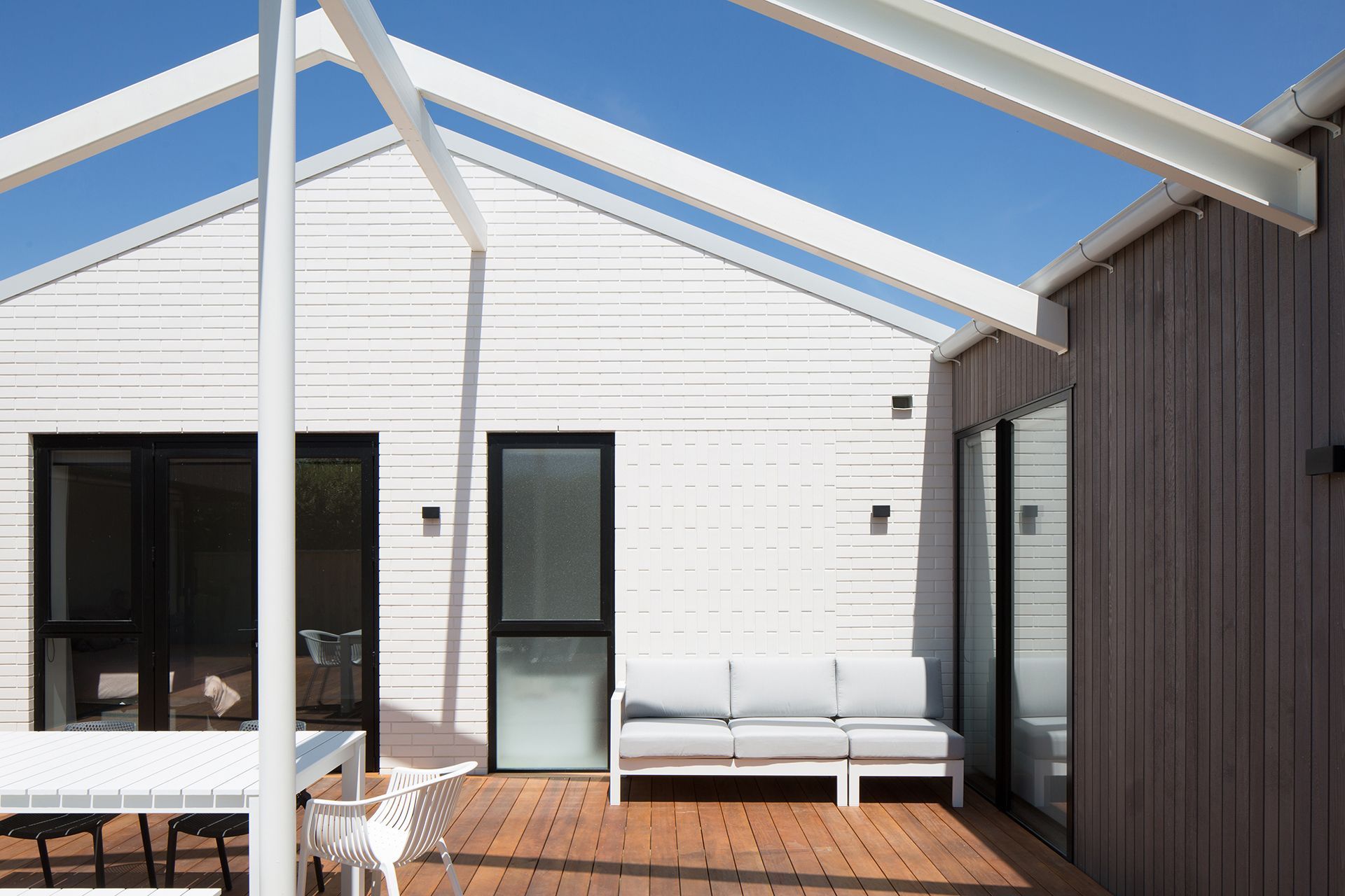 ArchiPro Project Summary - Innovative four-bedroom home featuring staggered triple gable forms, designed to create a private family courtyard while maintaining a cost-effective build.