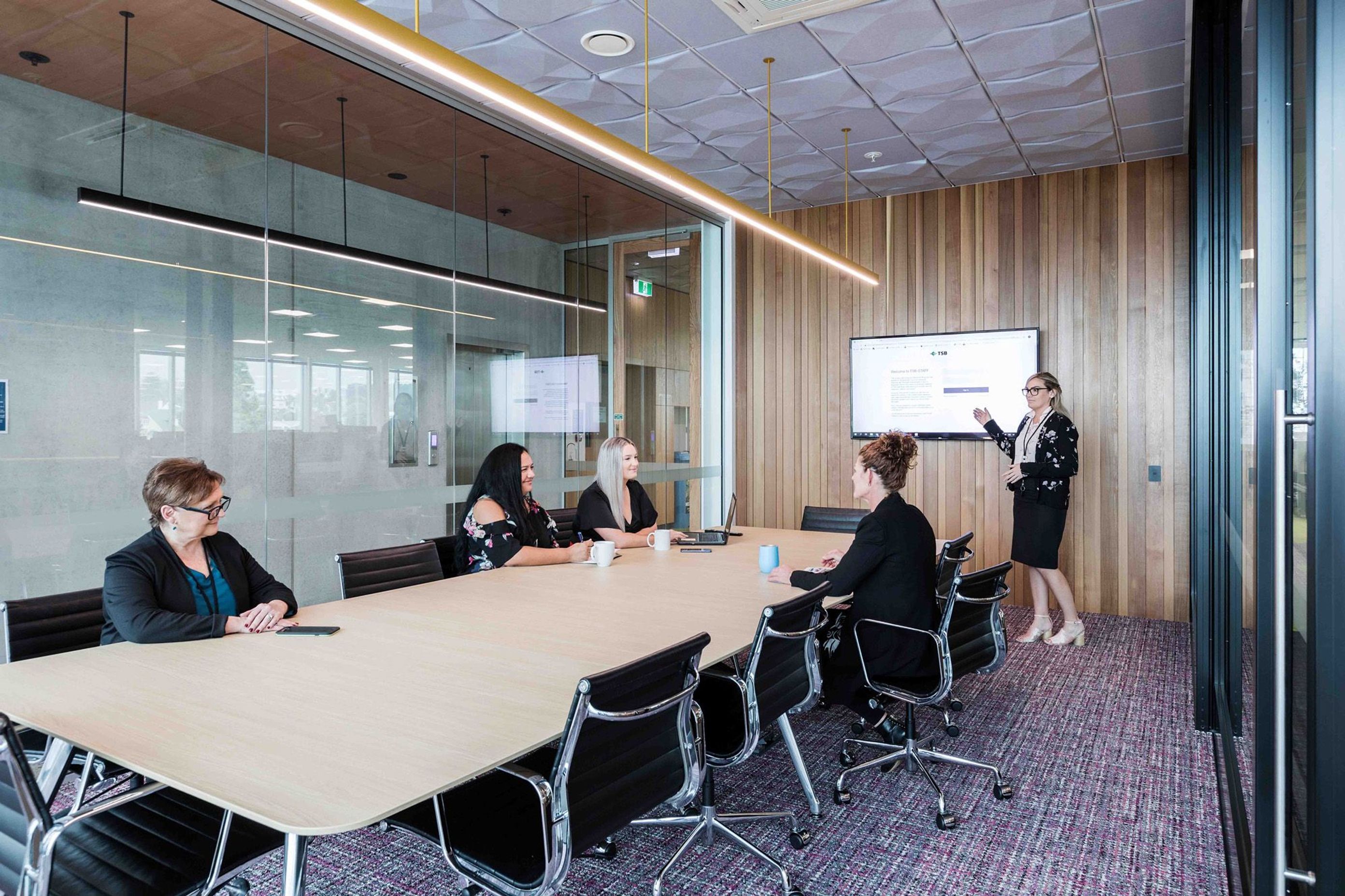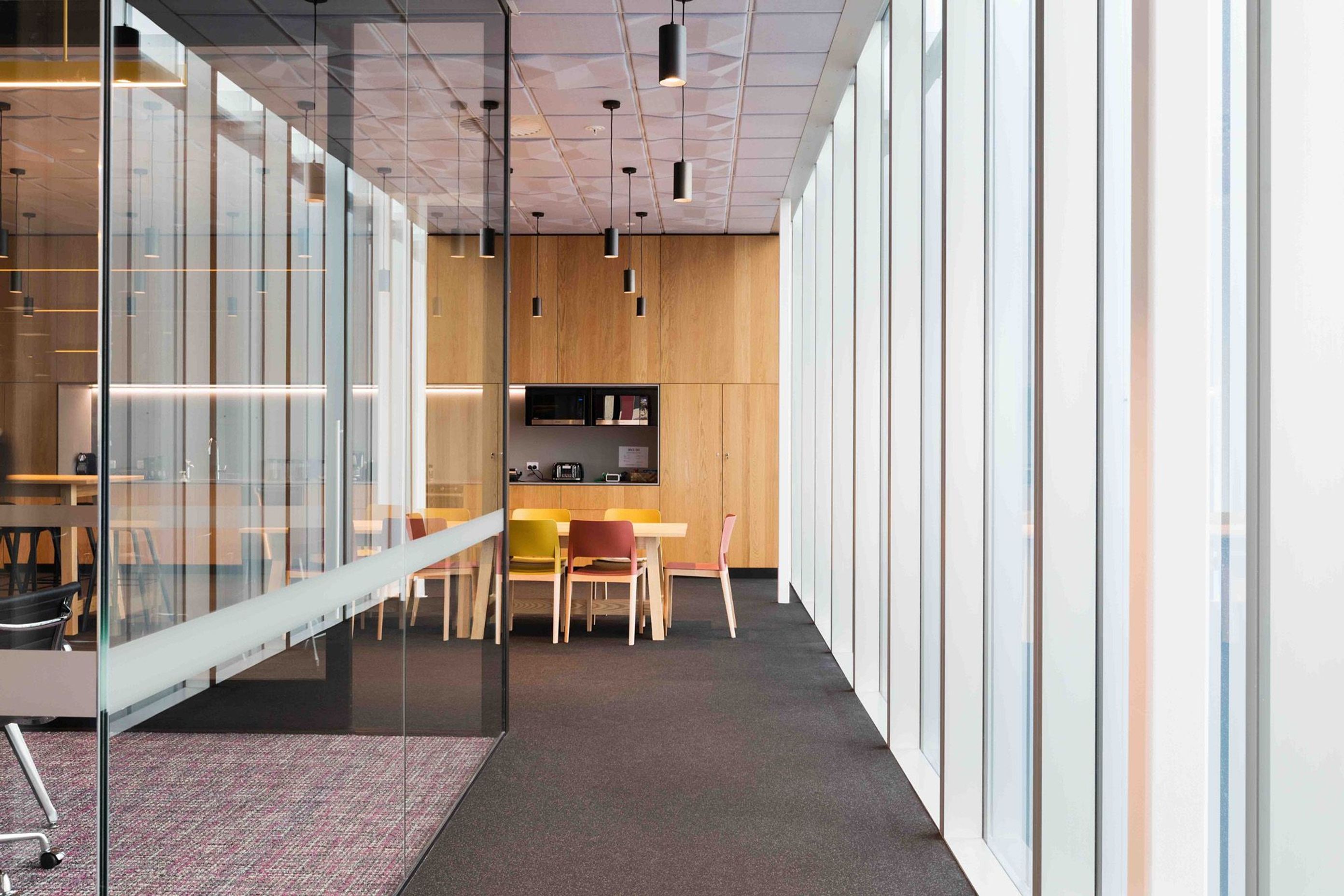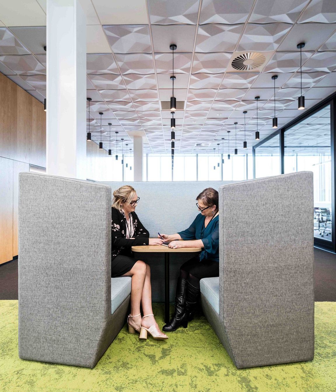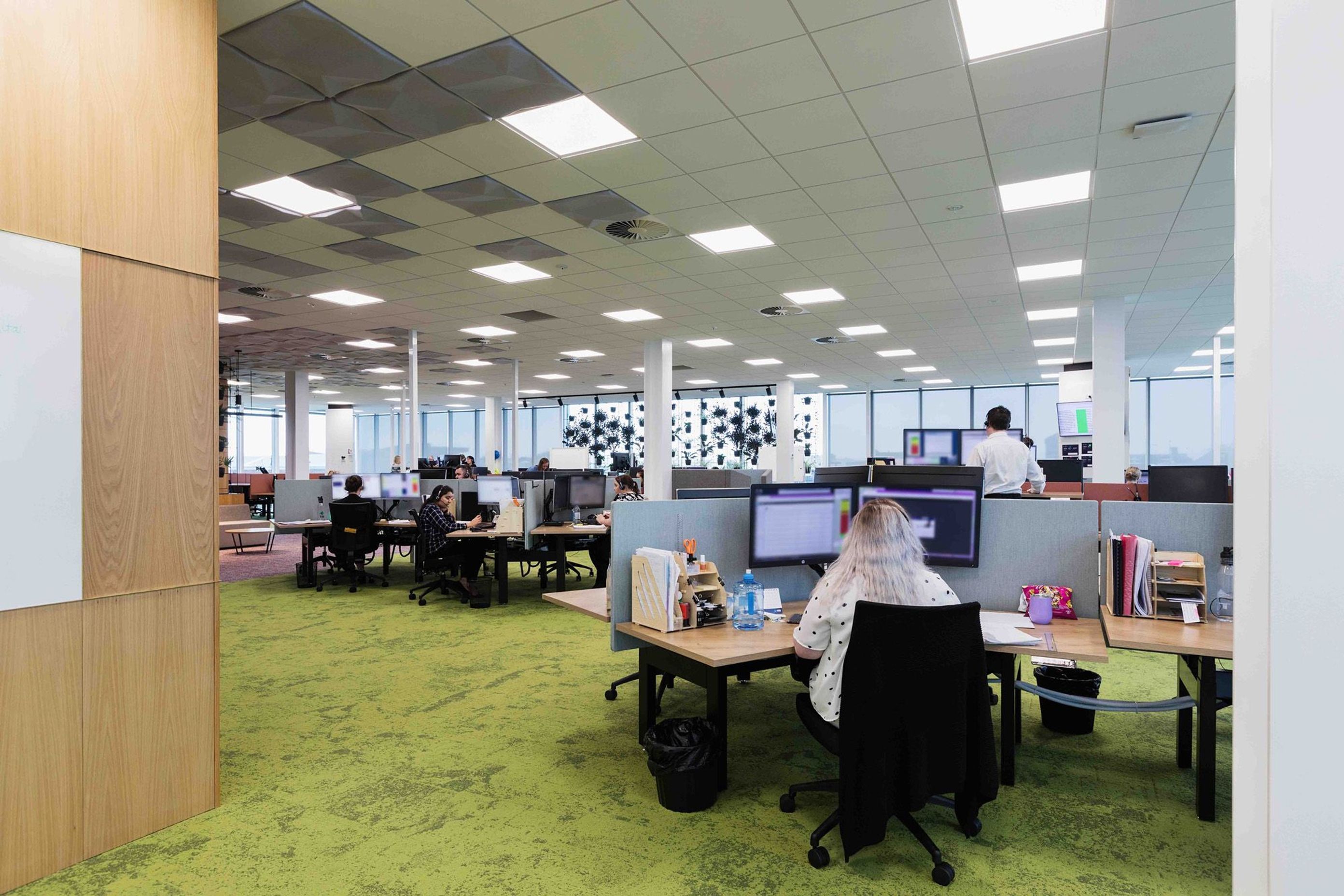 ArchiPro Project Summary - TSB Customer Engagement Centre: A forward-thinking workplace design that emphasizes collaboration, well-being, and transparency, featuring open spaces, contemporary acoustic treatments, and vibrant green areas to enhance employee engagement and service quality.