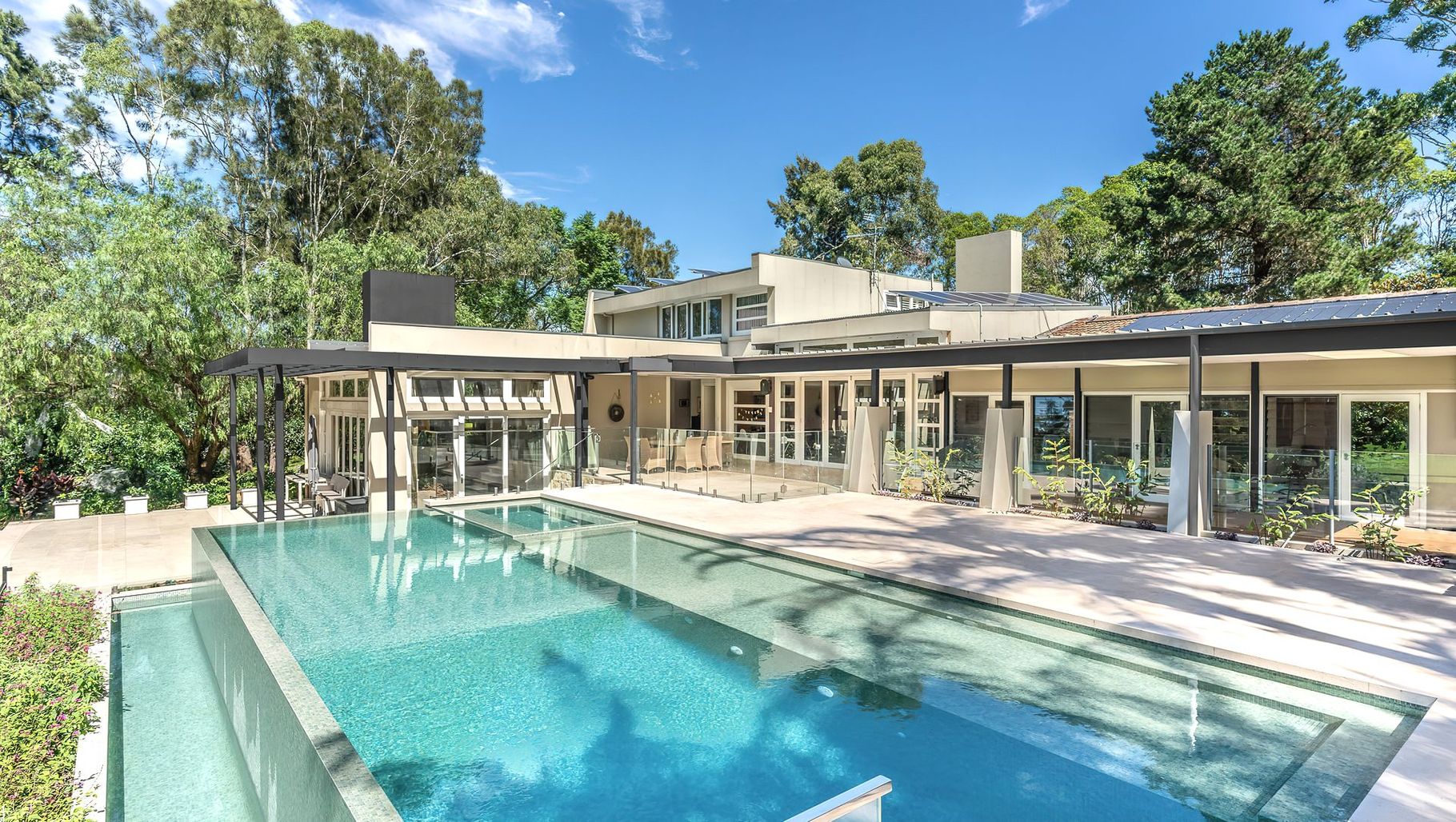 ArchiPro Project Summary - A stunning infinity pool and spa renovation that enhances a family home, featuring a classic sandstone surround and a tranquil view of the national park, creating a cherished space for family gatherings.