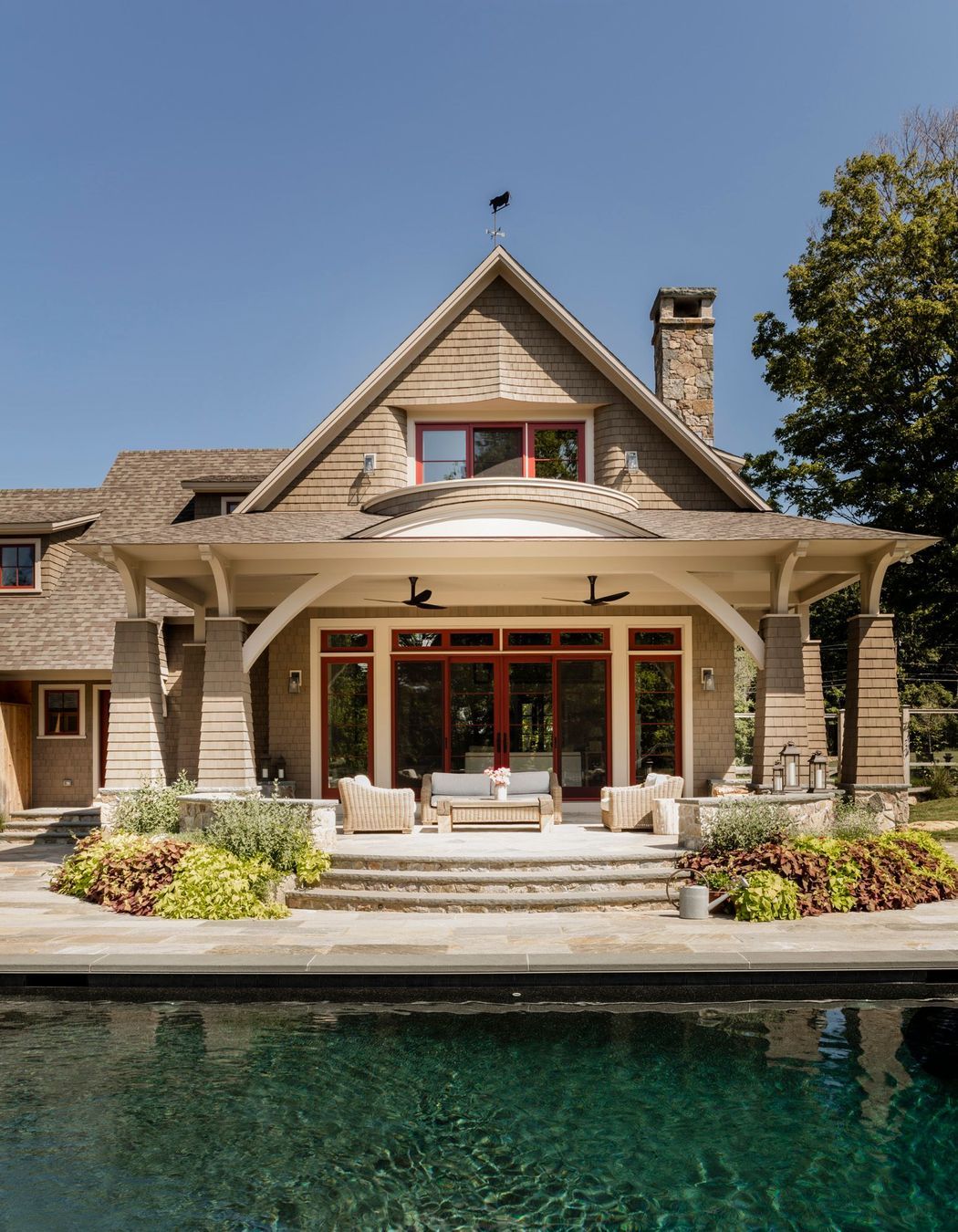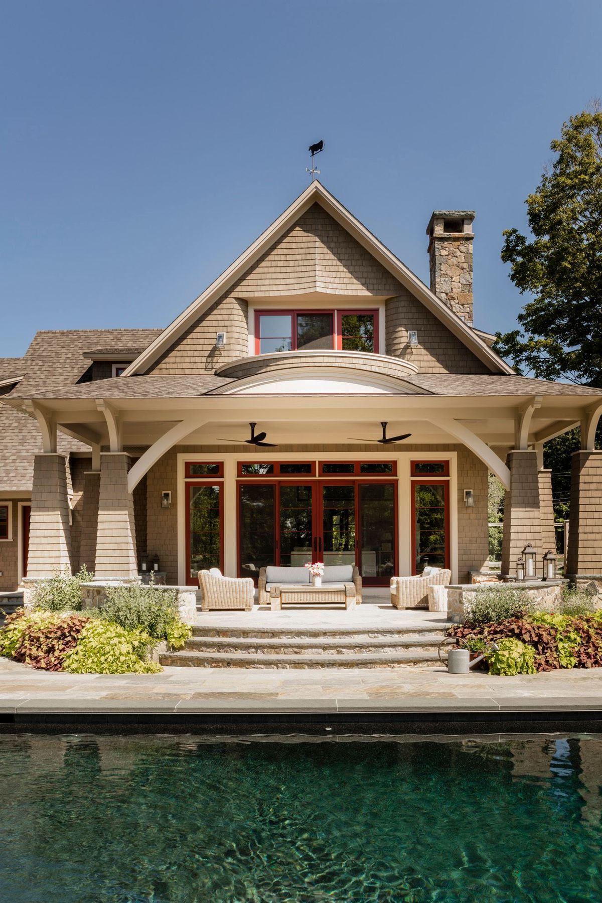 ArchiPro Project Summary - Thoughtfully restored 1890's stone and shingle carriage house featuring a new kitchen, custom built-ins, and a major rear addition, blending luxurious materials with historical architecture in a serene landscape designed by Frederick Law Olmsted.