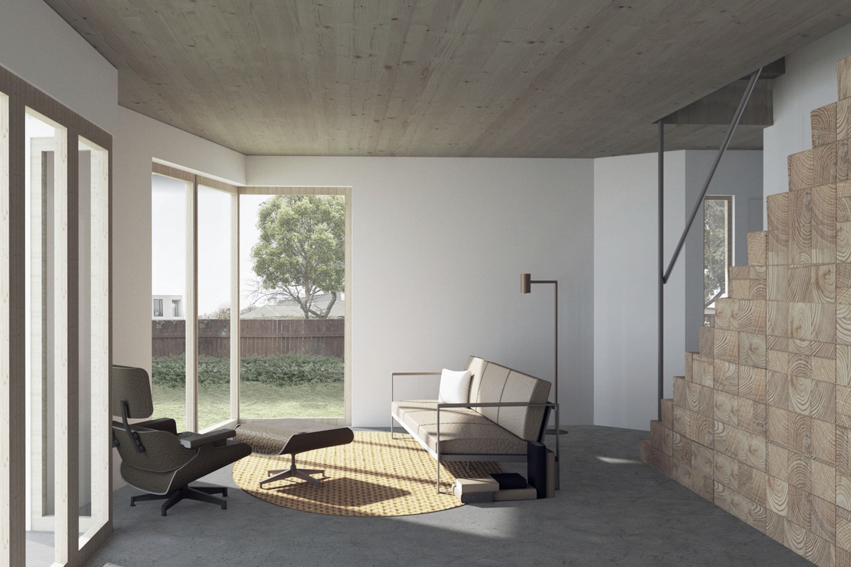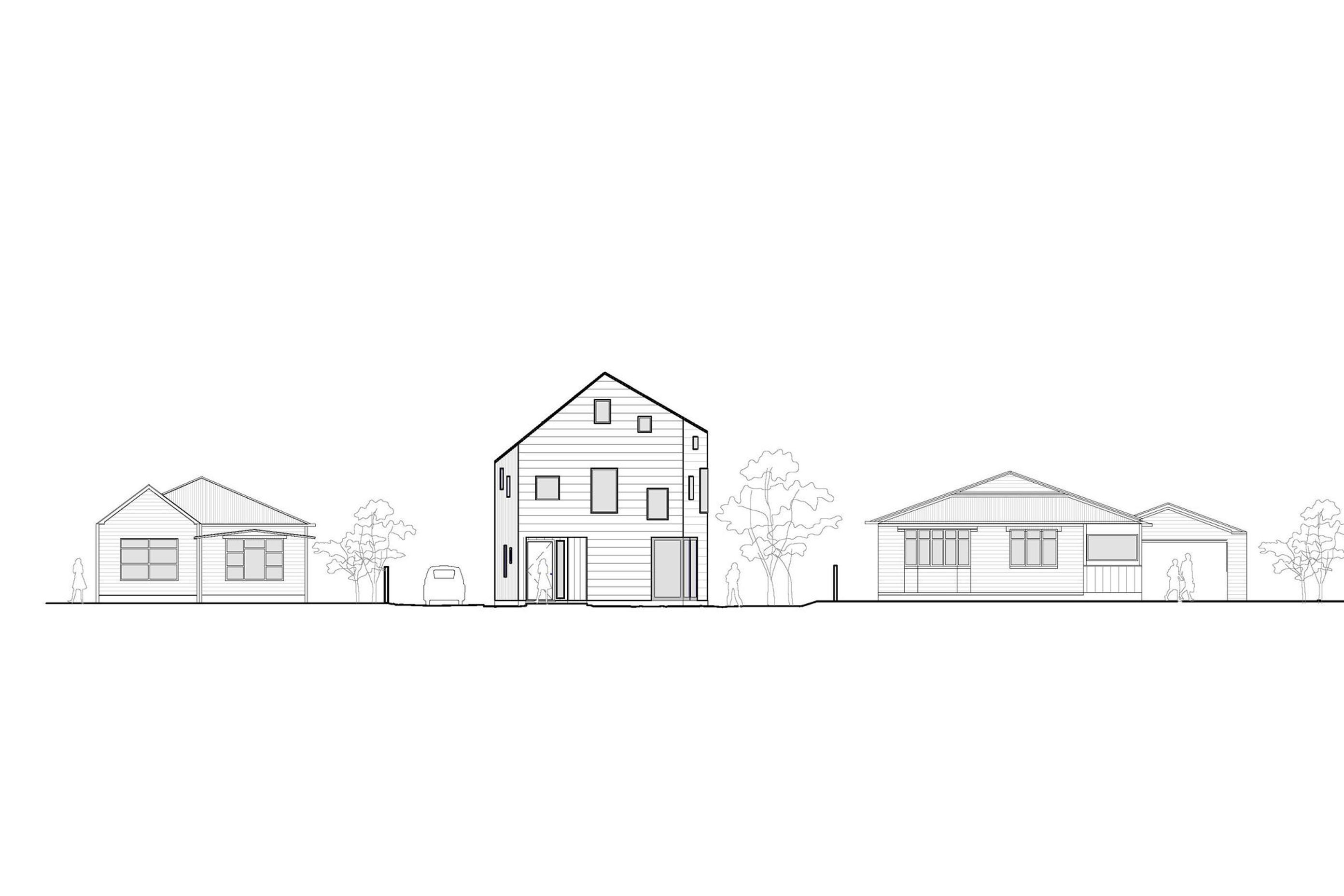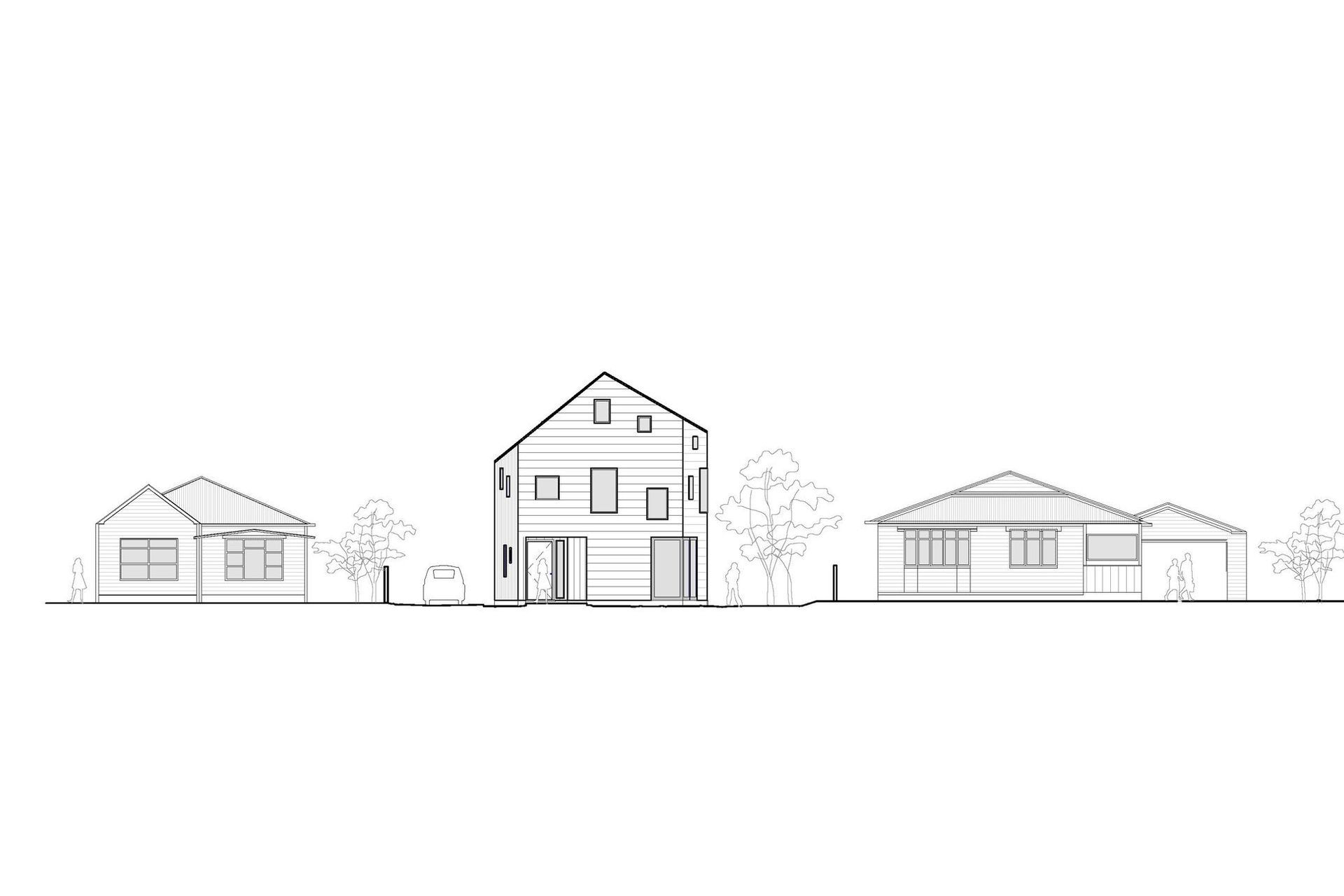 ArchiPro Project Summary - Twin Peaks: A sustainable semi-detached infill project in Christchurch, featuring a three-floor design that harmonizes with local gable craftsman cottages, utilizing CLT panelized prefabrication and Adodo timber cladding.