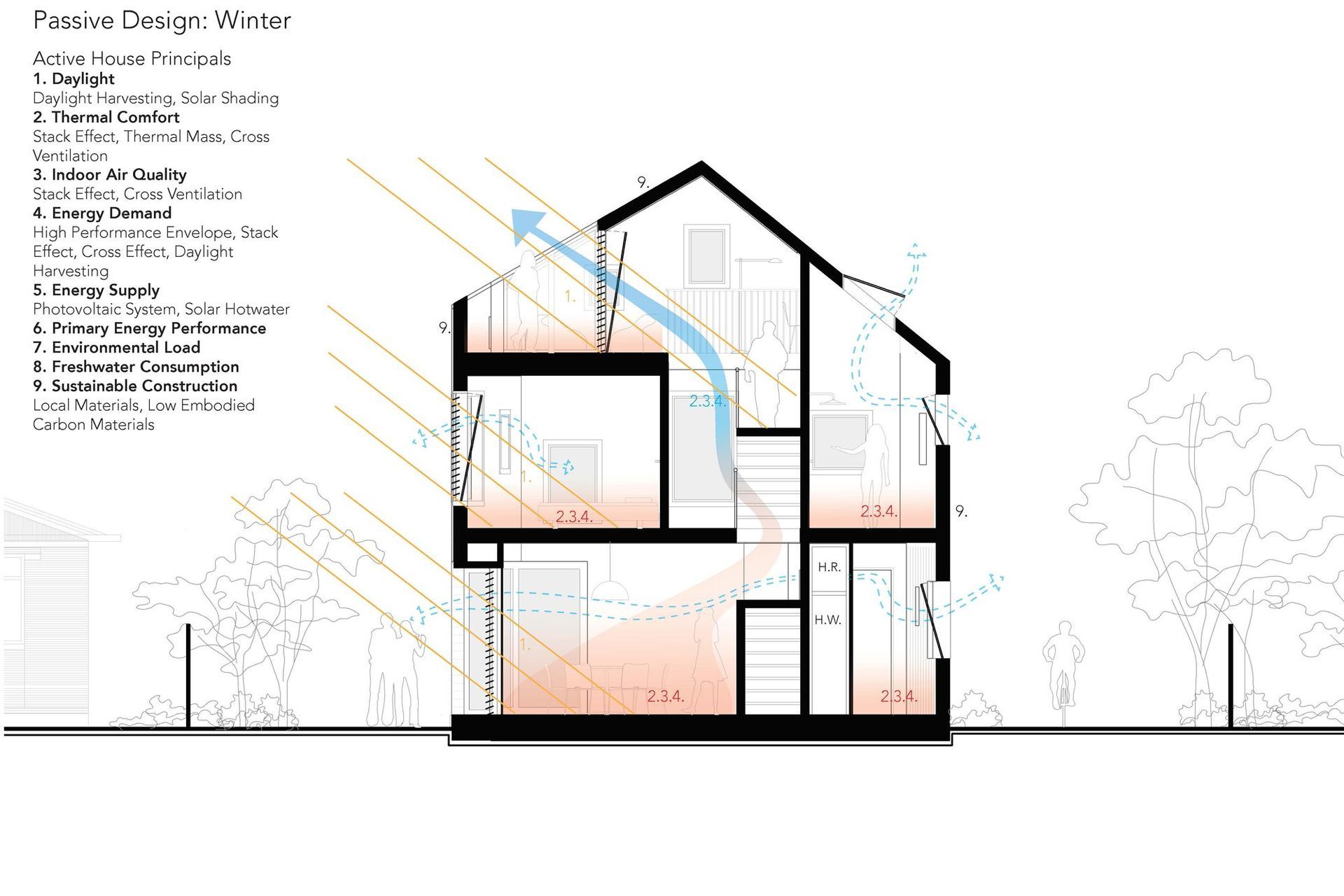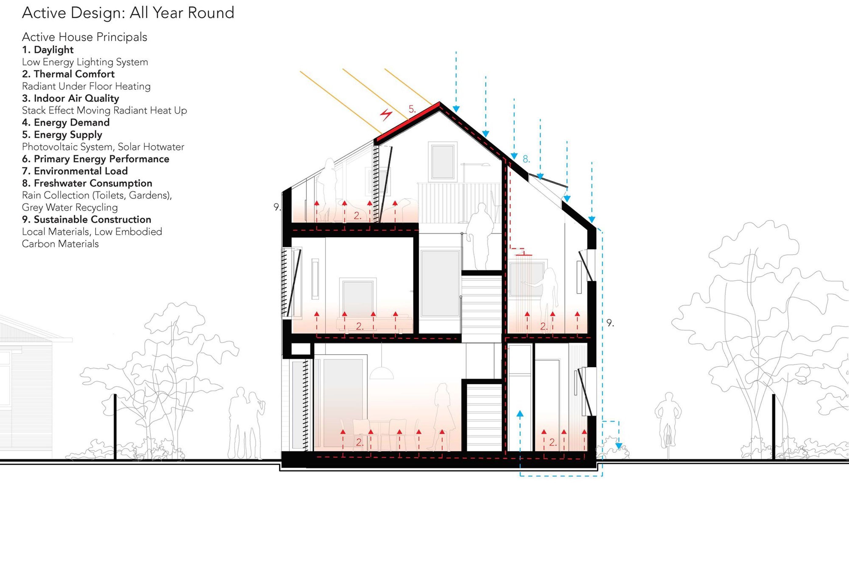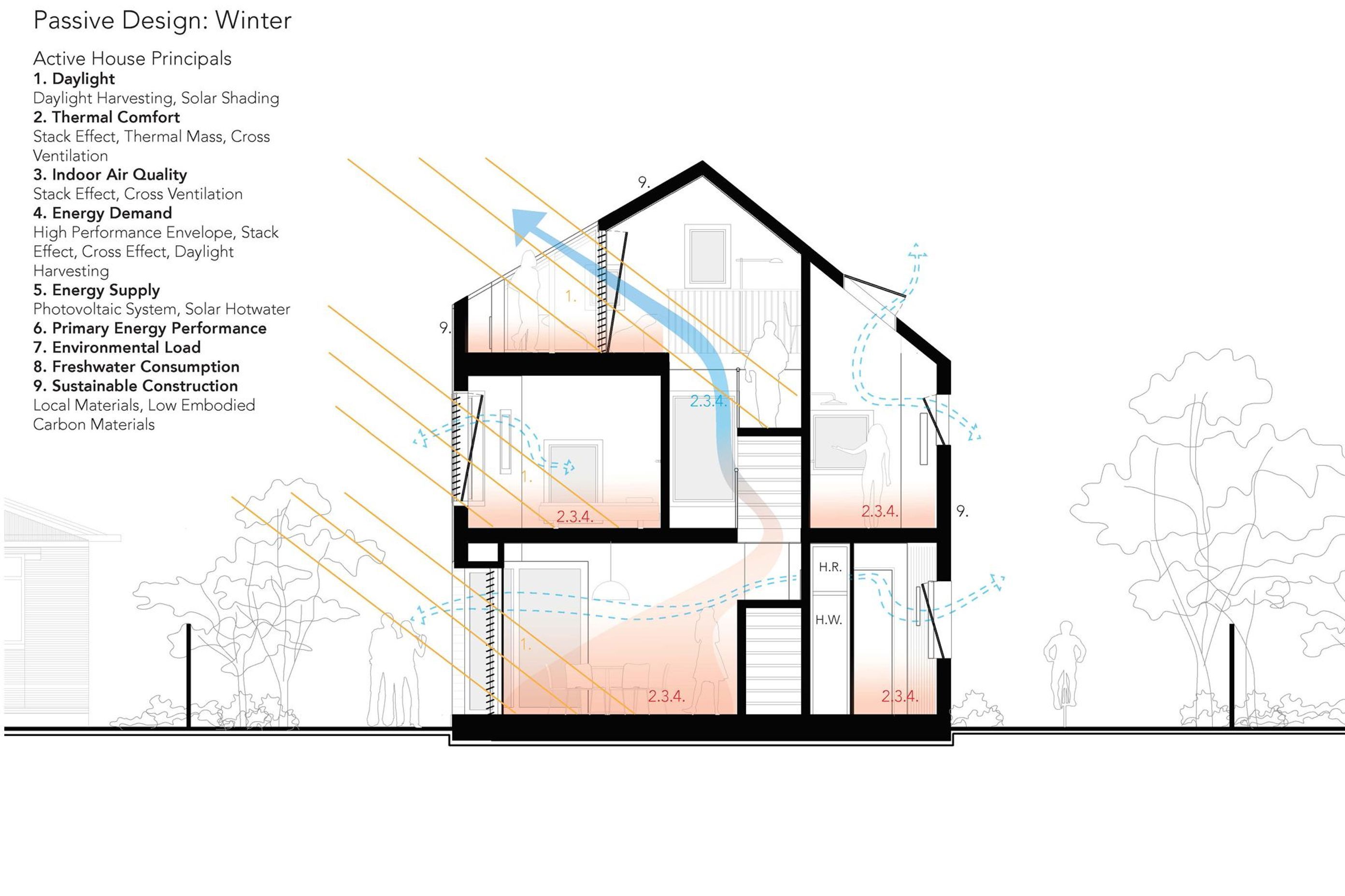 ArchiPro Project Summary - Twin Peaks: A sustainable semi-detached infill project in Christchurch, featuring a three-floor design that harmonizes with local gable craftsman cottages, utilizing CLT panelized prefabrication and Adodo timber cladding.