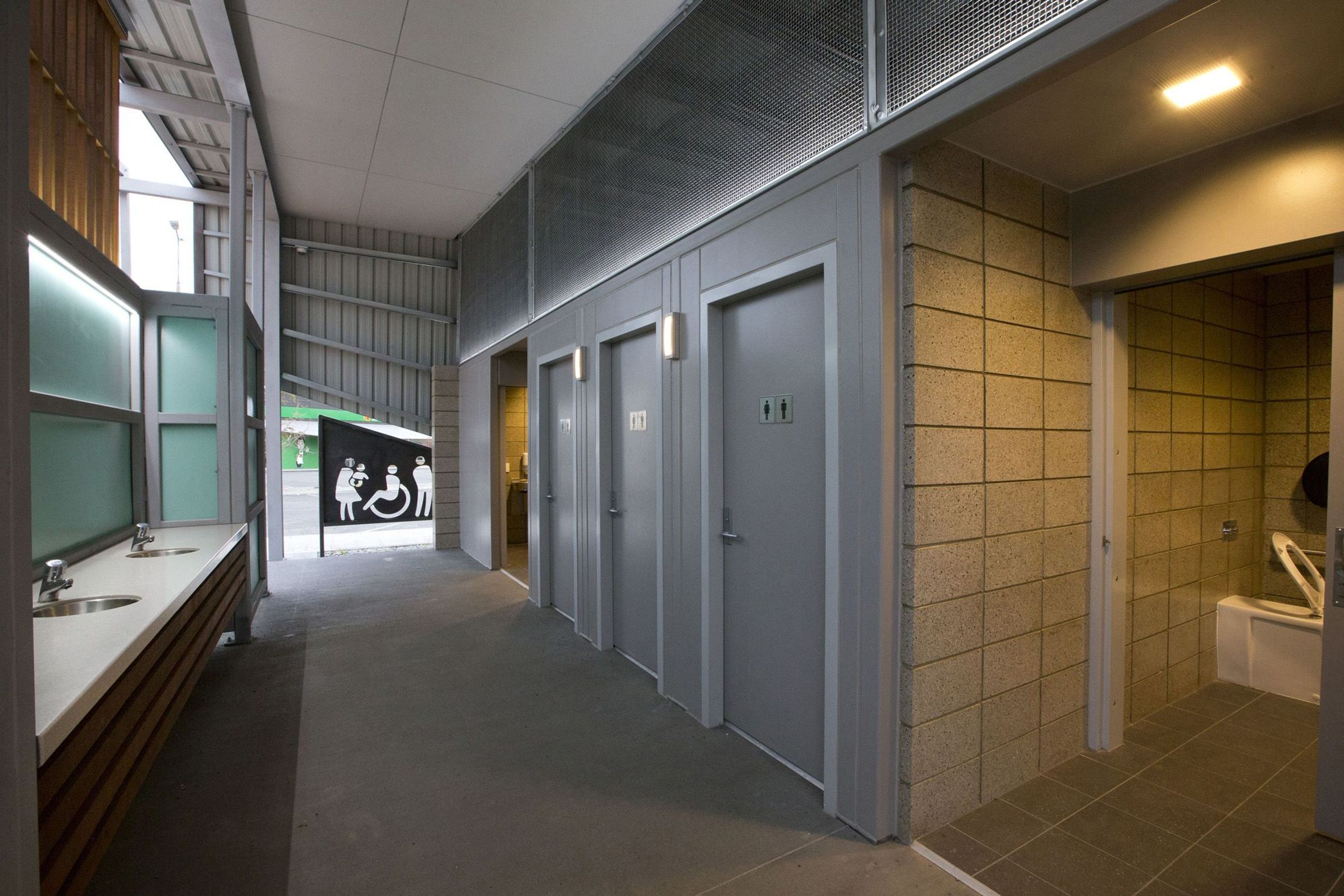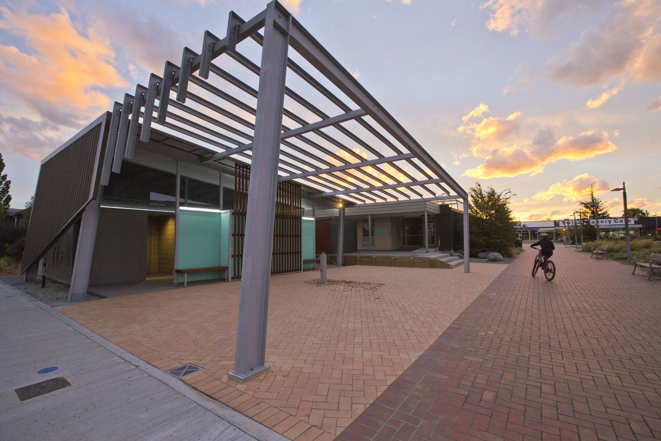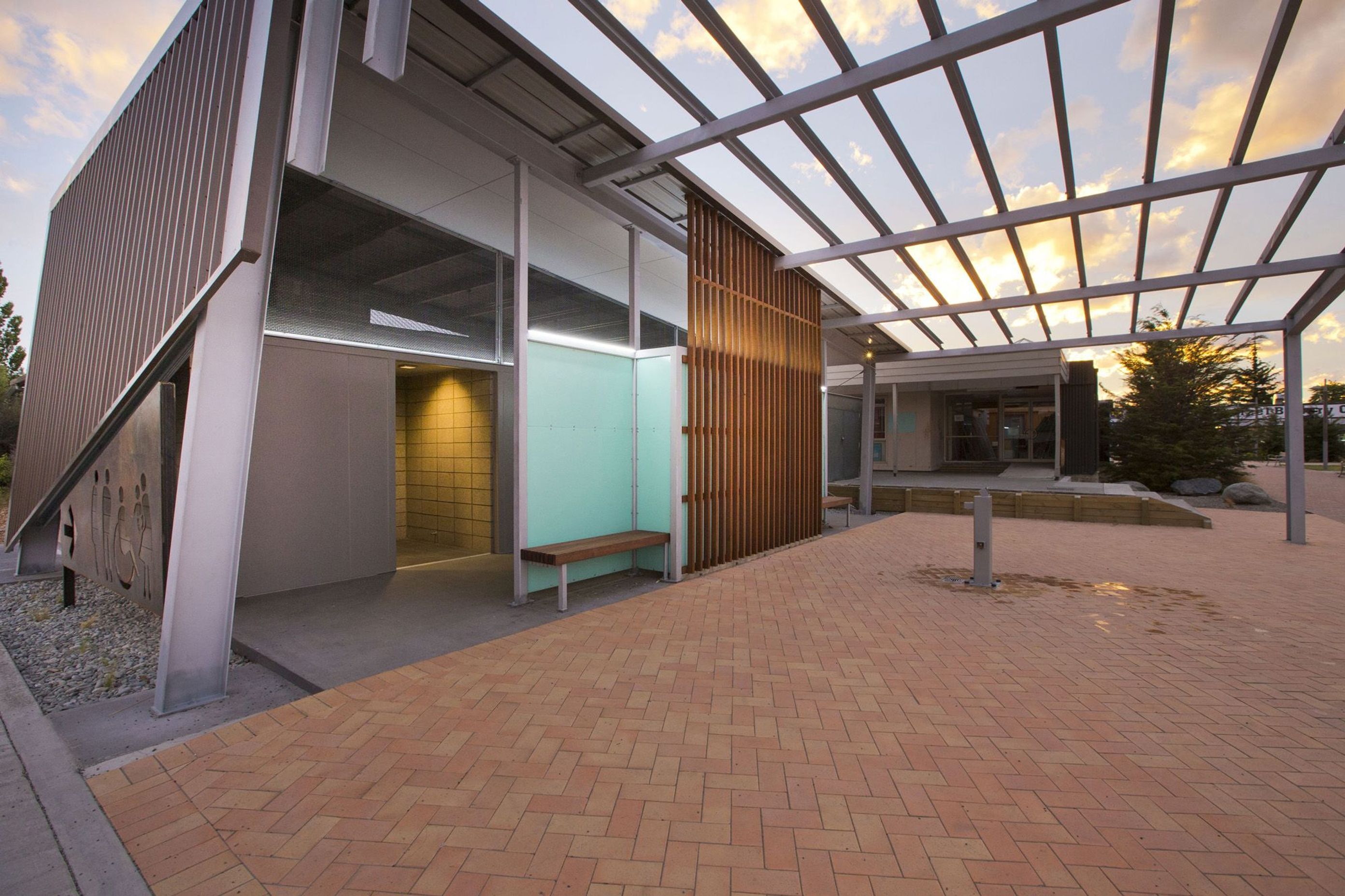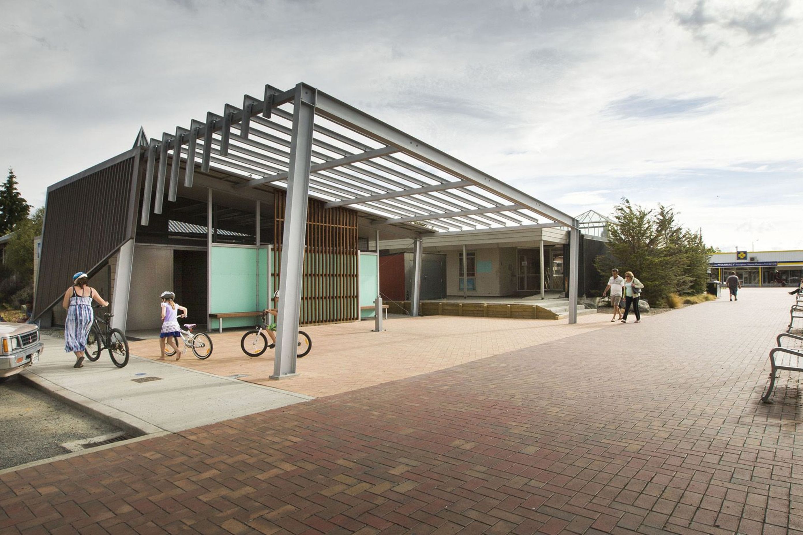 ArchiPro Project Summary - Twizel Public Toilets: A functional public facility in Mackenzie Country, featuring durable materials and a design inspired by 1960s hydro schemes, complemented by outdoor spaces under a steel-framed pergola.