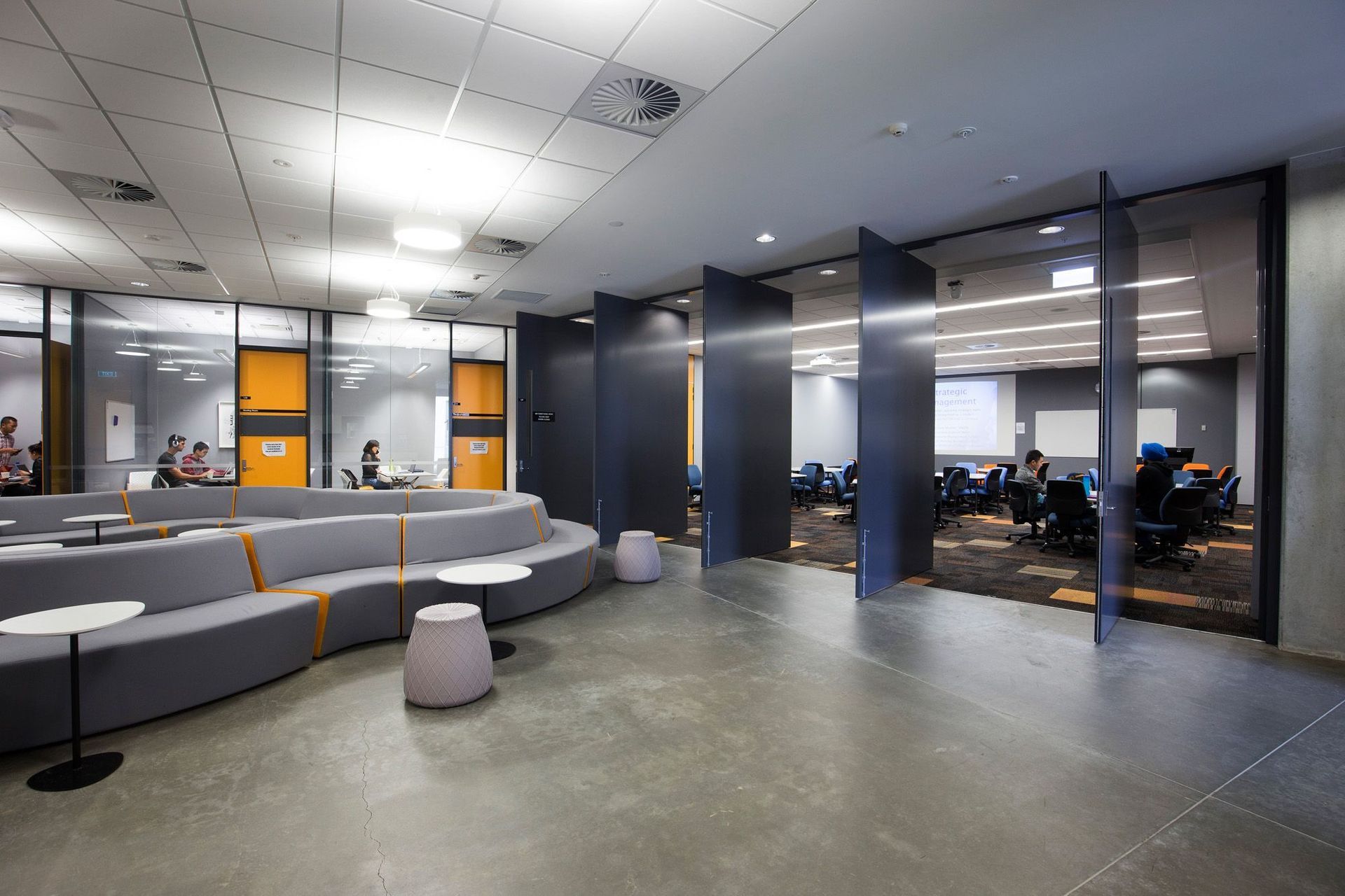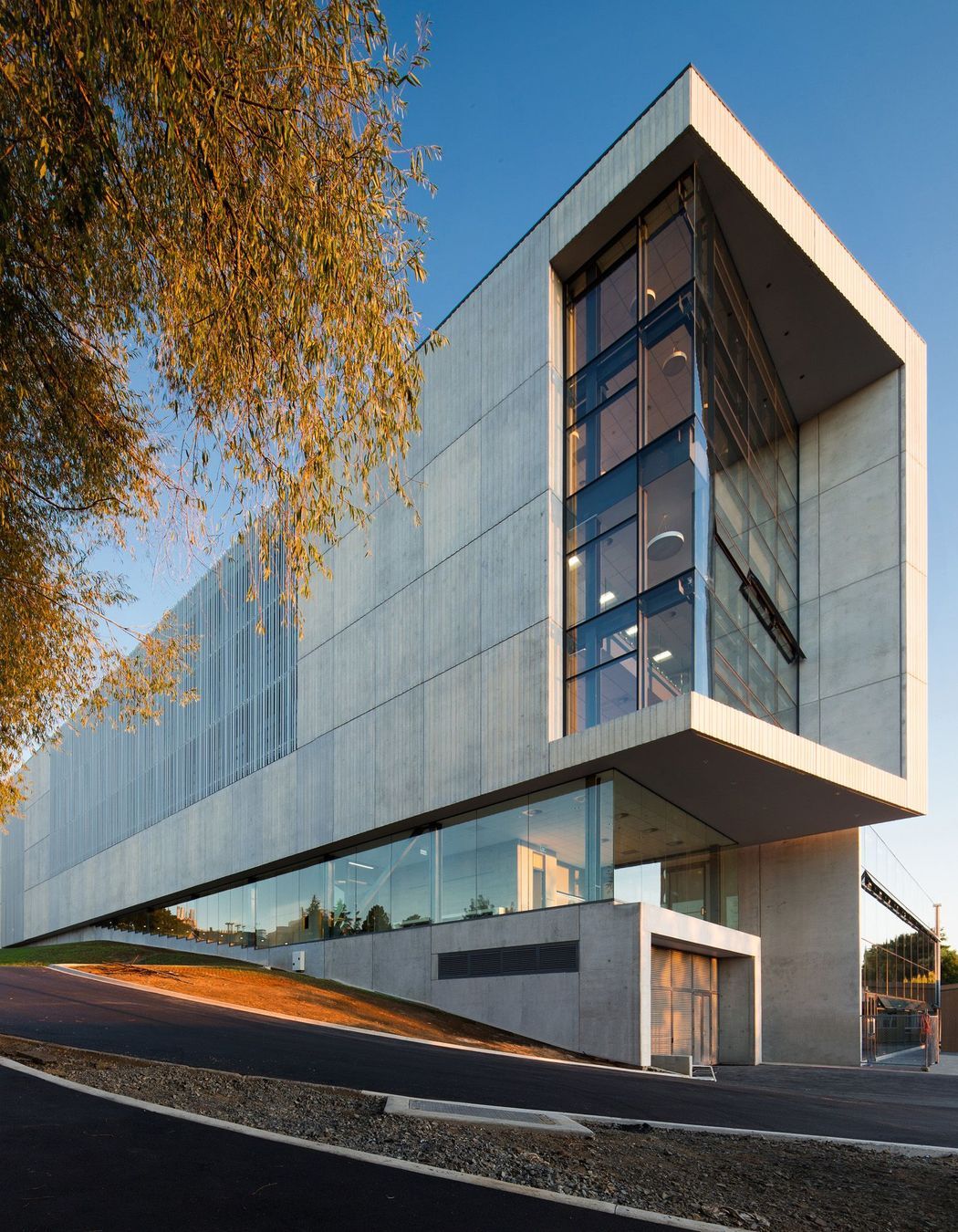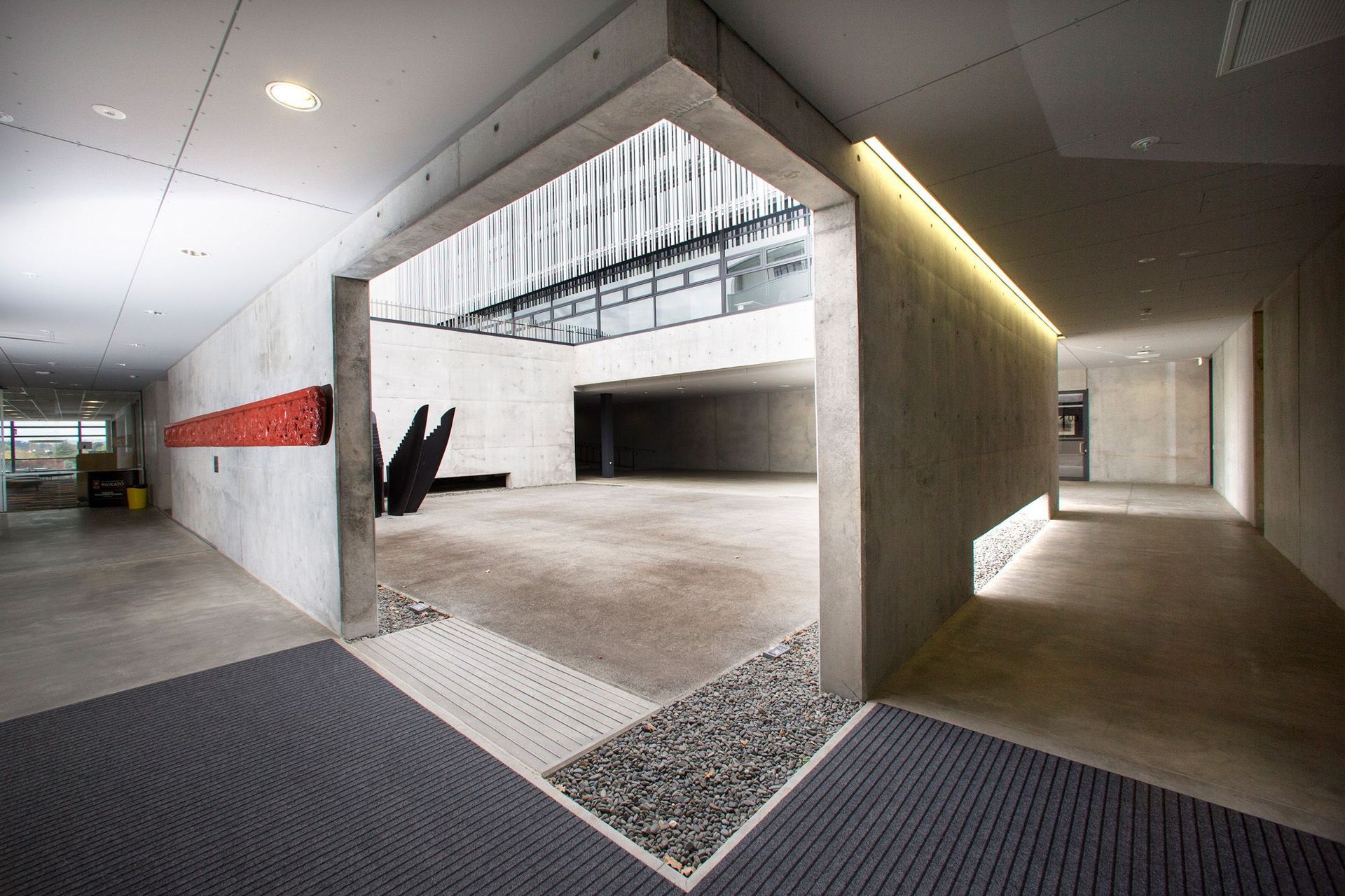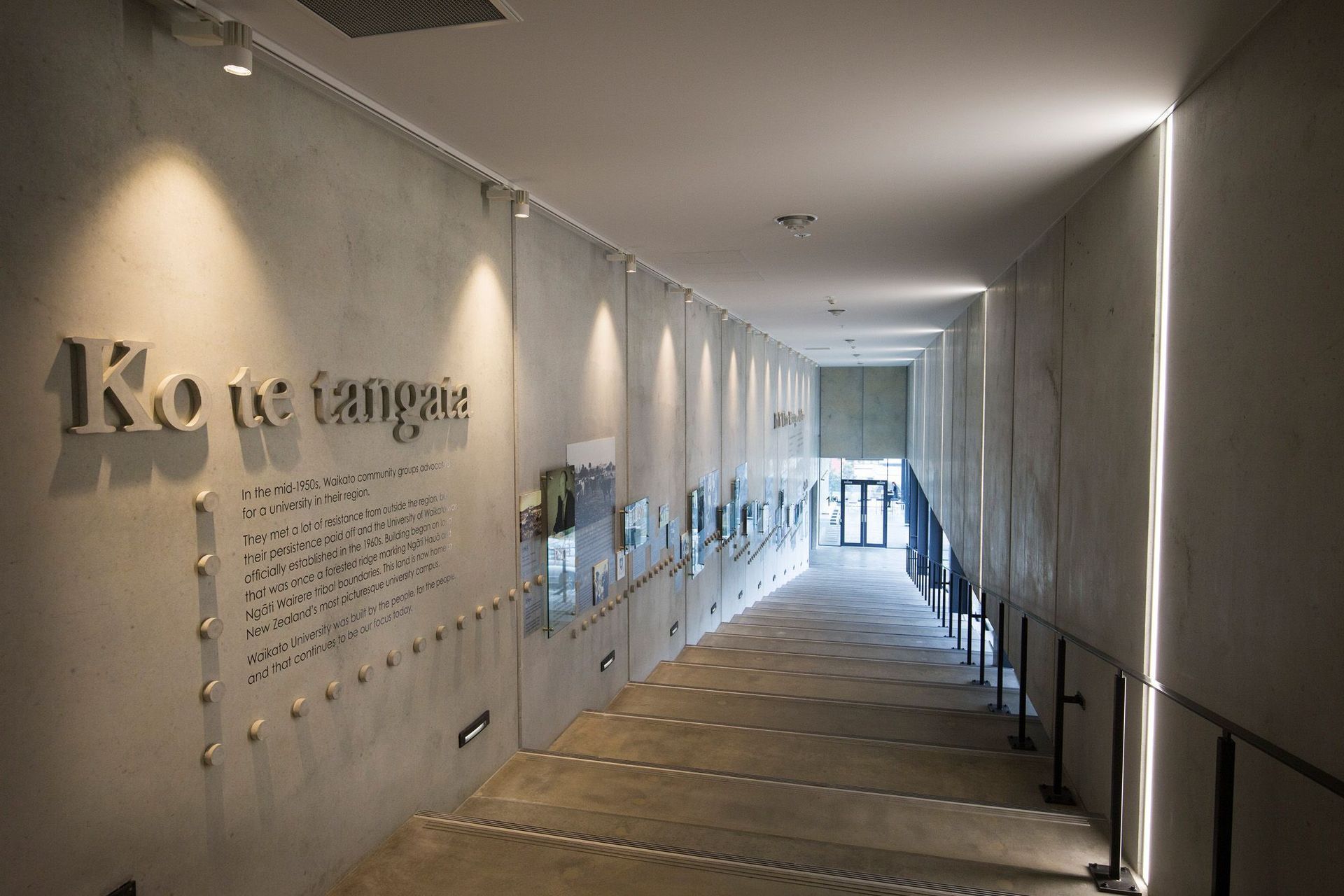 ArchiPro Project Summary - A modern law faculty at the University of Waikato, featuring a striking office tower with natural ventilation, flexible teaching spaces, and a ceremonial staircase that reflects the university's history, all while embracing local cultural identity.