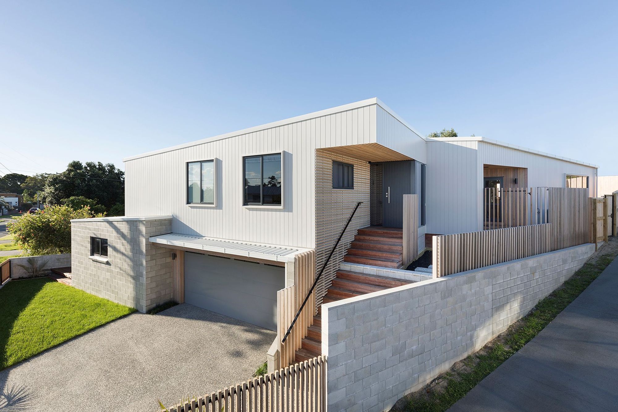 ArchiPro Project Summary - A split-level family home in Mt Maunganui, expertly designed to harmonize with its sloping site, enhancing indoor-outdoor flow and maximizing functionality.