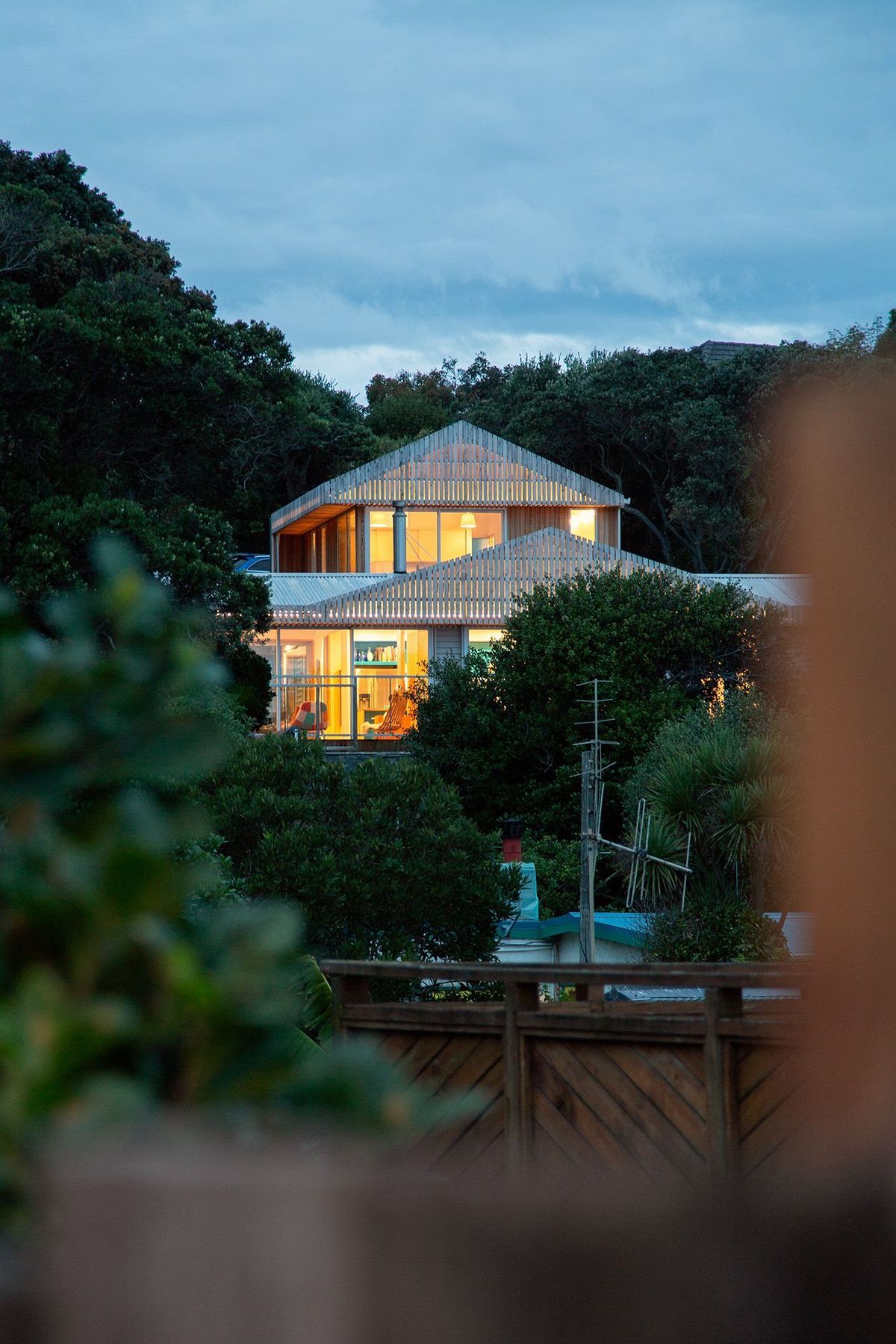 ArchiPro Project Summary - A multi-generational home in Raumati Beach, blending modern living with the historical essence of a 1940s bach, featuring communal spaces, sustainable materials, and stunning sea views.