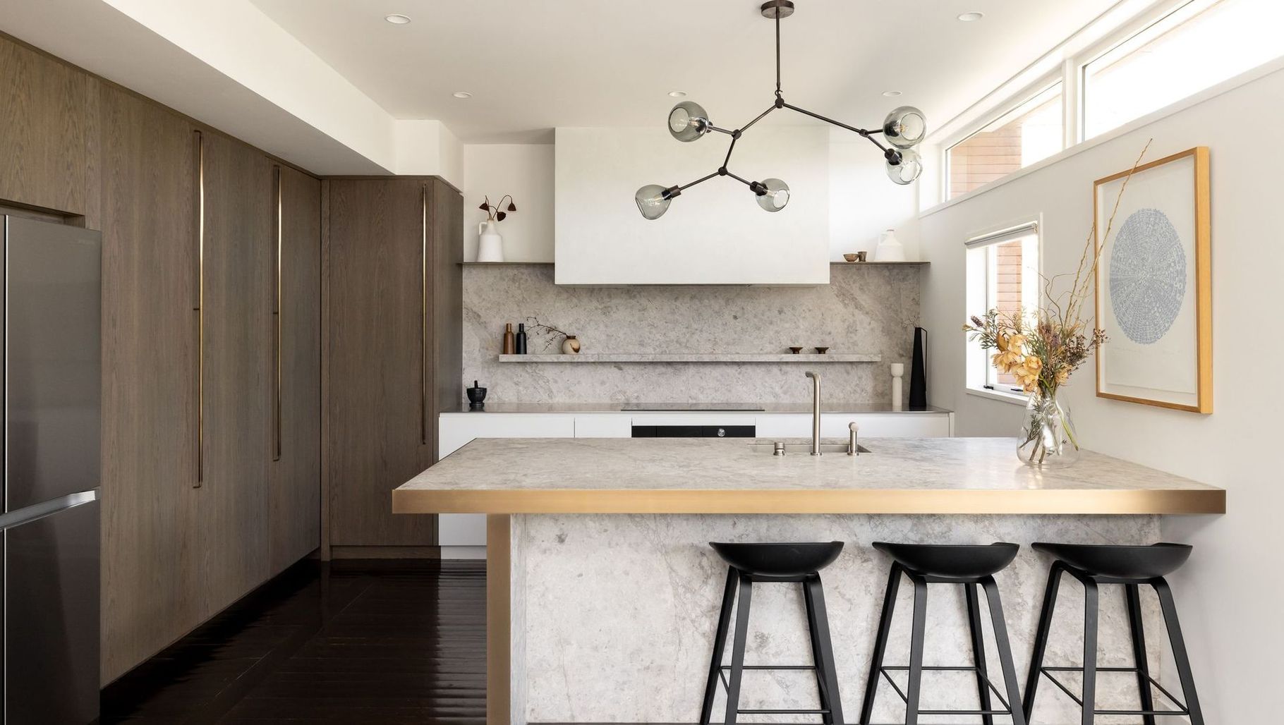ArchiPro Project Summary - Varese: A luxurious interior featuring Varese Stone, soft oak furnishings, and elegant brass accents, designed by Spatial Studio in 2022, creating a harmonious and inviting atmosphere throughout the space.