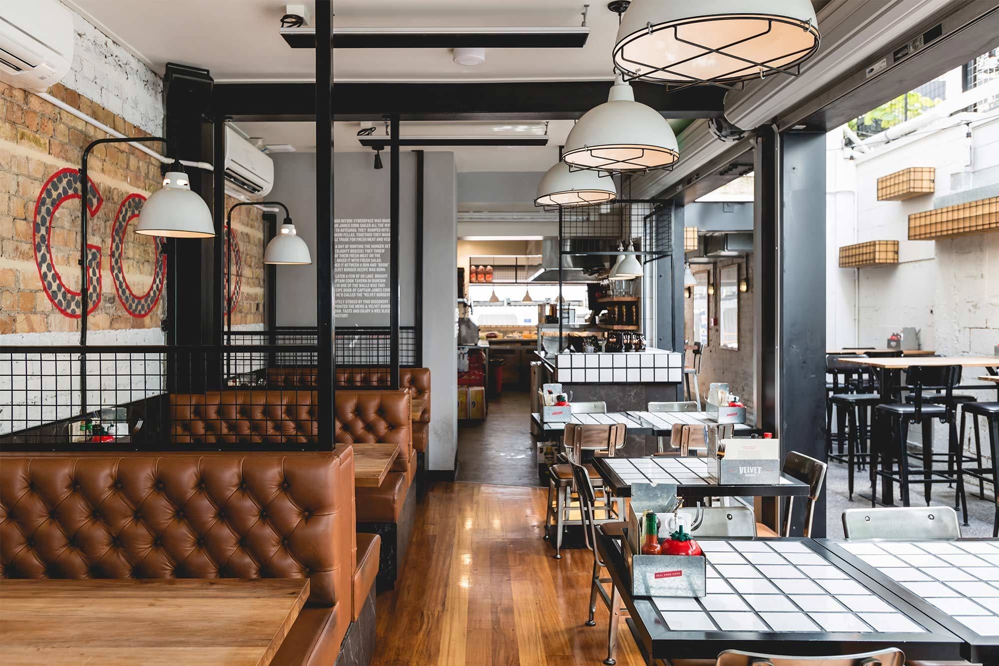 ArchiPro Project Summary - Velvet Burger: A 105m2 dining space located on Federal Lane, Auckland, designed for Cook Brothers Bars.