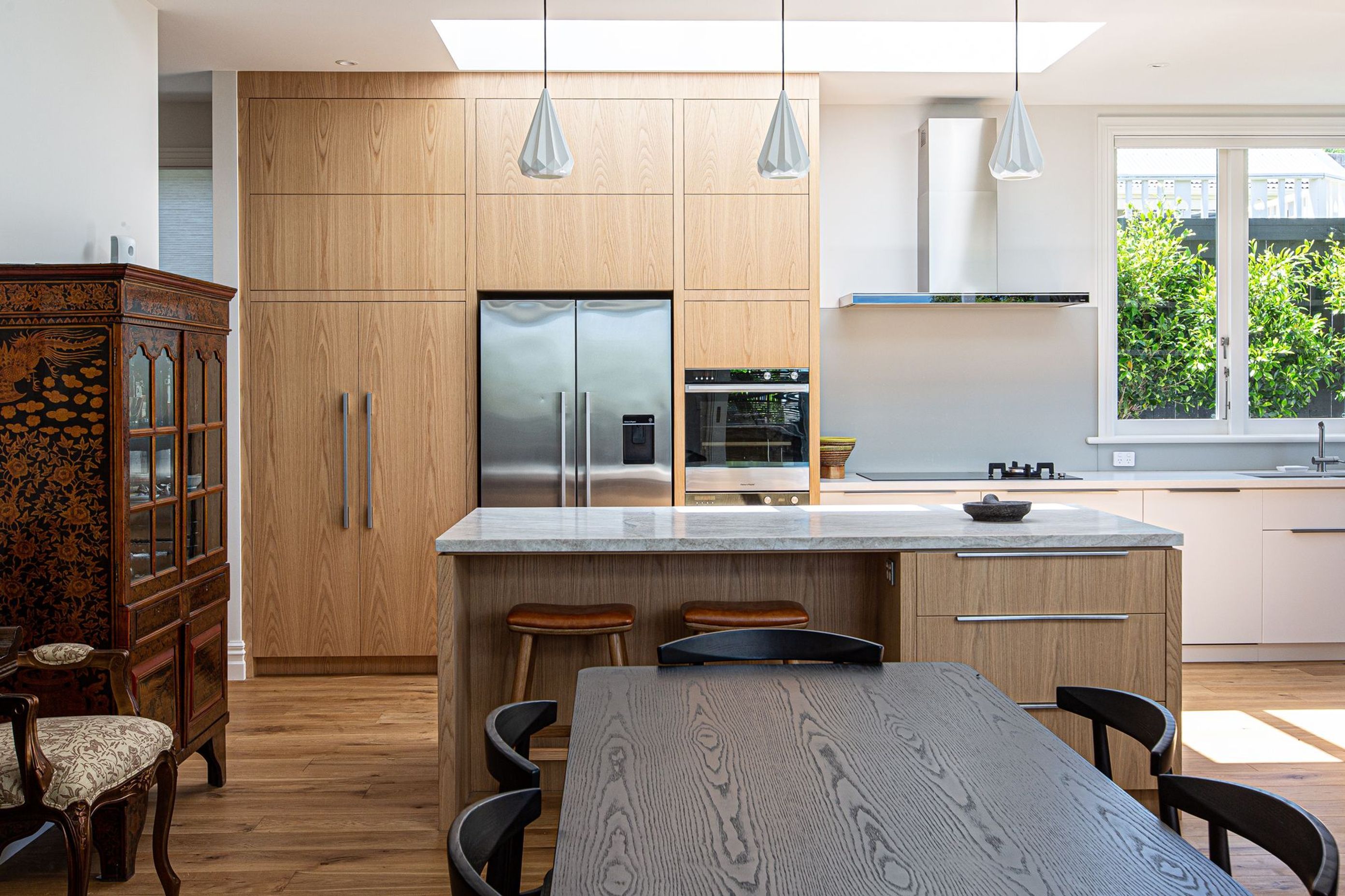 ArchiPro Project Summary - A beautifully renovated villa kitchen designed through collaboration between Scarlet Architects and Kitchen Link, featuring ample storage, dedicated baking space, and custom cabinetry for laundry, bathrooms, and office areas.