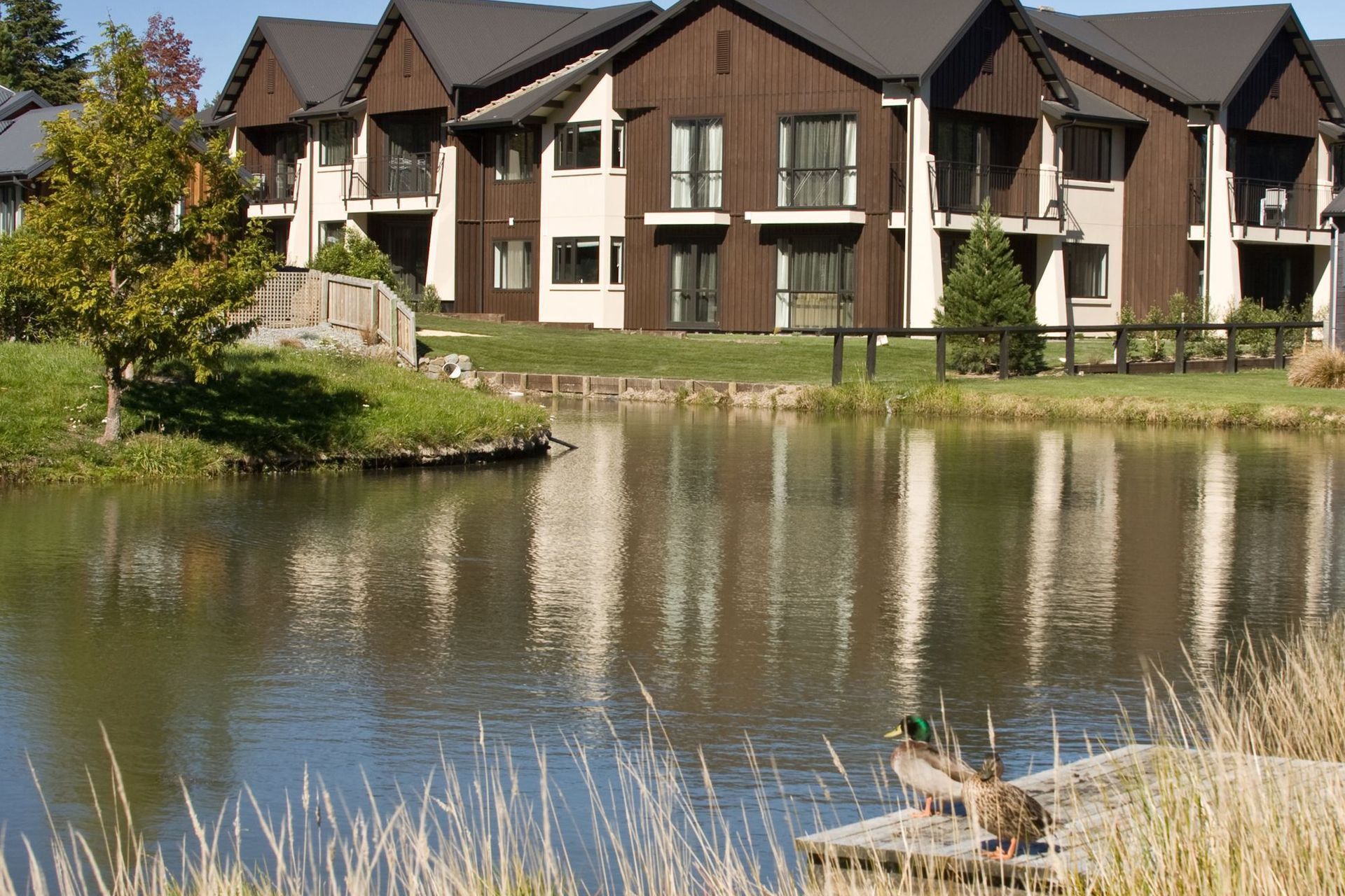 ArchiPro Project Summary - Village Lake features 13 luxury, 5-star individually owned apartments in Hanmer Springs, complemented by on-site manager’s accommodation, showcasing excellence in architecture, interior design, and landscape design.