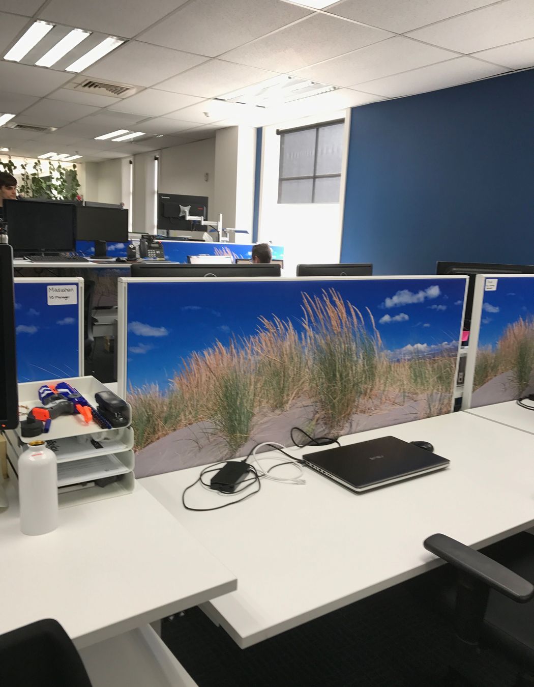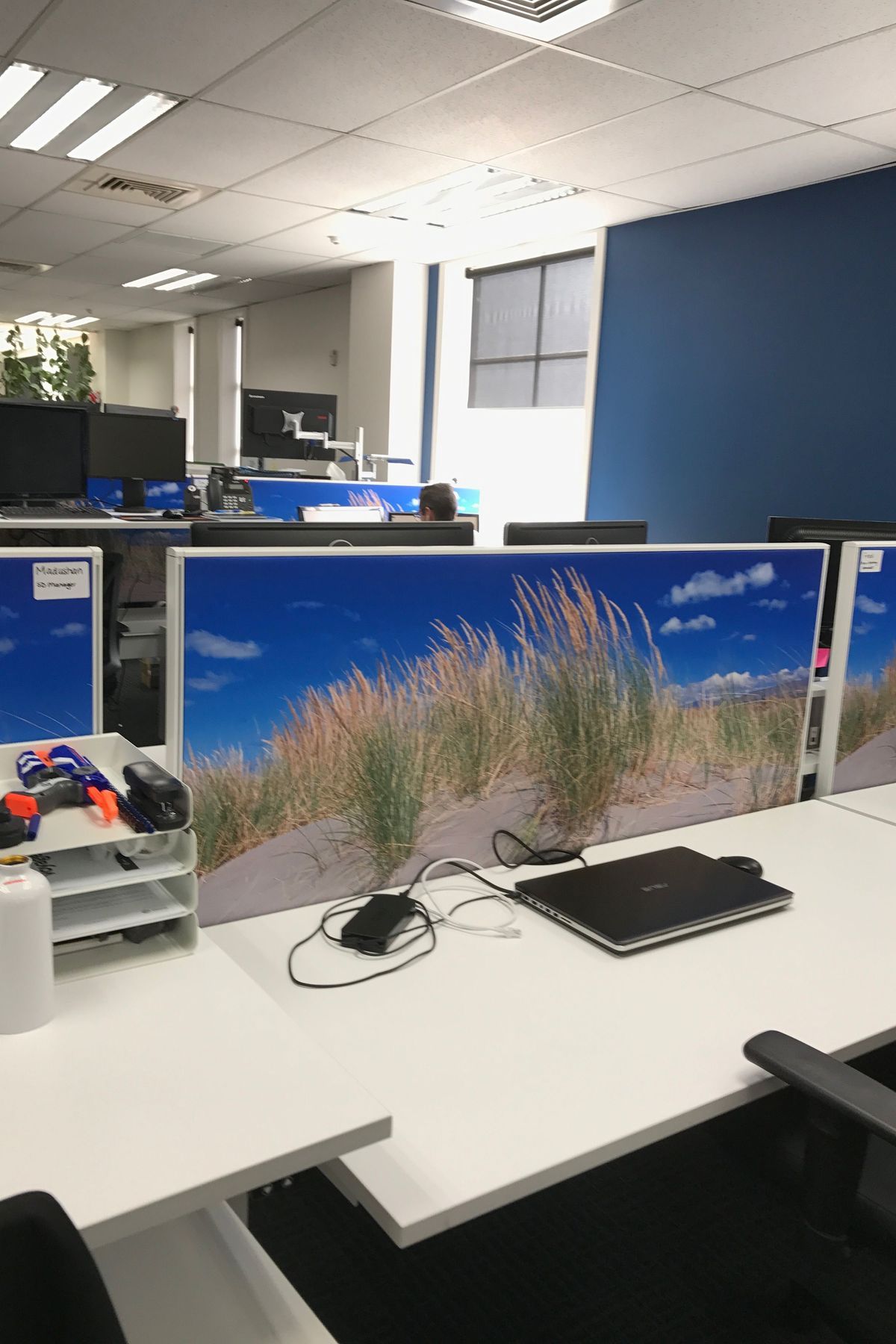 ArchiPro Project Summary - Voyager's dynamic office transformation enhances work culture with innovative spaces, including meeting rooms, a mini putt green, and wellness-focused sit-stand desks, fostering productivity and relaxation for a thriving team.