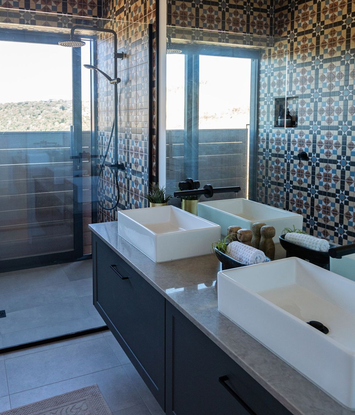 SUEDE + STONE style is contemporary with a splash of luxury, using quality materials and innovative solutions to deliver a home her clients will love and enjoy.