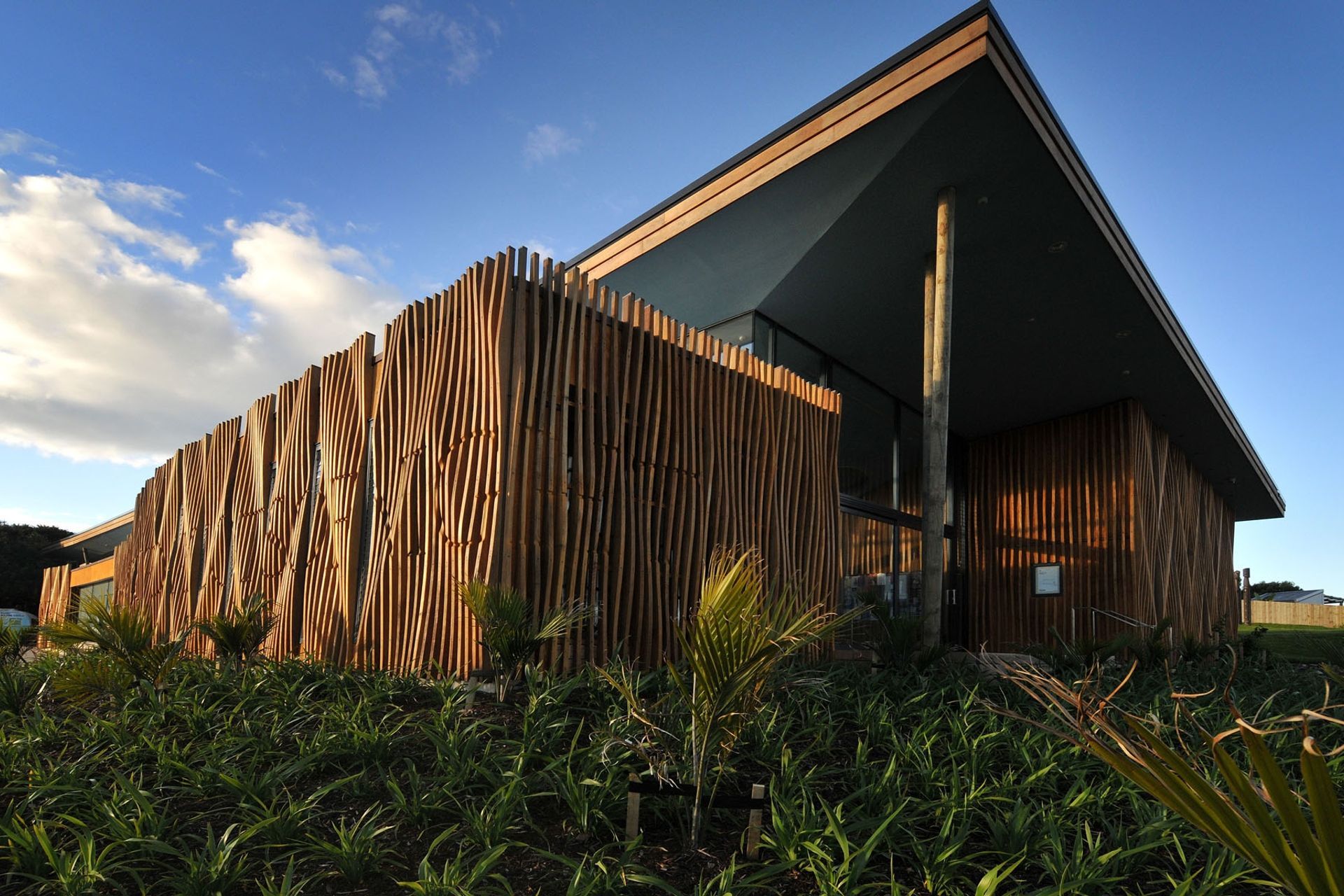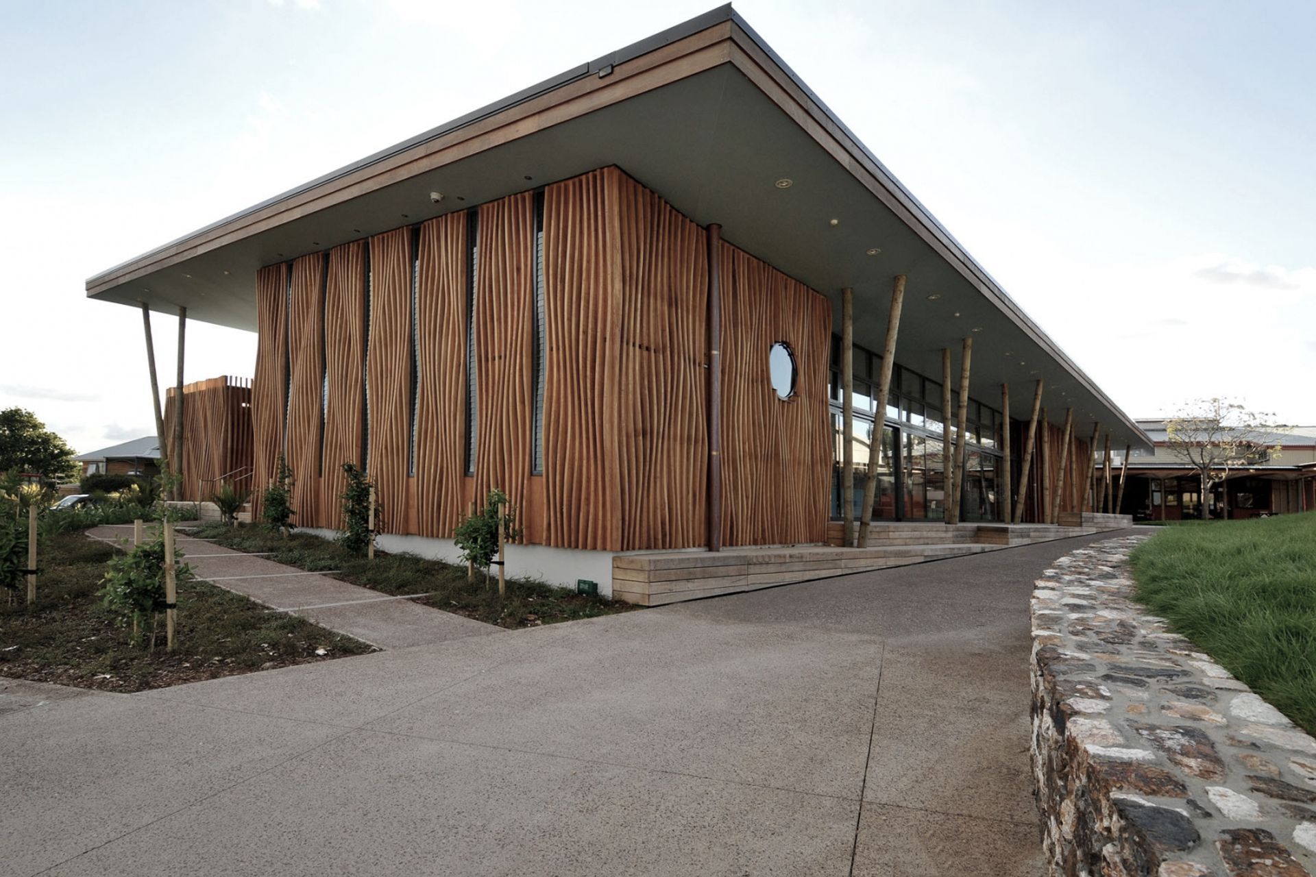 ArchiPro Project Summary - A landmark library on Waiheke Island featuring a state-of-the-art facility and an innovative outdoor courtyard designed for events, showcasing intricate details and overcoming unique challenges in construction.