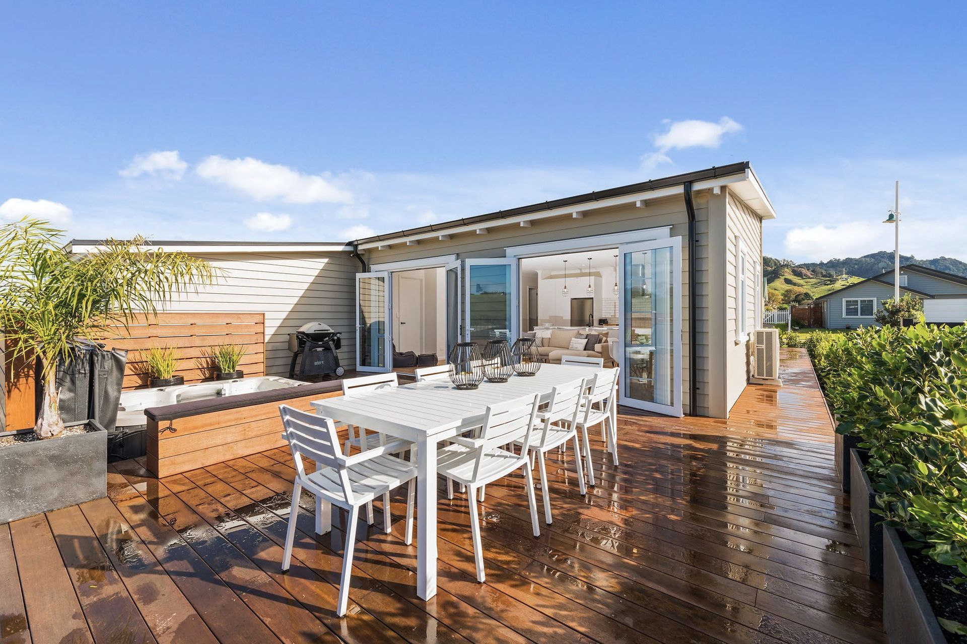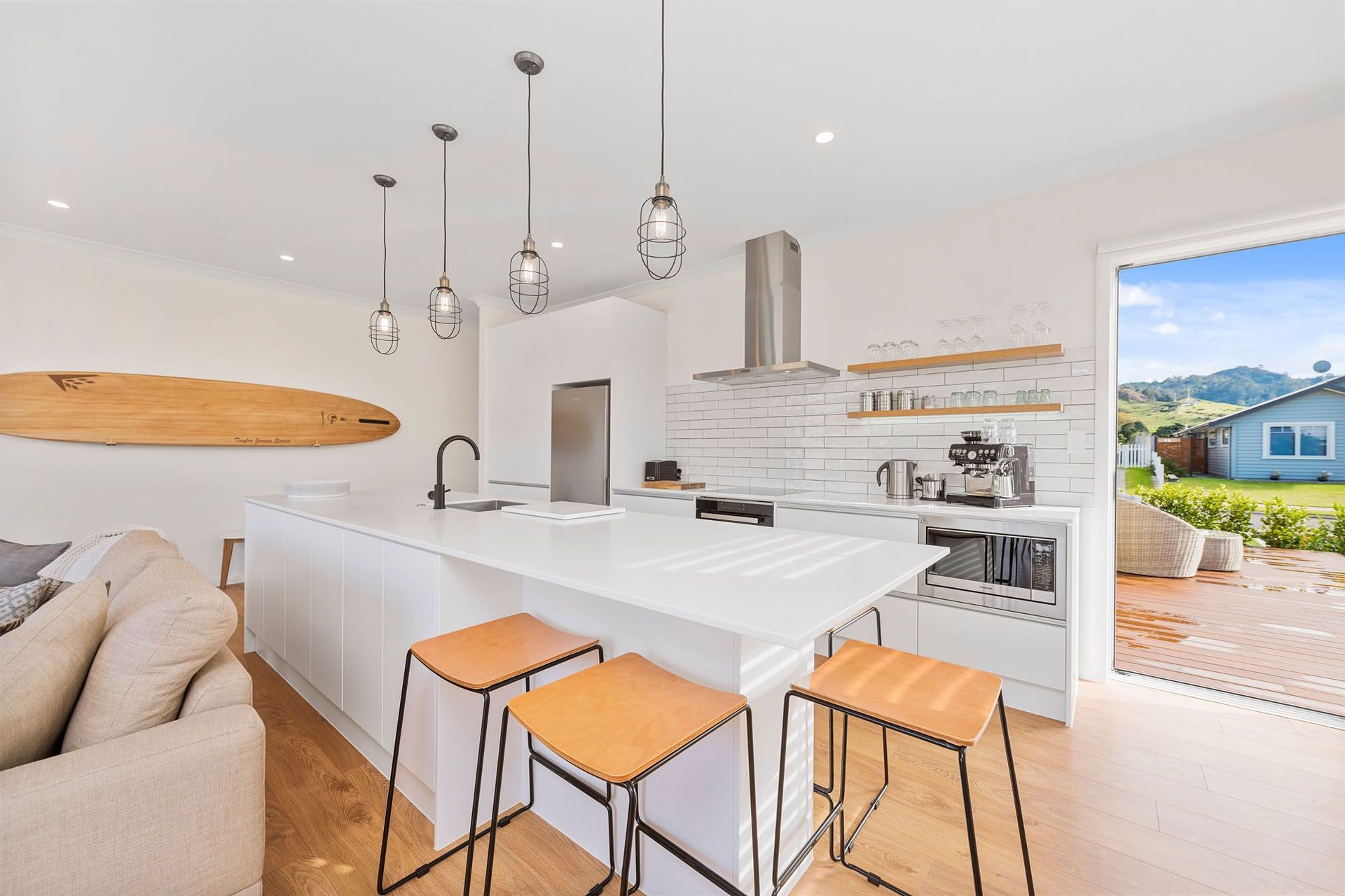 ArchiPro Project Summary - A contemporary family Bach inspired by Victorian mining cottages, featuring seamless indoor-outdoor living, a thoughtfully designed kitchen, and a master suite, all while embracing the relaxed beach lifestyle at Waihi Beach.