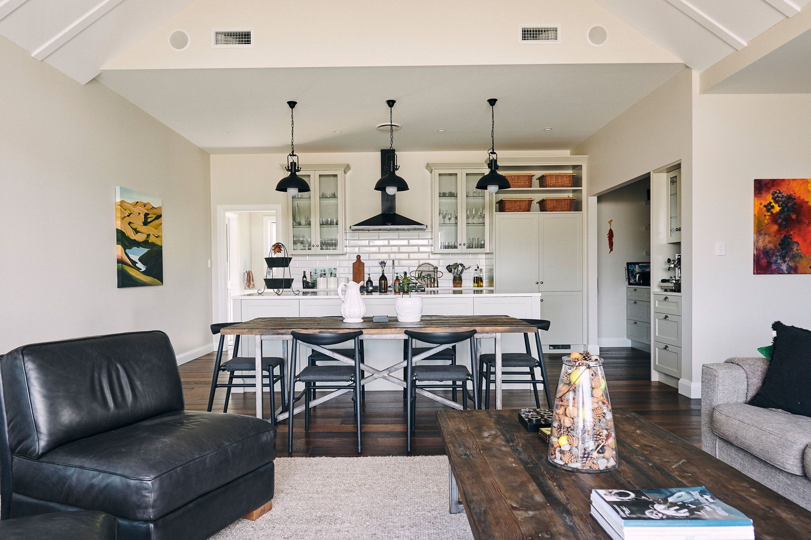 ArchiPro Project Summary - Elegant four-bedroom family home overlooking the Tuki River, featuring high-quality black weatherboard construction and meticulous craftsmanship by Havelock North Construction.