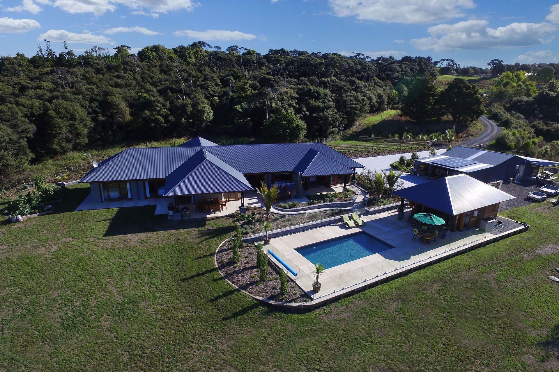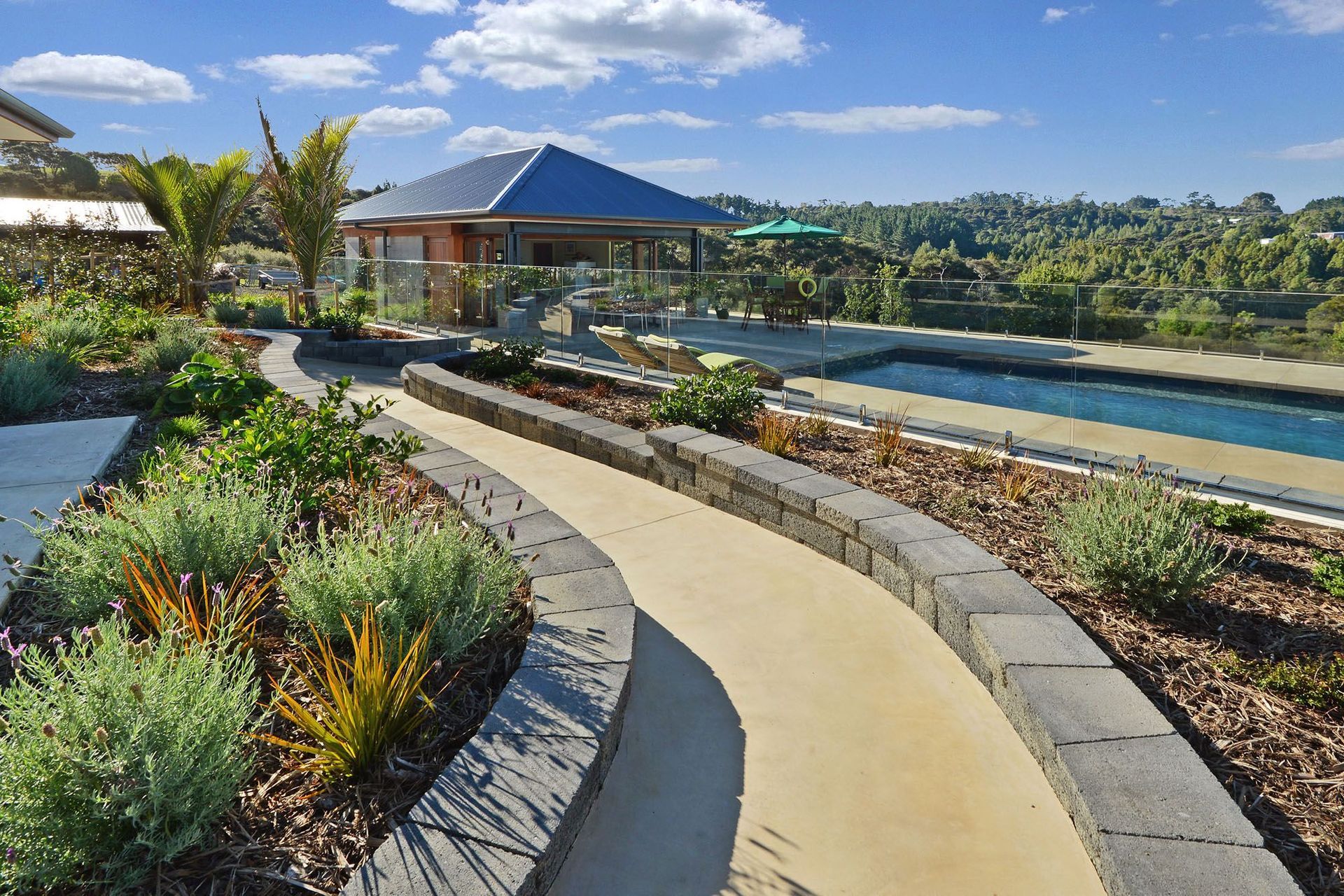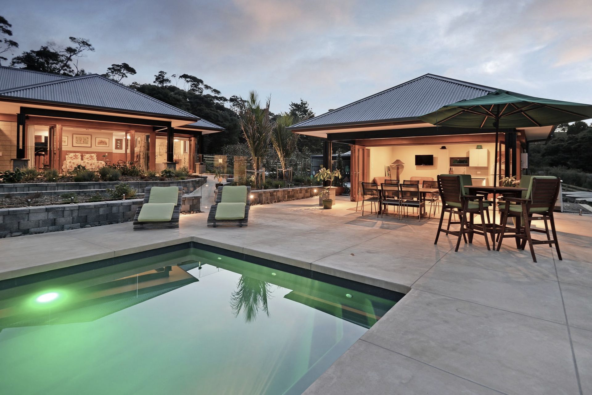 ArchiPro Project Summary - Architecturally designed new build in rural Waimauku featuring polished blocks and solid cedar joinery, delivering a high level of craftsmanship and precision.