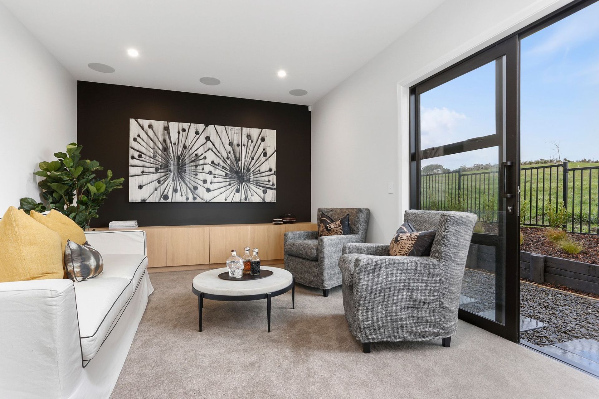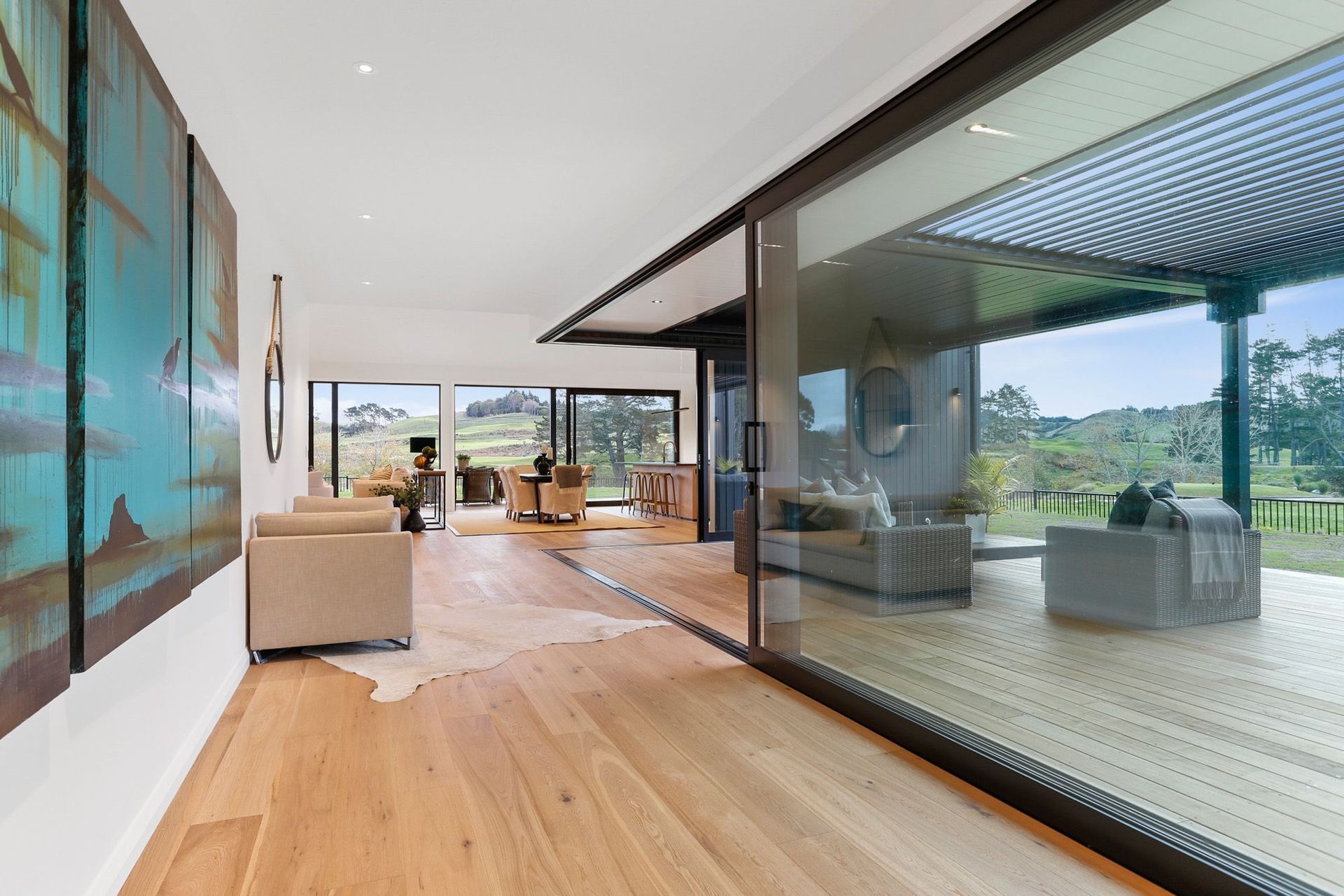 ArchiPro Project Summary - Wainui: A luxurious 4-bedroom cedar home in a gated community, seamlessly blending contemporary living with architectural elegance, featuring expansive indoor-outdoor spaces, a concealed butler's pantry, and a dedicated gallery for fine art.