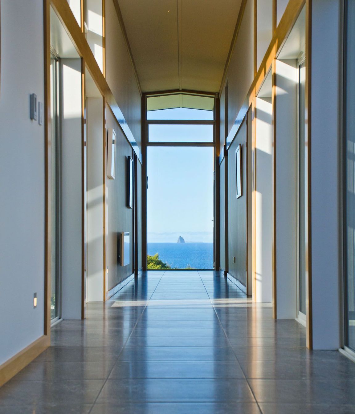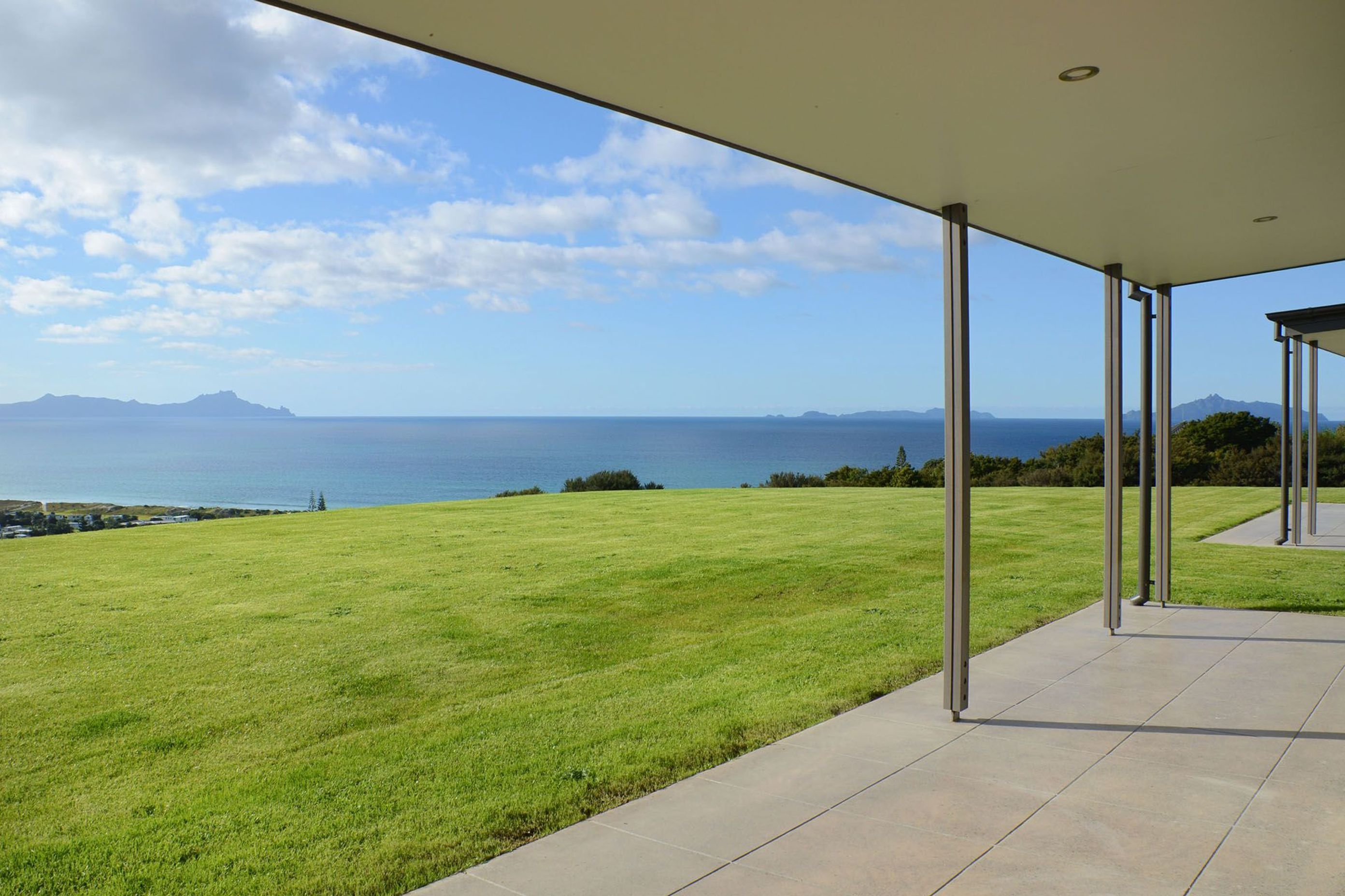 ArchiPro Project Summary - A light-filled residence in Waipu Cove featuring a central glazed gallery, expansive living spaces, and seamless indoor-outdoor flow, designed for comfort and entertaining with stunning views and modern amenities.