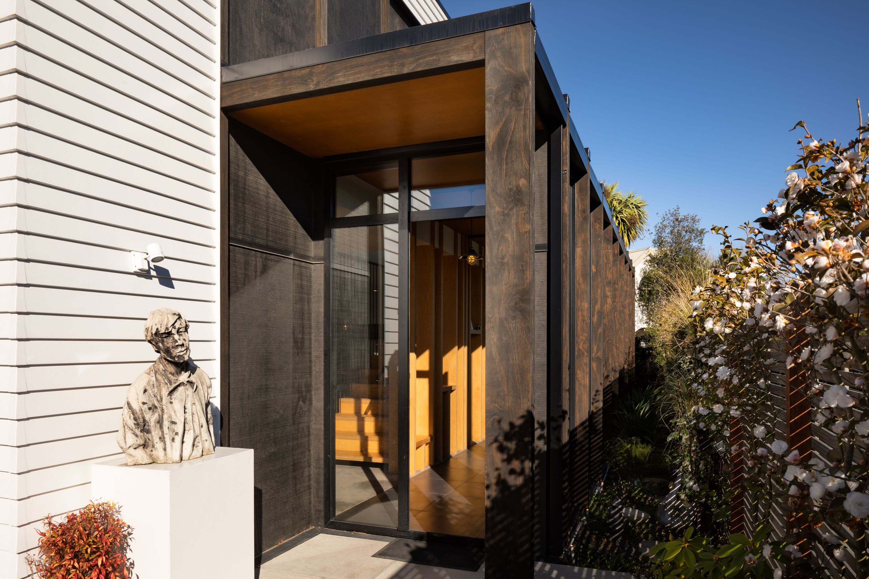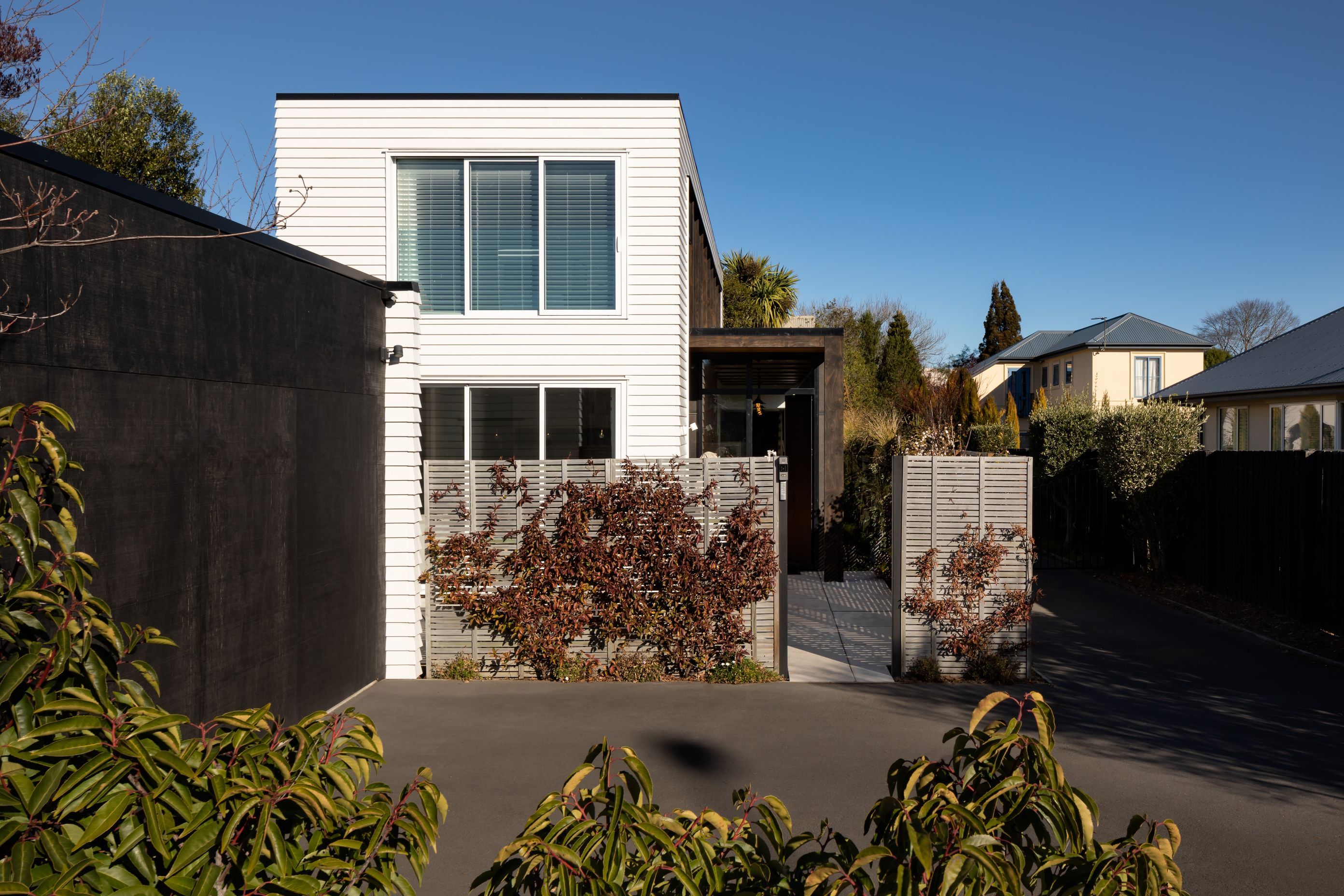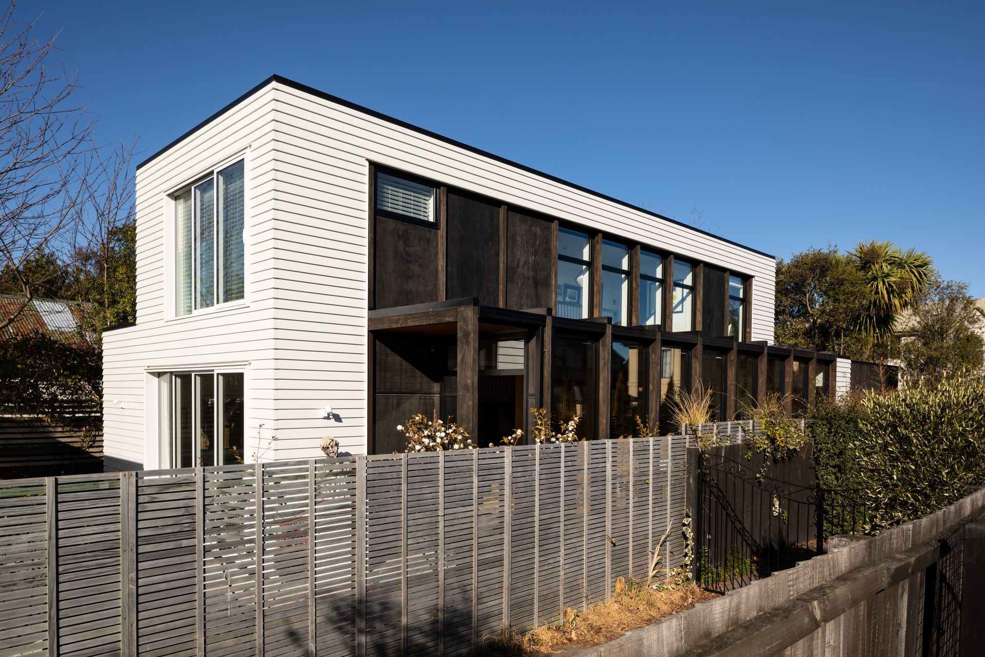 ArchiPro Project Summary - A contemporary rebuild of a Christchurch bungalow, blending modern design with neighborhood context, featuring open-plan living, dual ensuites, and efficient outdoor spaces on a compact 180m2 section.
