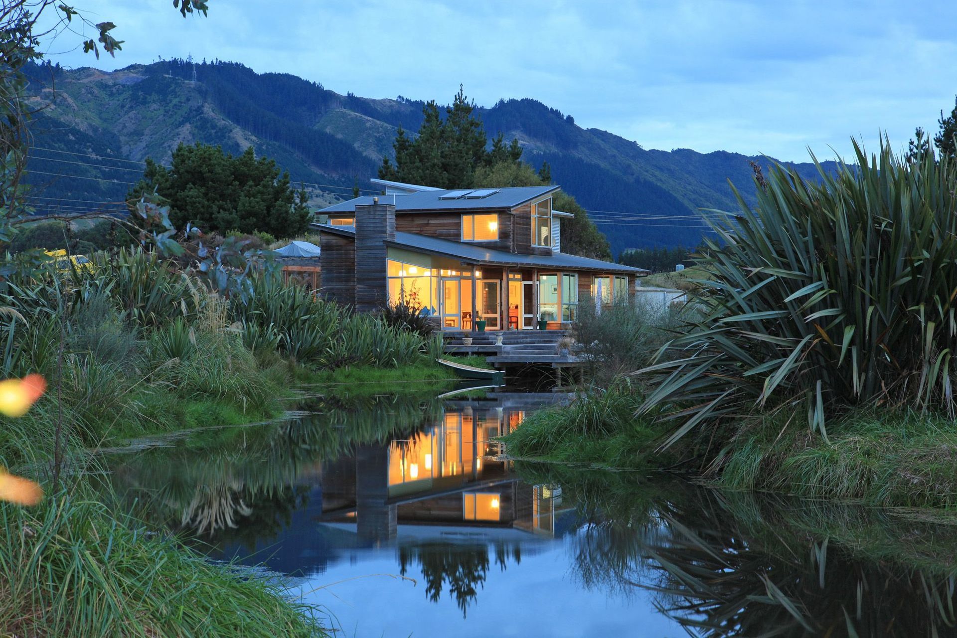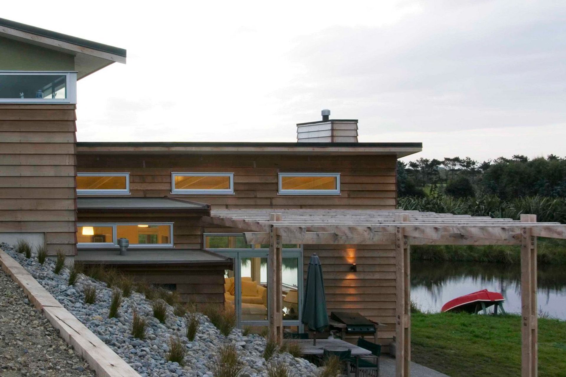 ArchiPro Project Summary - Eco-friendly home designed to restore natural wetland systems, featuring sustainable materials and energy-efficient systems, harmoniously situated on the Kapiti Coast.