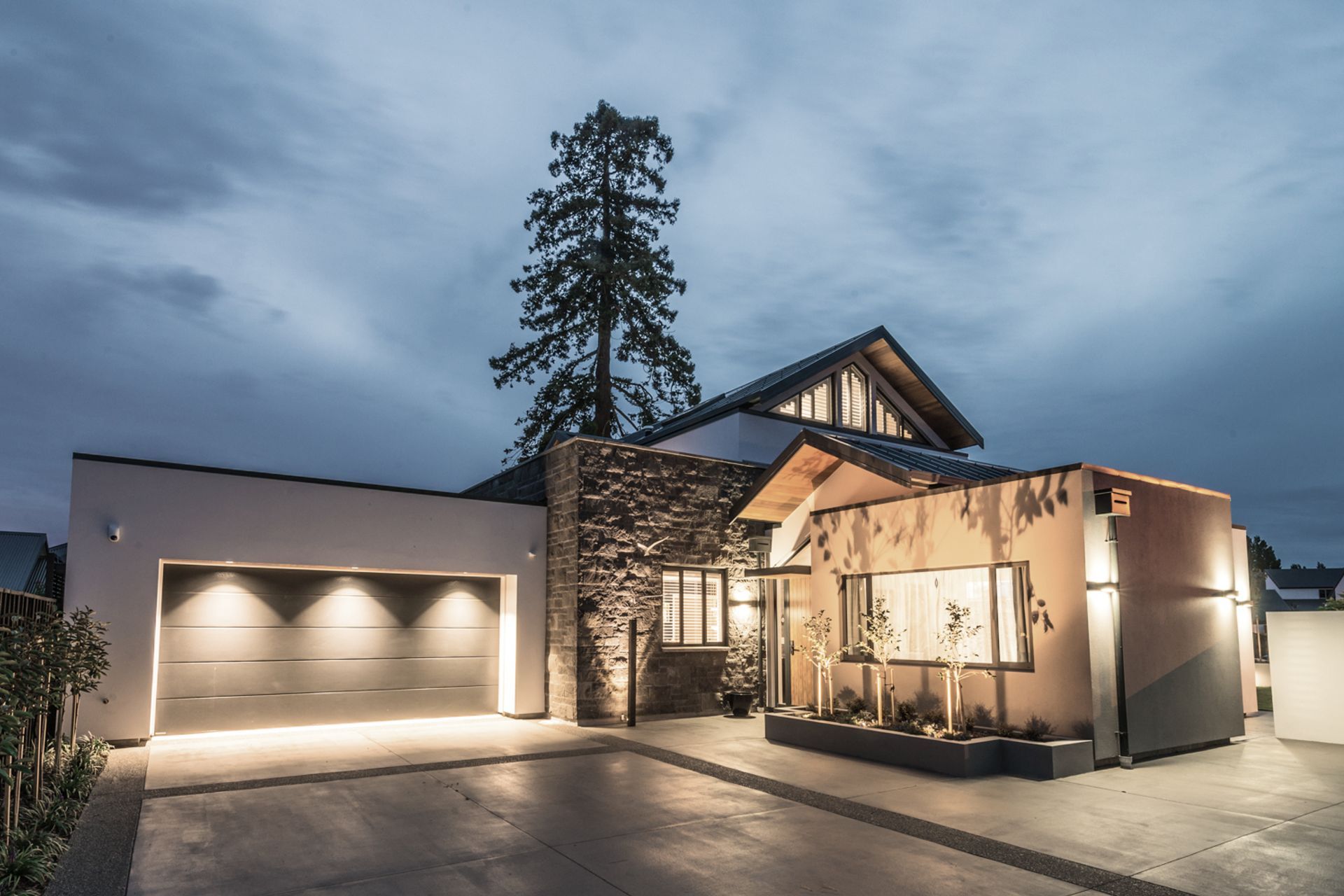 ArchiPro Project Summary - Elegant two-storey residence featuring bespoke cabinetry, a striking cathedral ceiling in the lounge and stairway, thermally broken foundations, and a beautifully designed outdoor living area with a totara framed pergola and louvre roof system.