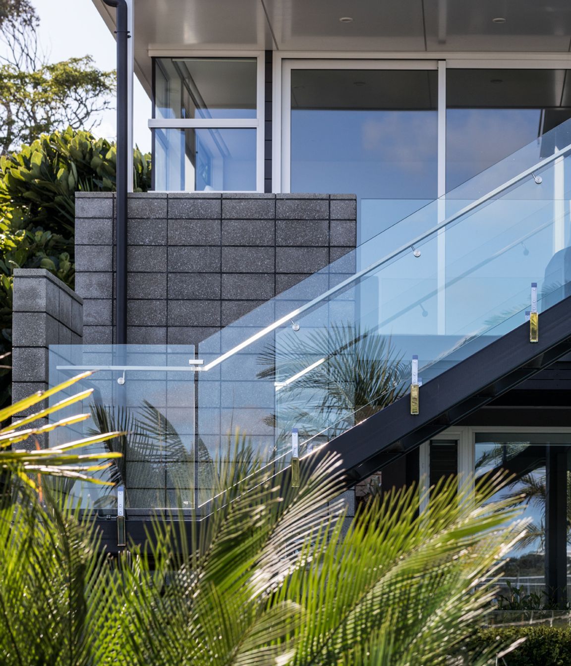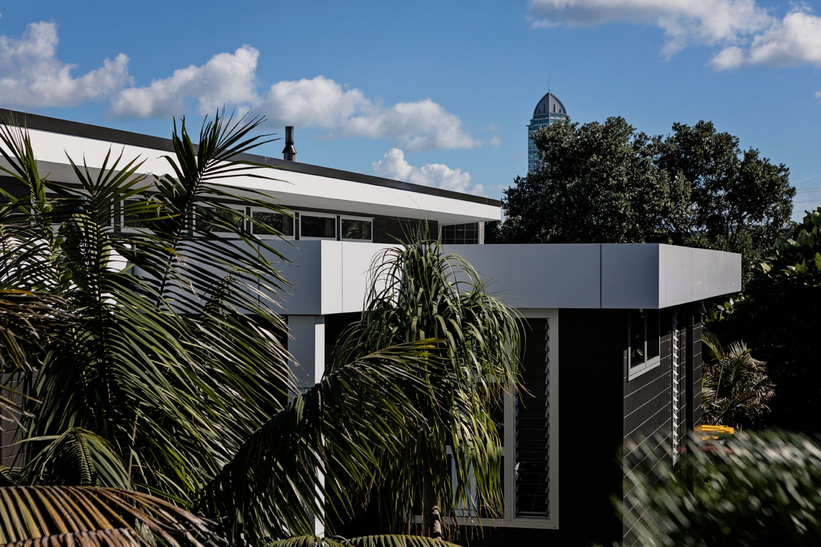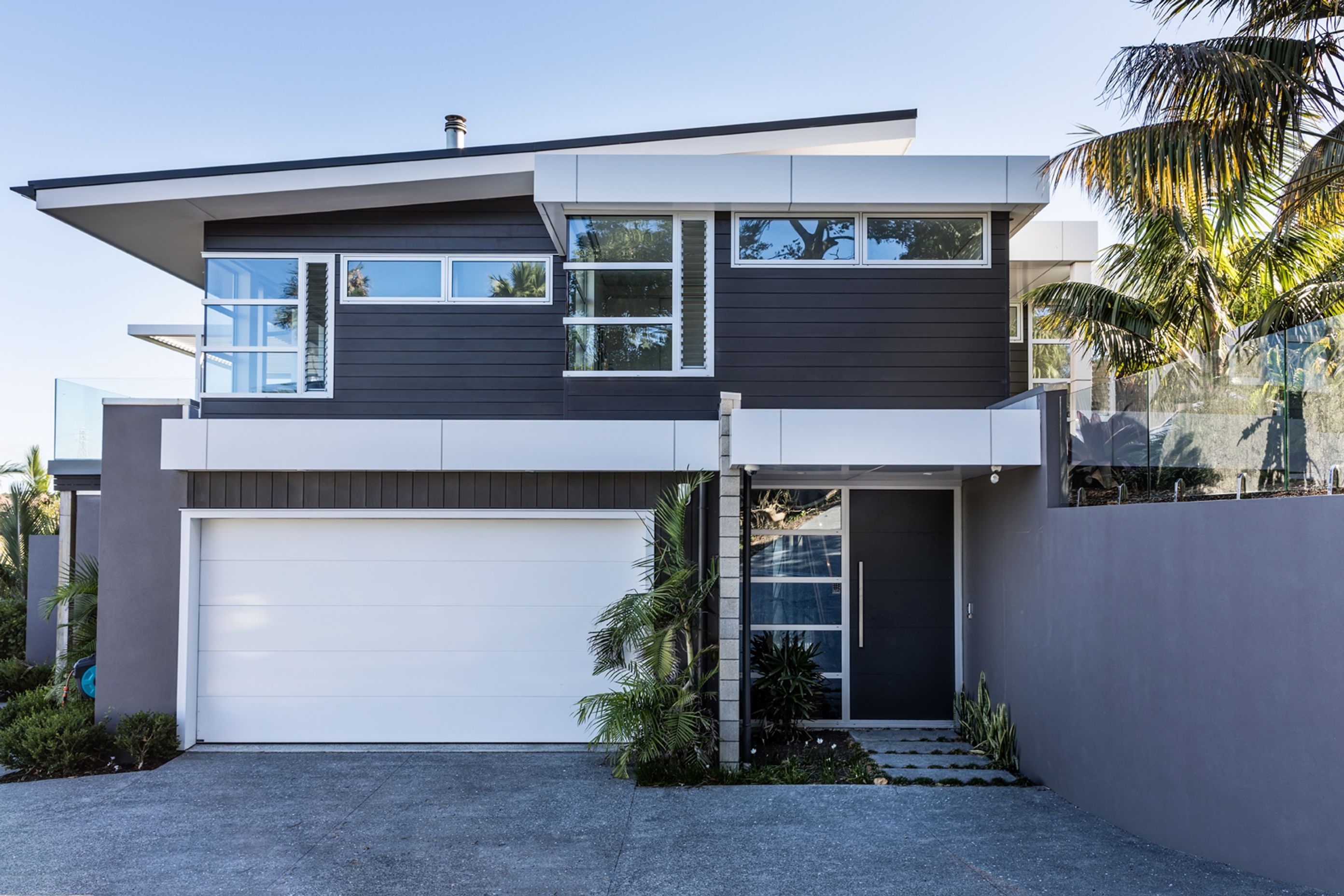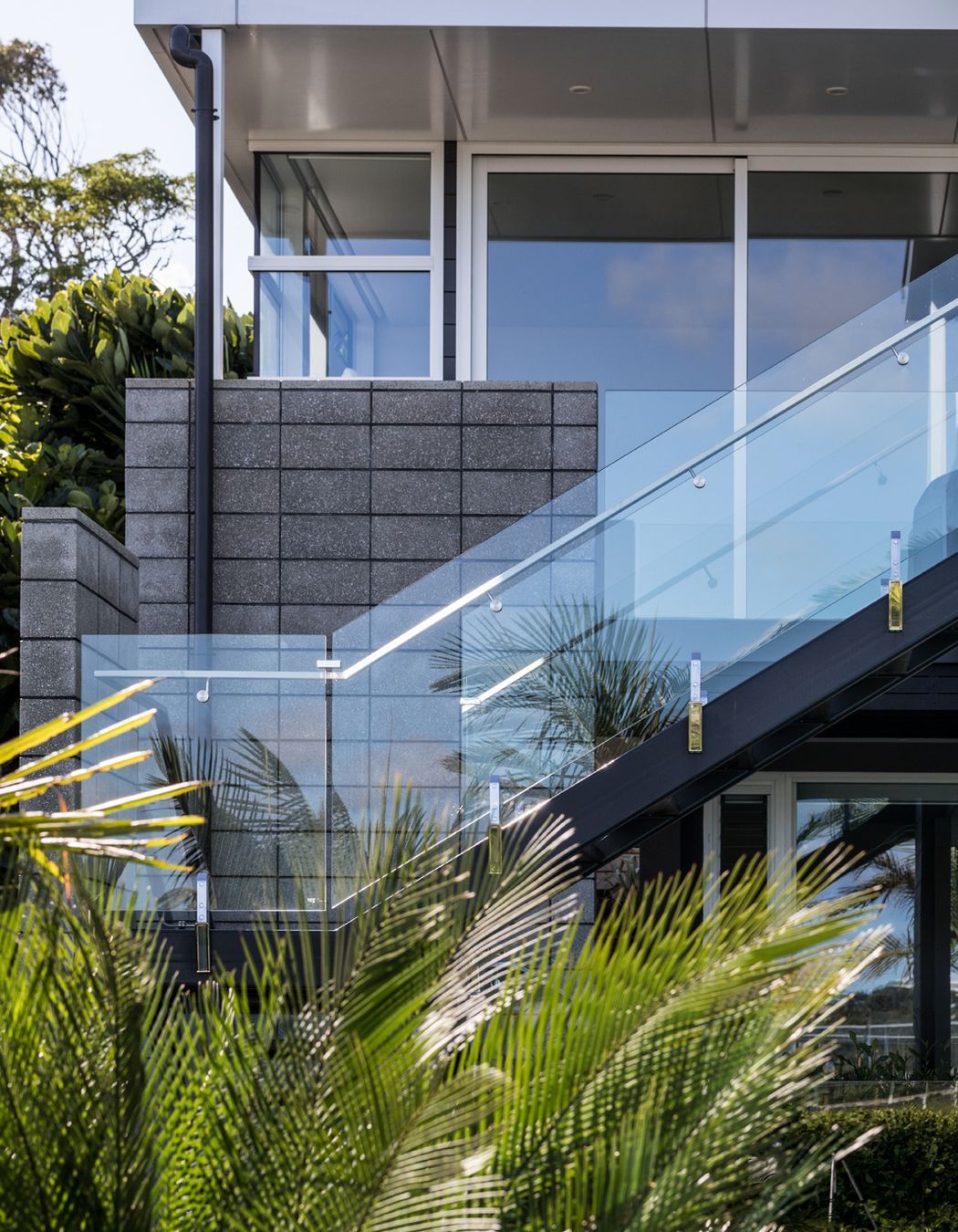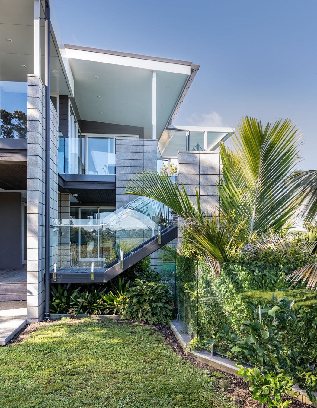 ArchiPro Project Summary - Family-oriented design harmoniously integrated with the landscape, featuring a skillion roof, clerestory windows, and a blend of materials for a contemporary aesthetic overlooking the Waitemata Harbour.
