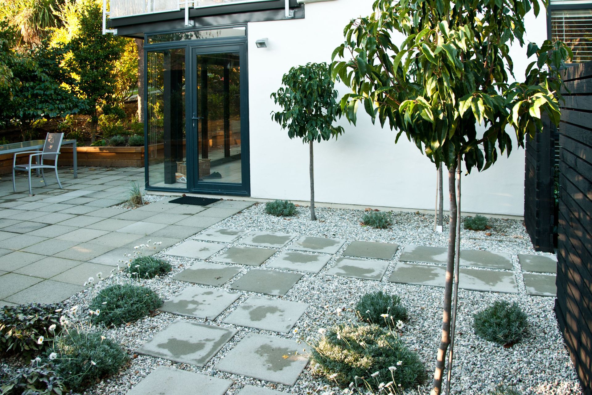 ArchiPro Project Summary - Redevelopment of an overgrown townhouse garden into an inviting outdoor space with a Landscape Concept Plan, featuring a sunny morning area, outdoor dining spaces, retaining planters, vegetable garden, and utility areas.