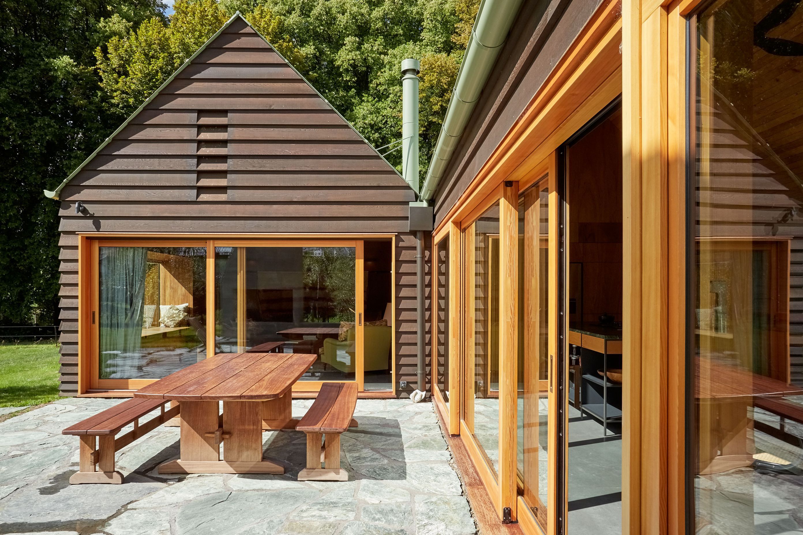 ArchiPro Project Summary - A modern interpretation of the traditional Kiwi bach, featuring award-winning design by Pac Studio, characterized by two gables, a chisel roof, and three distinct outdoor courtyards that enhance the home's interior experience.
