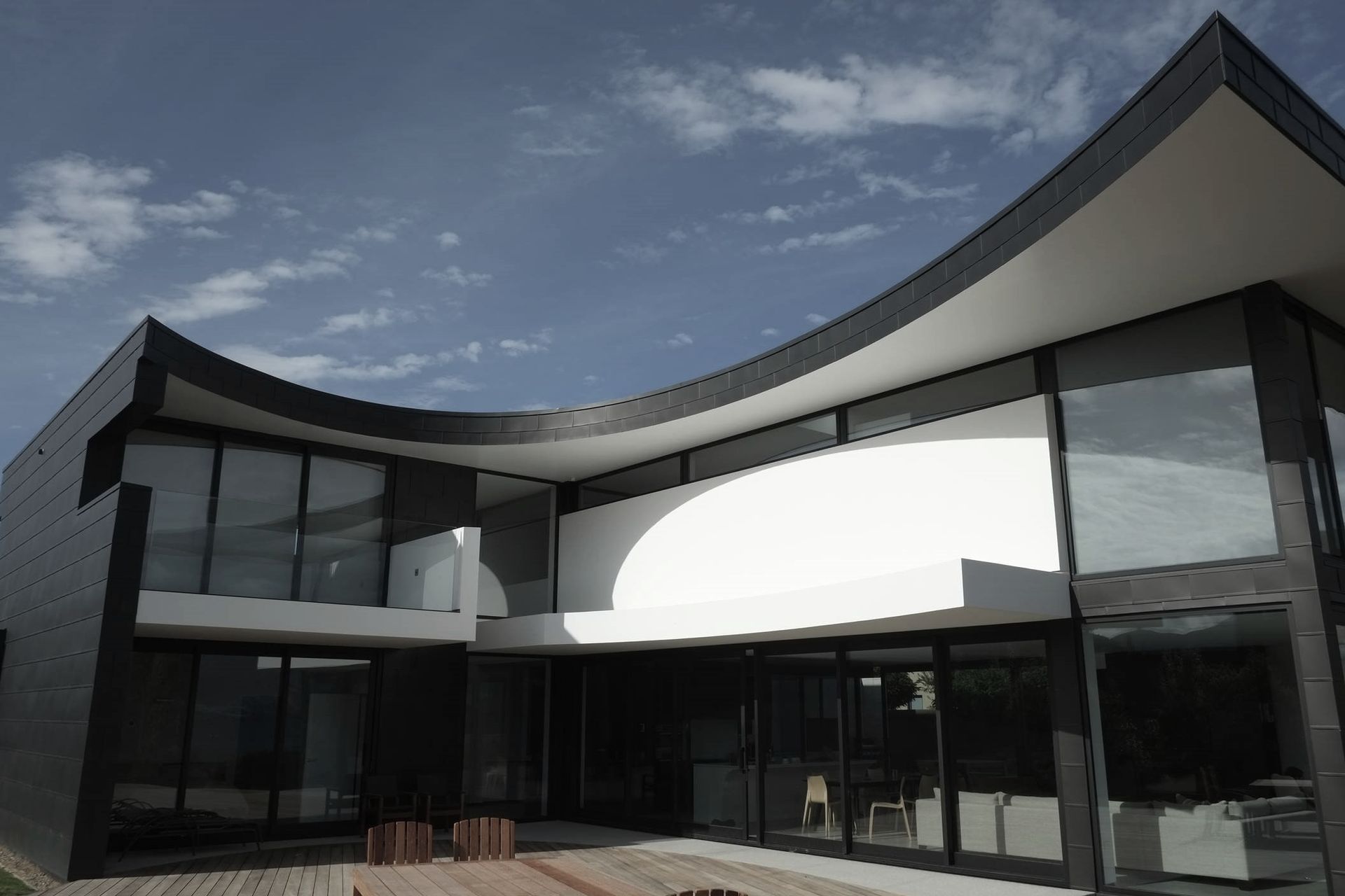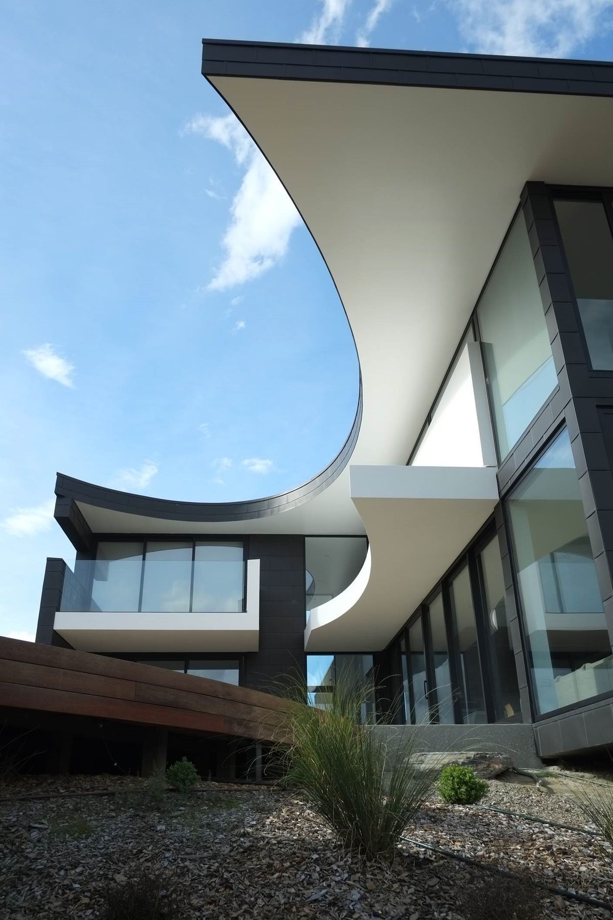 ArchiPro Project Summary - Two-storey dwelling featuring a distinctive large curved roof overhang, designed by Thom Craig Architects, showcasing innovative structural solutions.
