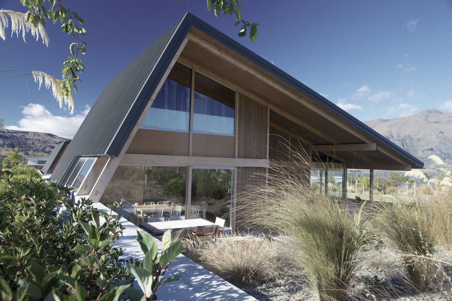 ArchiPro Project Summary - A stunning architectural response to the dramatic landscapes of Central Otago, Wanaka House celebrates life with playful roof forms and sustainable design, earning accolades including a finalist position in the 2014 Home Magazine Home of the Year and a 2016 NZIA Award for Domestic Architecture.