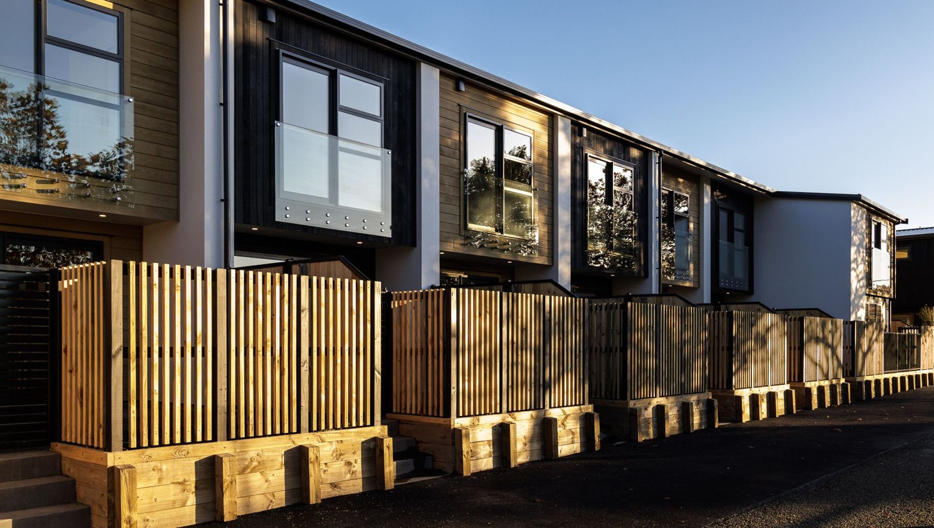 ArchiPro Project Summary - A Faisandier Group development featuring townhouses in the serene heart of Wainuiomata, complemented by a nearby park that enhances the tranquil atmosphere.